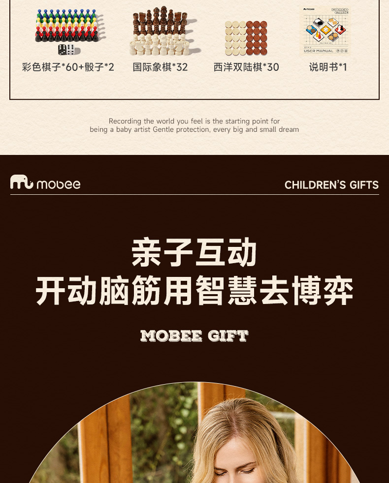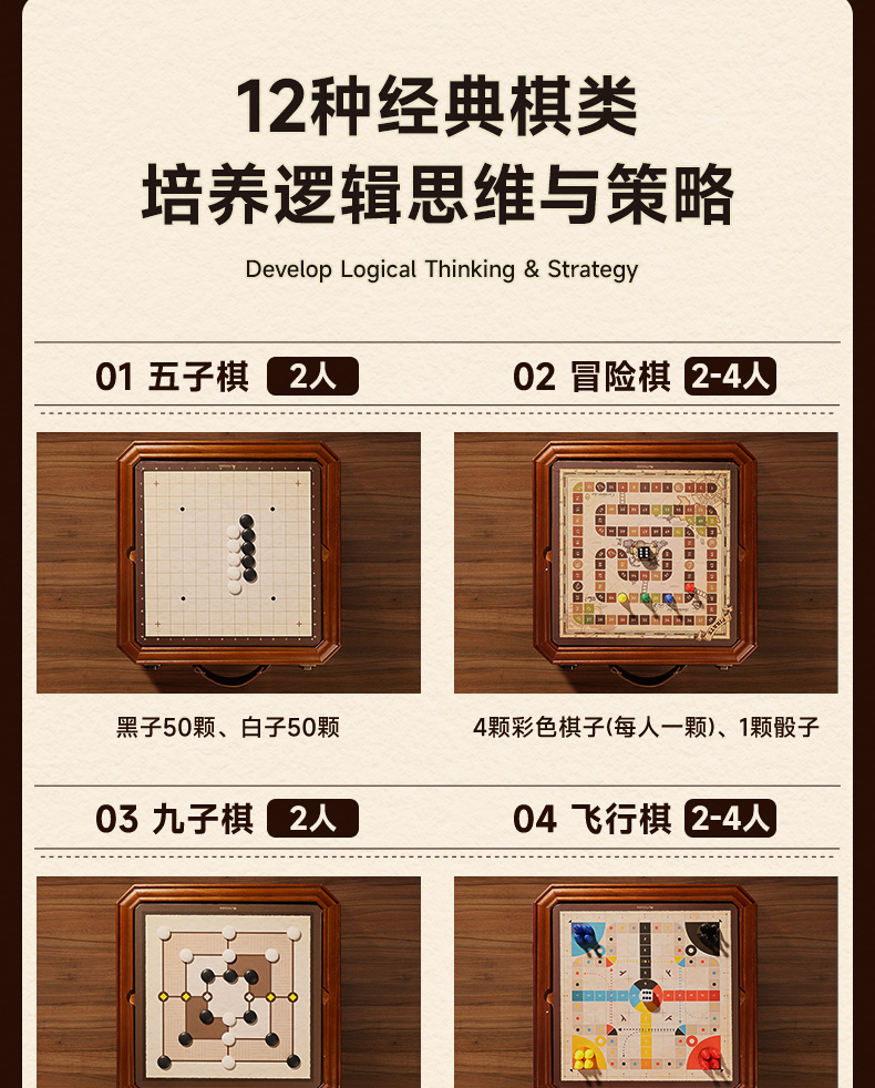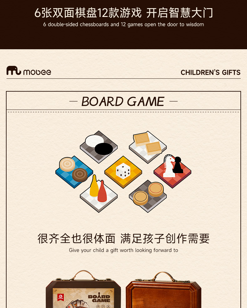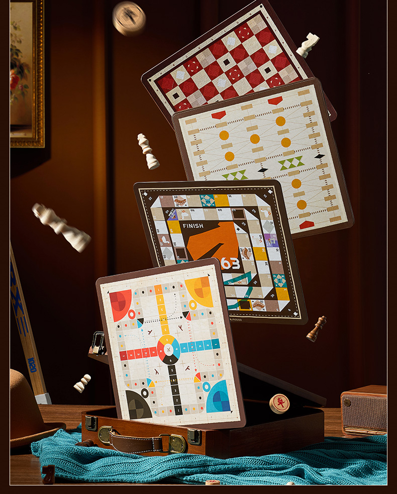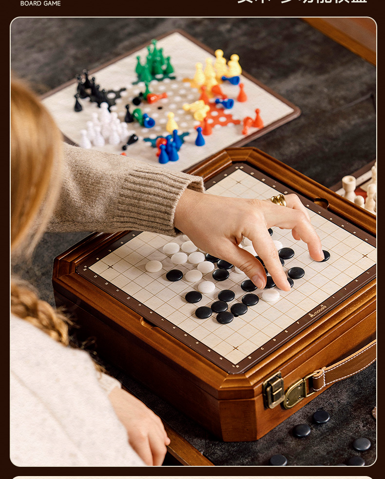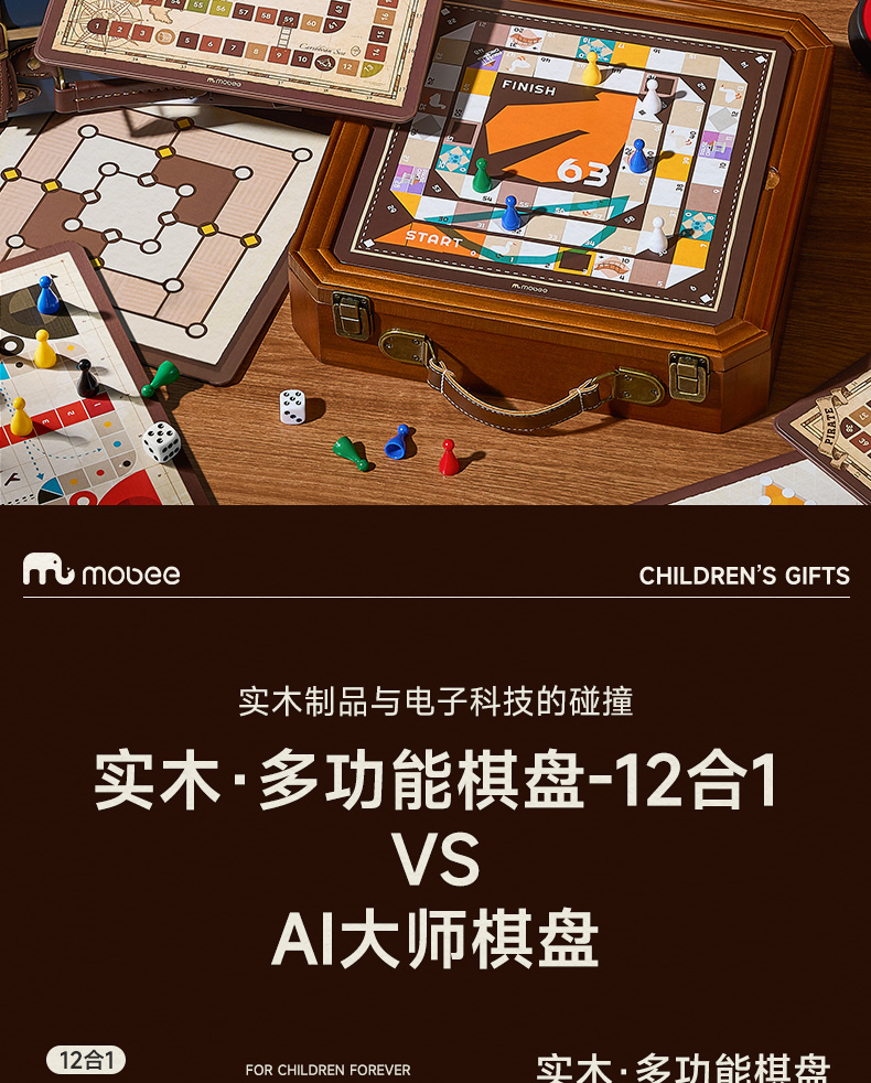 莫贝mobee多功能棋盘合一飞行棋五子围棋象棋跳实木儿童益智学生玩具