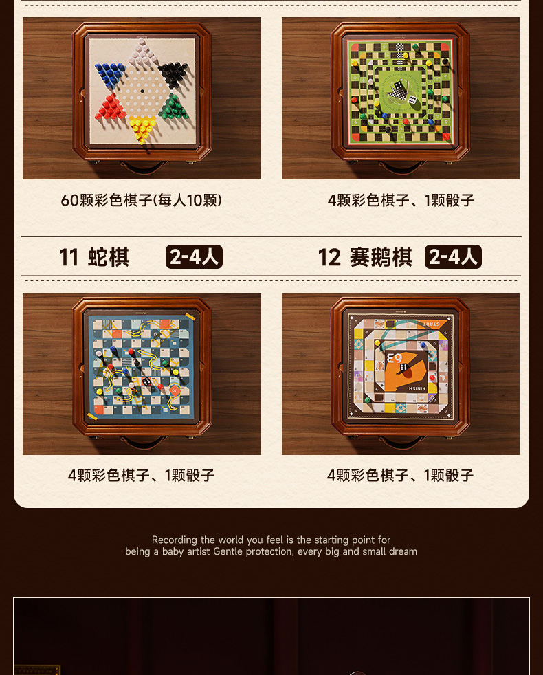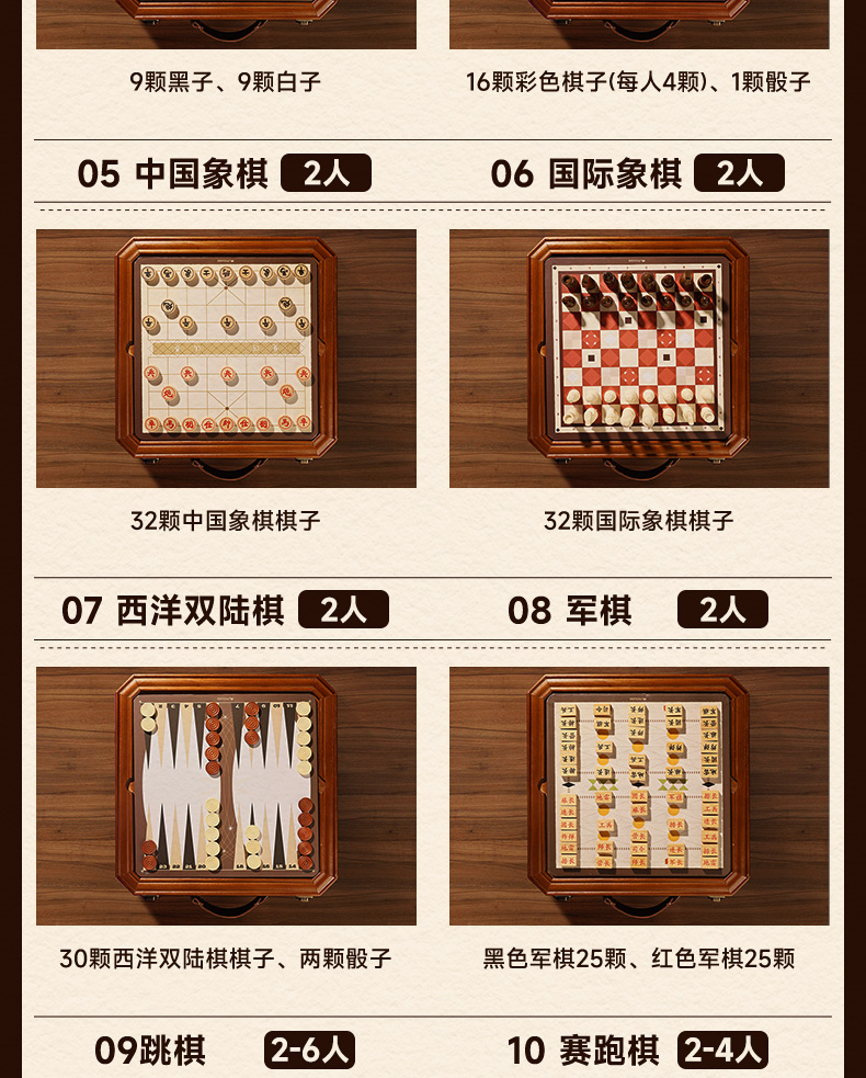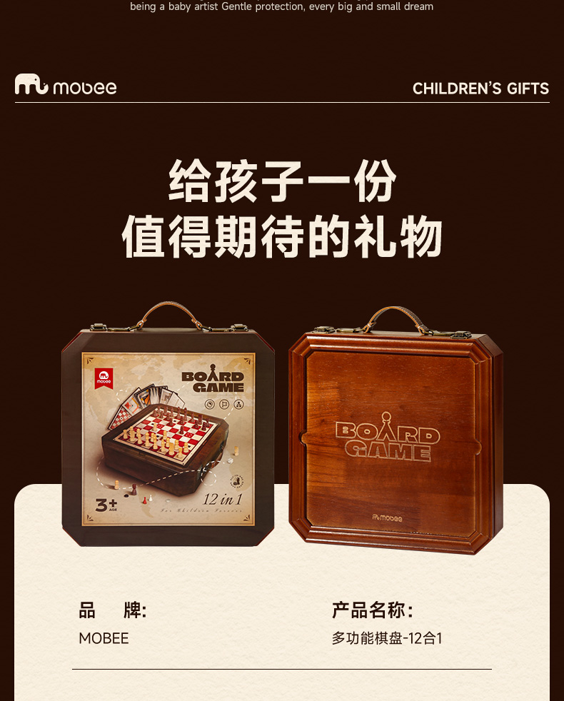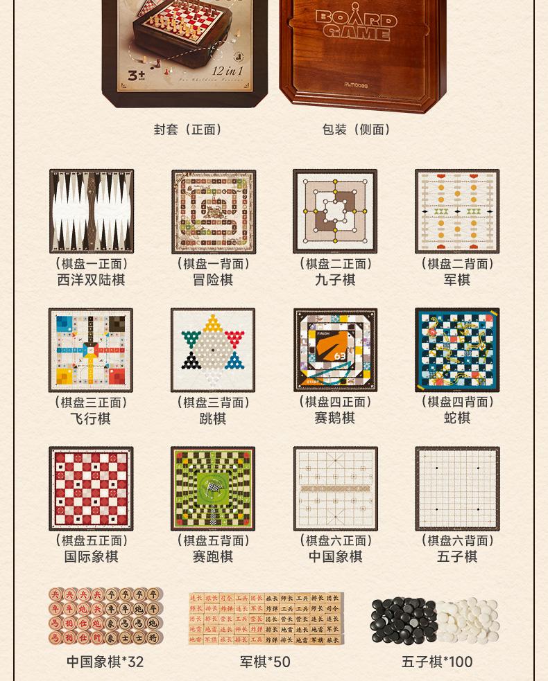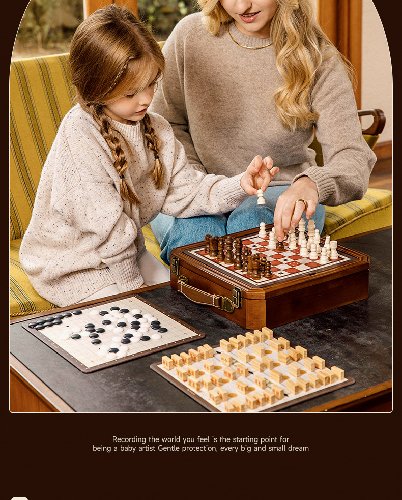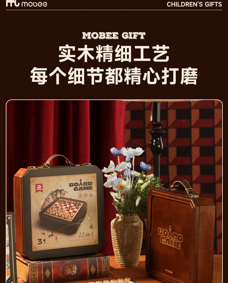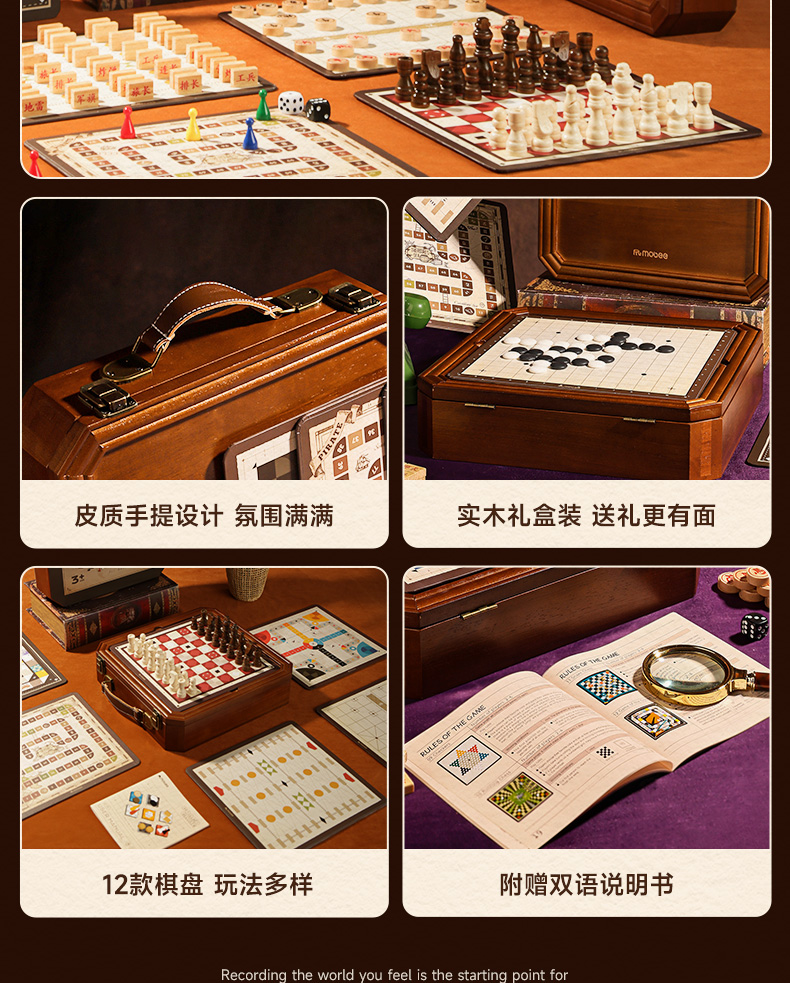 莫贝mobee多功能棋盘合一飞行棋五子围棋象棋跳实木儿童益智学生玩具