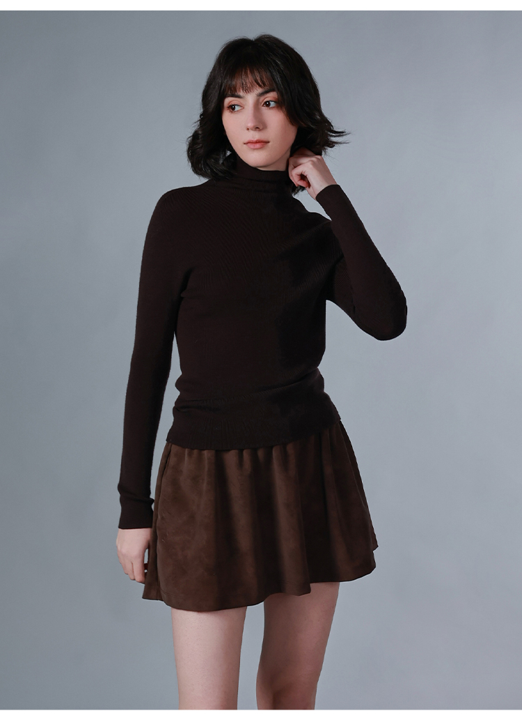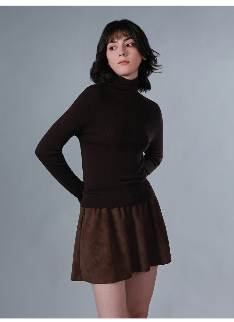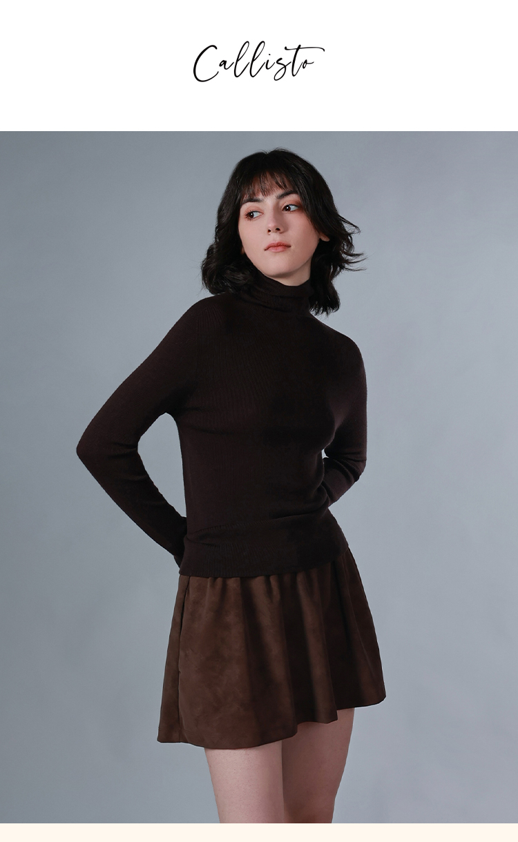 callisto咖色全羊毛Polo针织衫 FSKNW012C