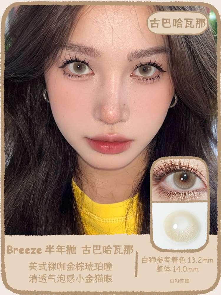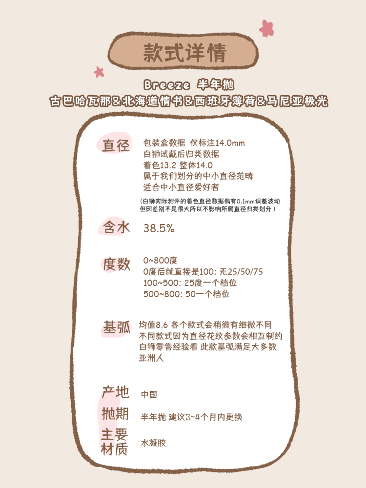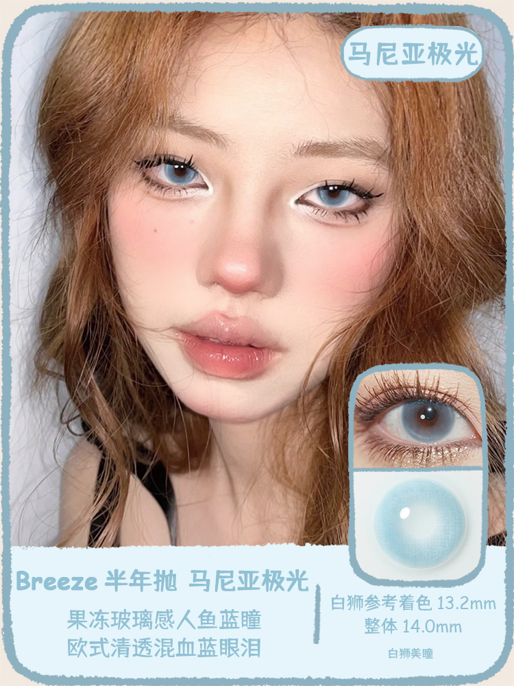 Breeze半年抛 · 马尼亚极光&西班牙薄荷&古巴哈瓦那&北海道情书 14.0mm白狮参考着色中小直径 半年抛2片