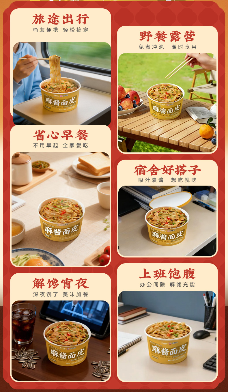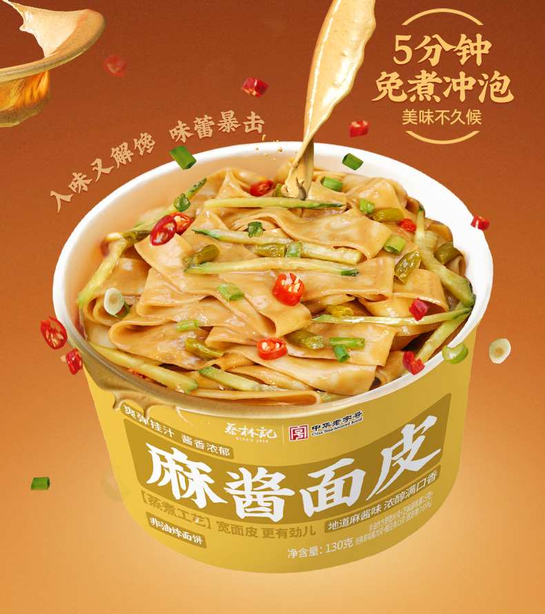 【新品尝鲜】蔡林记麻酱面皮130g*4桶免煮冲泡早餐宵夜(送泡椒海带丝4包)