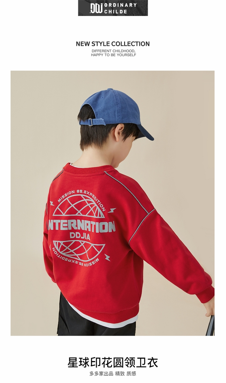 【宠粉专享团购价59.9】多多家 男童加绒卫衣春秋冬款2023新款儿童一体绒加厚冬季装上衣8476