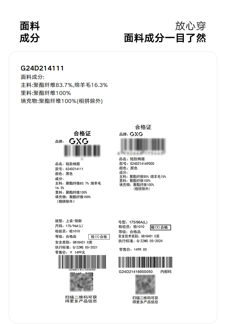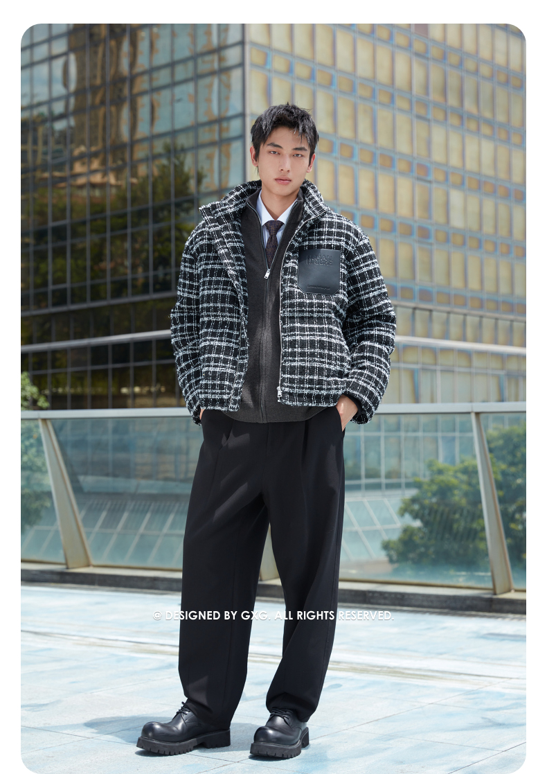 GXG男装 pu皮口袋小香风面料棉服男通勤保暖加厚外套 24冬季热卖