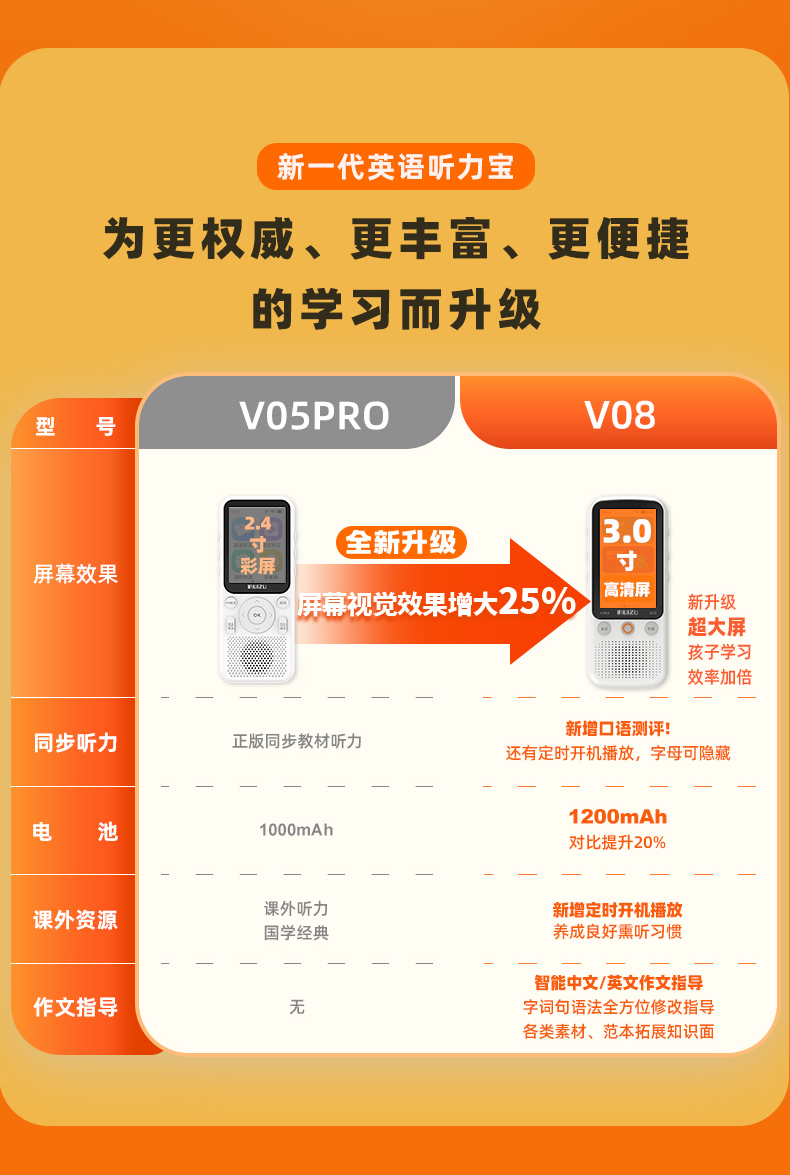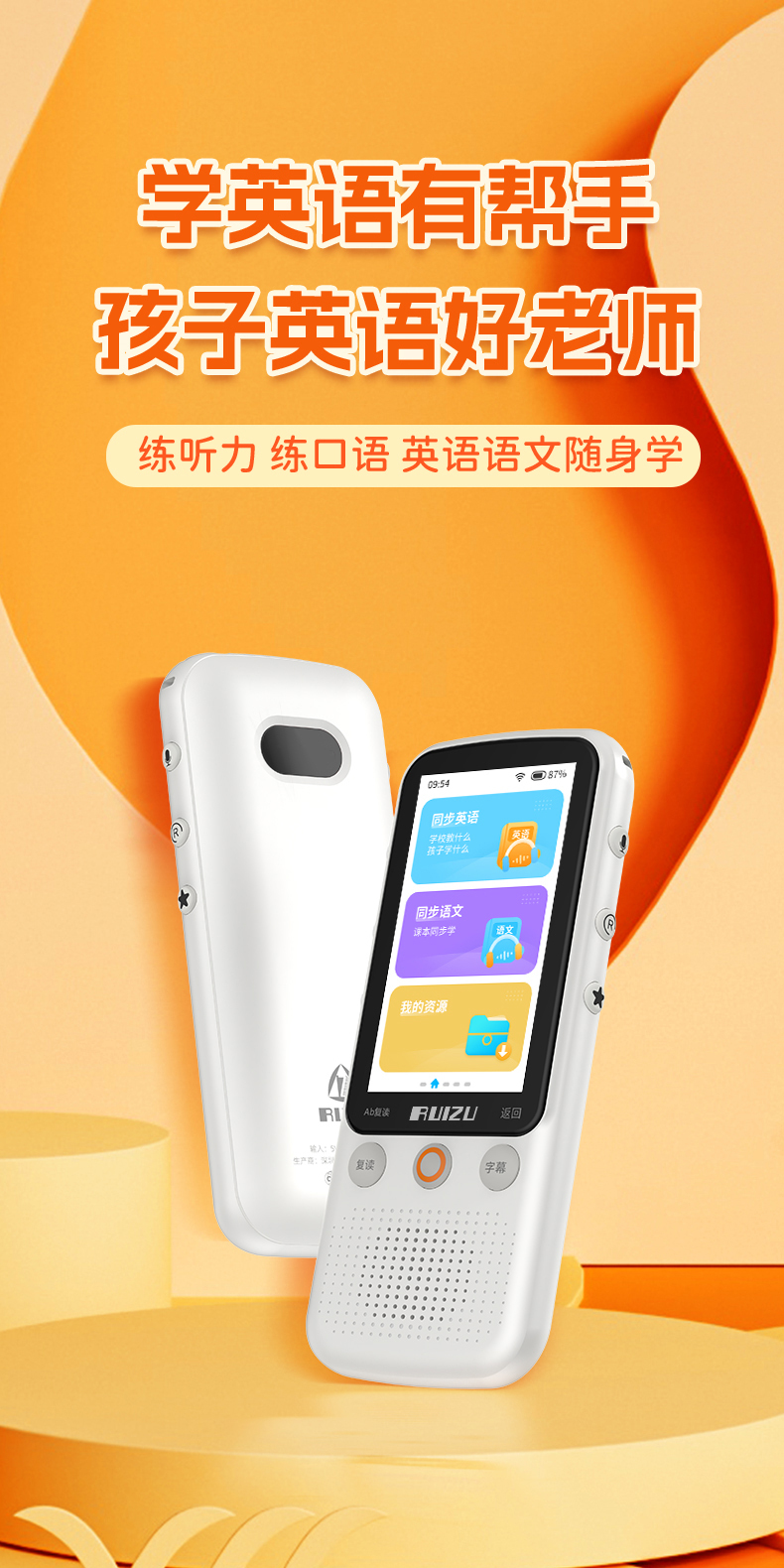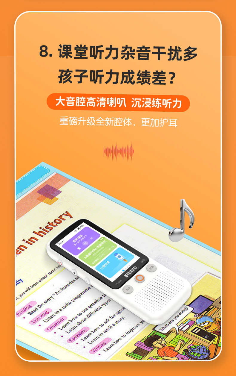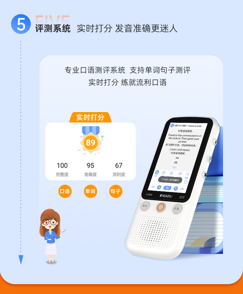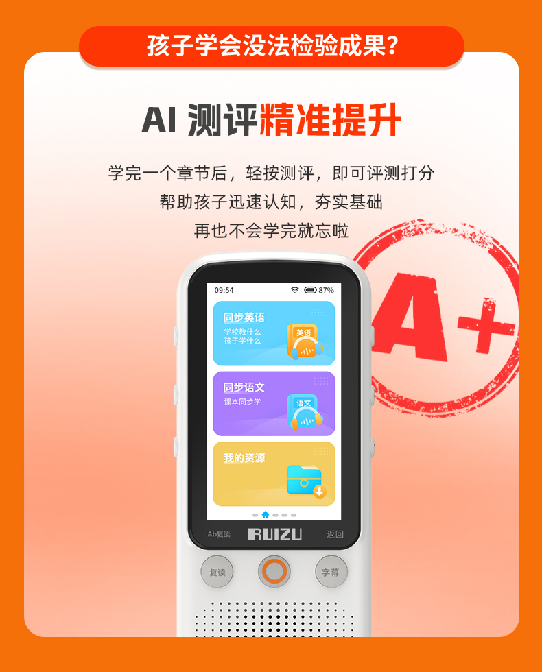 【提升英语专用口袋学习机】RUIZU英语听力宝V08播放器复读机同步智能口袋机 儿童小学生初中高中官方旗舰专用学习神器 磨耳朵蓝牙随身听 30天试用 终身质保