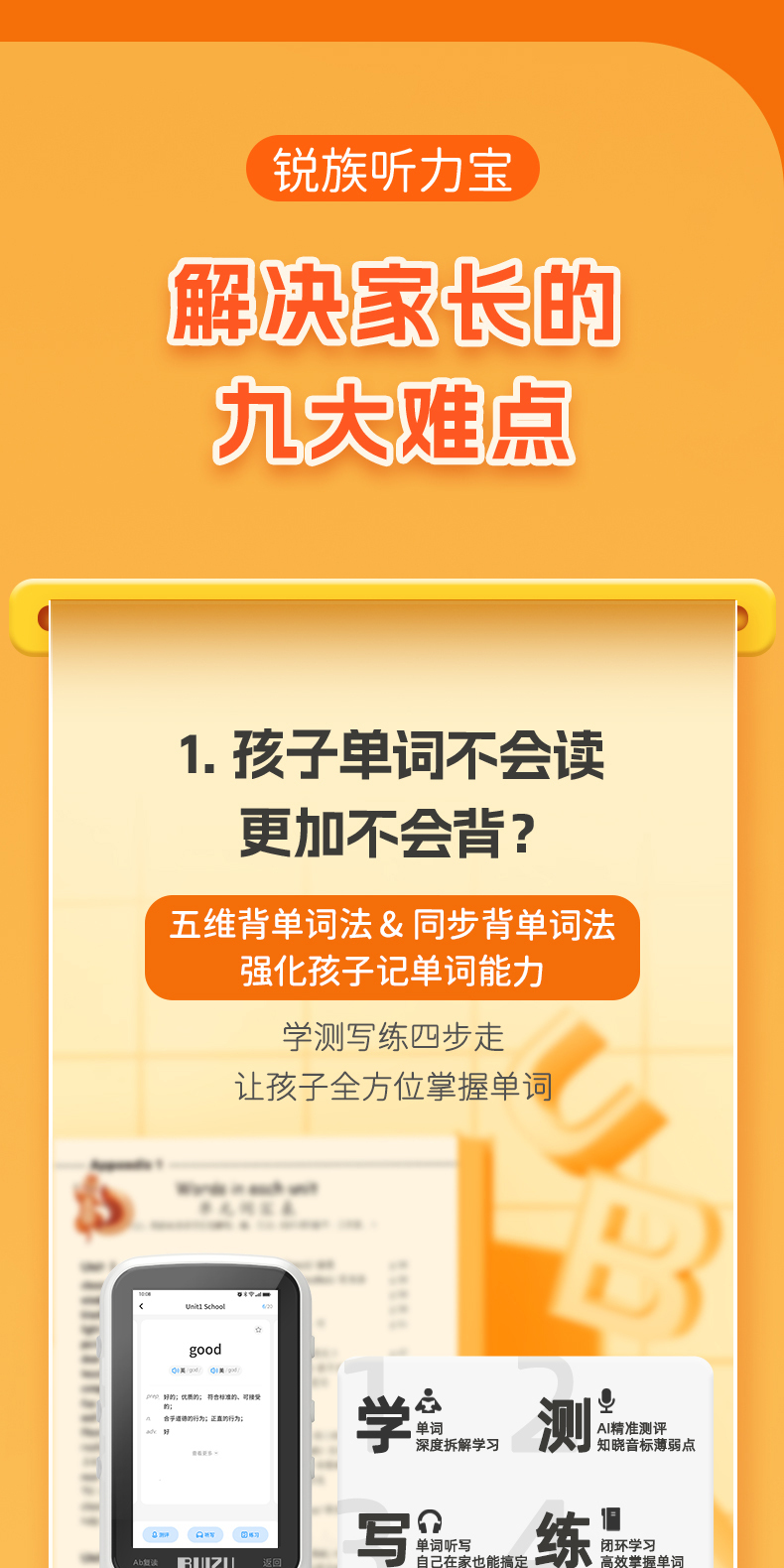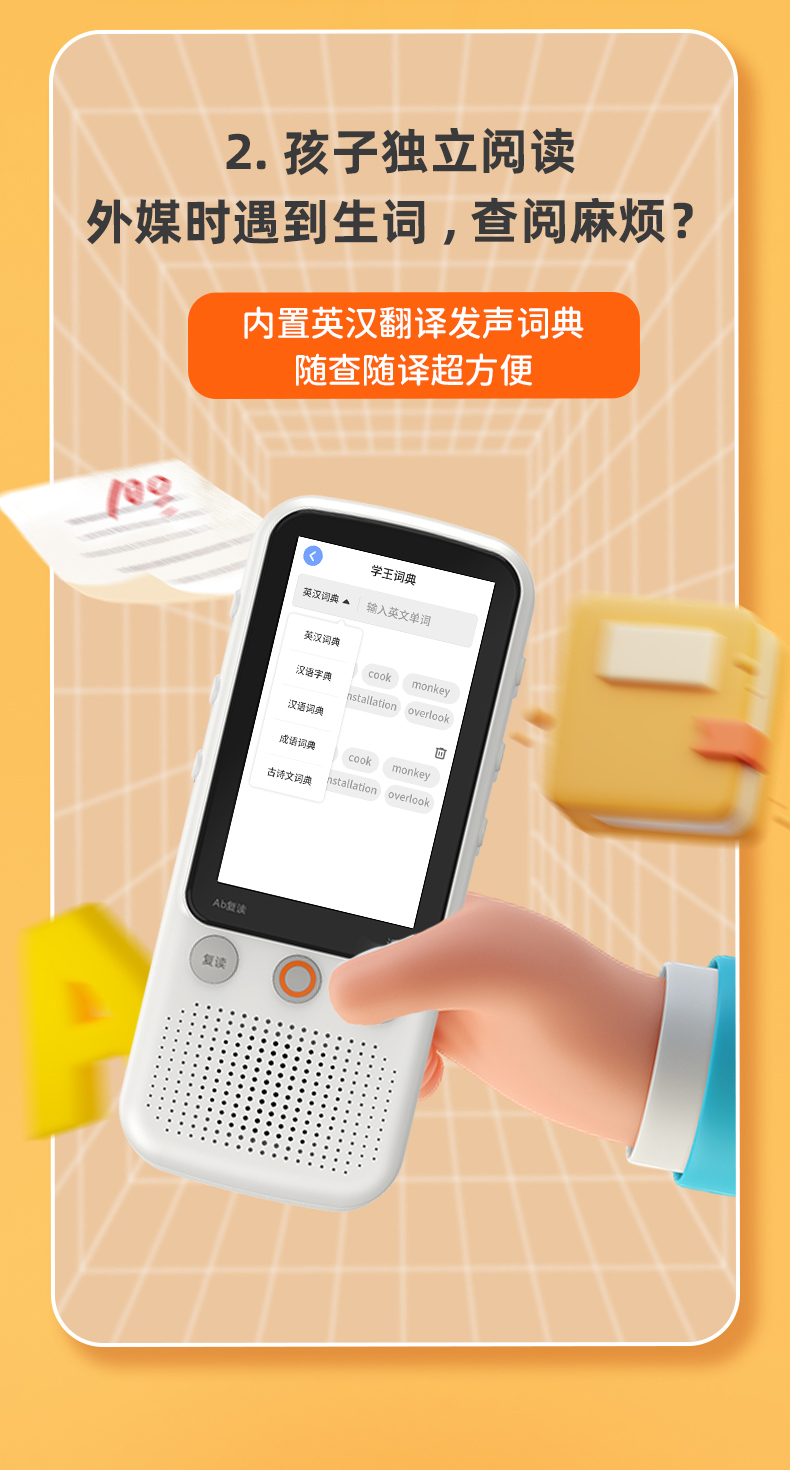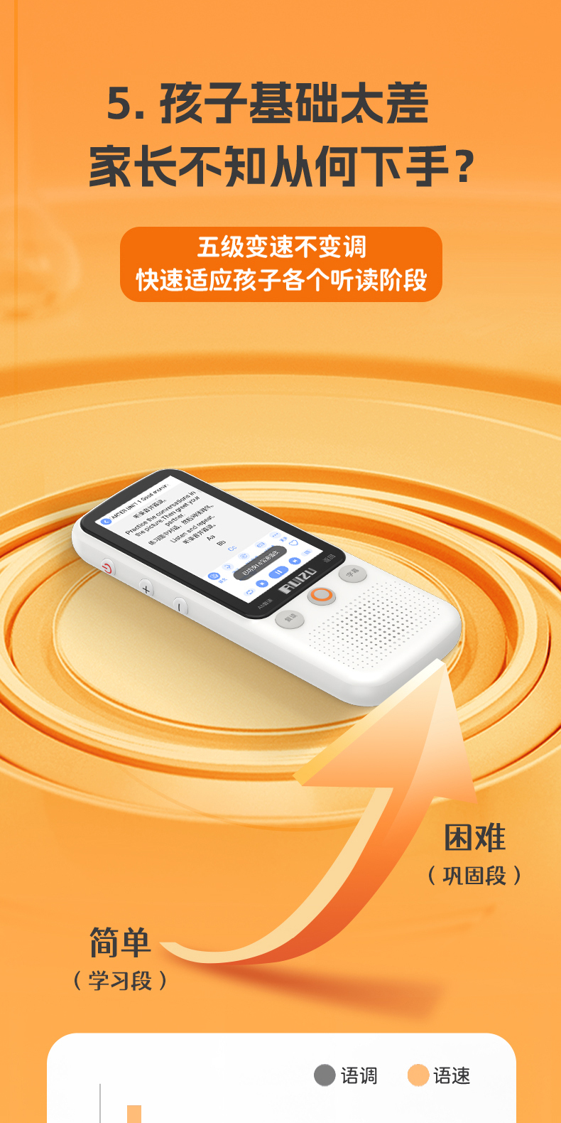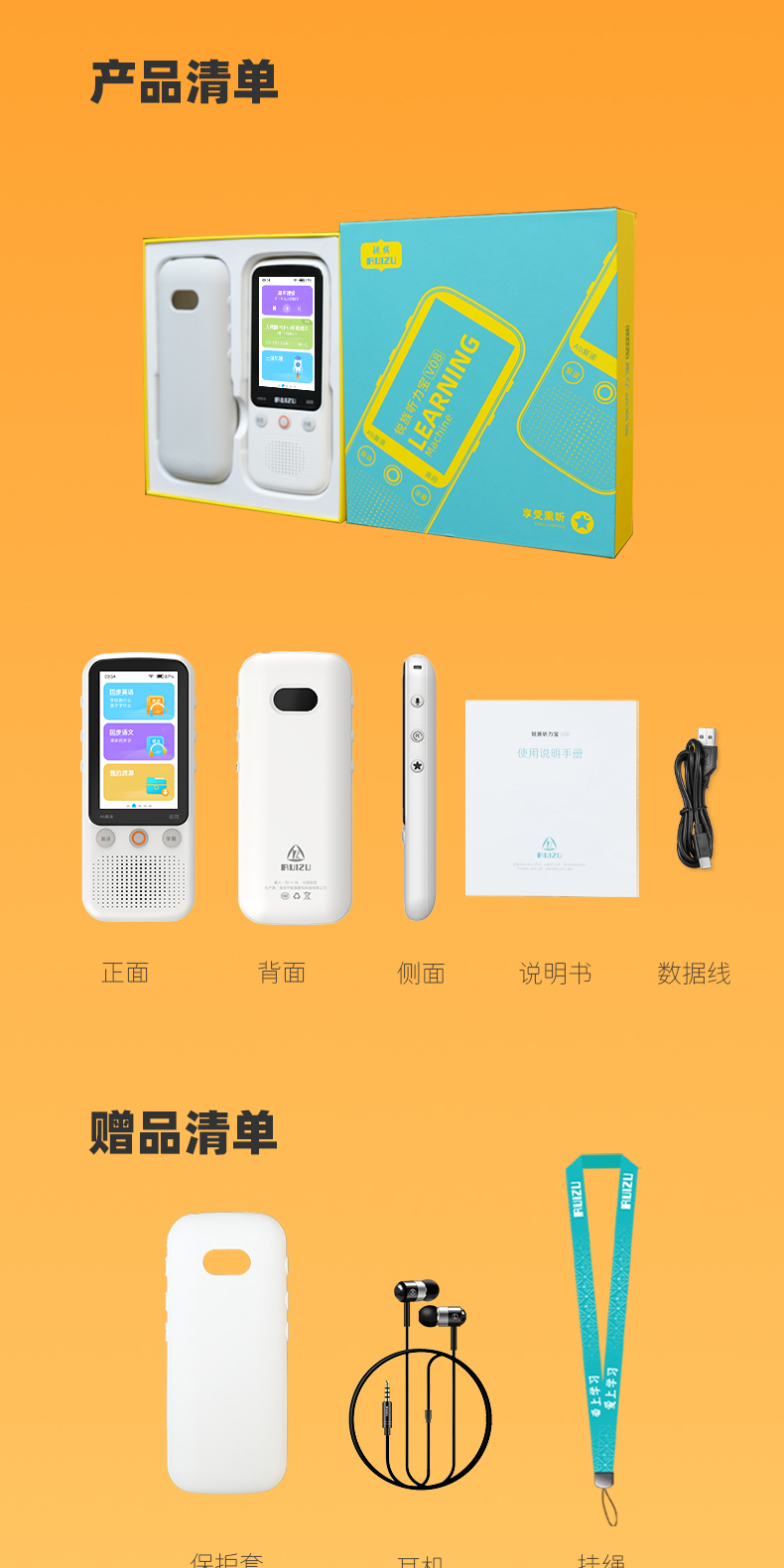 【提升英语专用口袋学习机】RUIZU英语听力宝V08播放器复读机同步智能口袋机 儿童小学生初中高中官方旗舰专用学习神器 磨耳朵蓝牙随身听 30天试用 终身质保