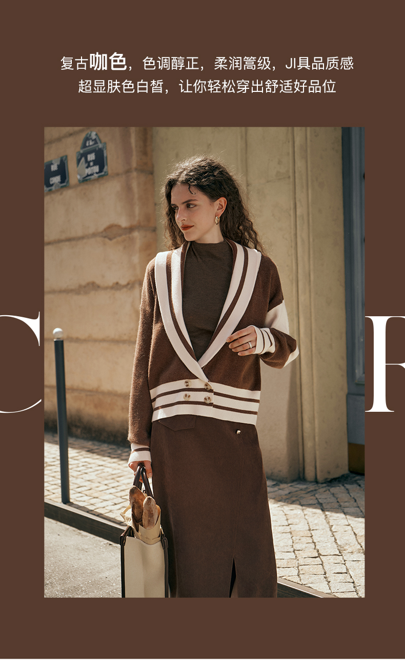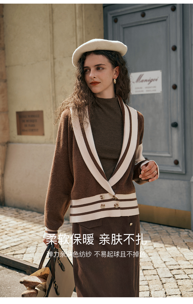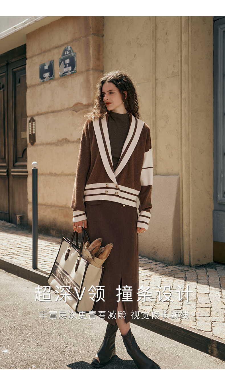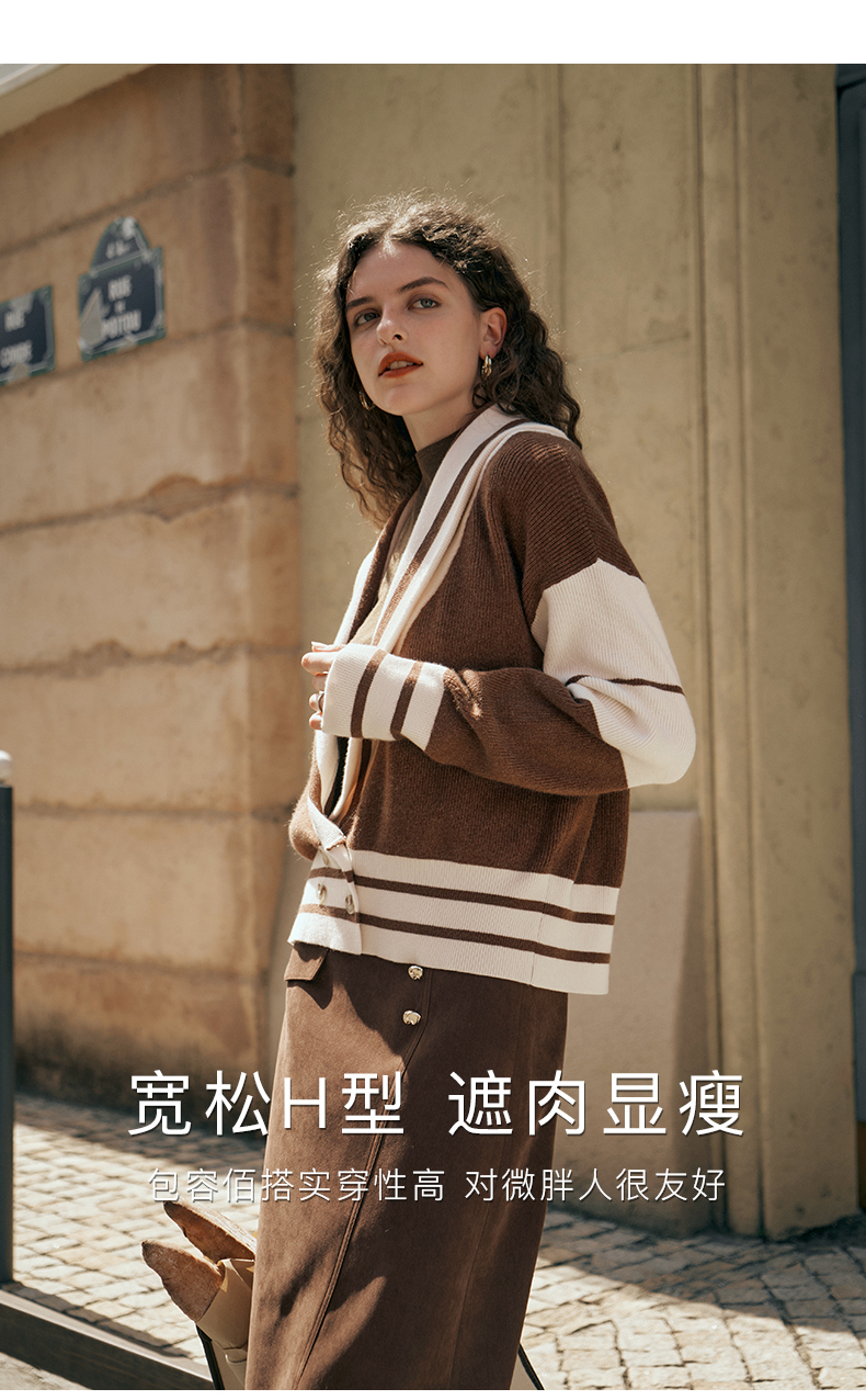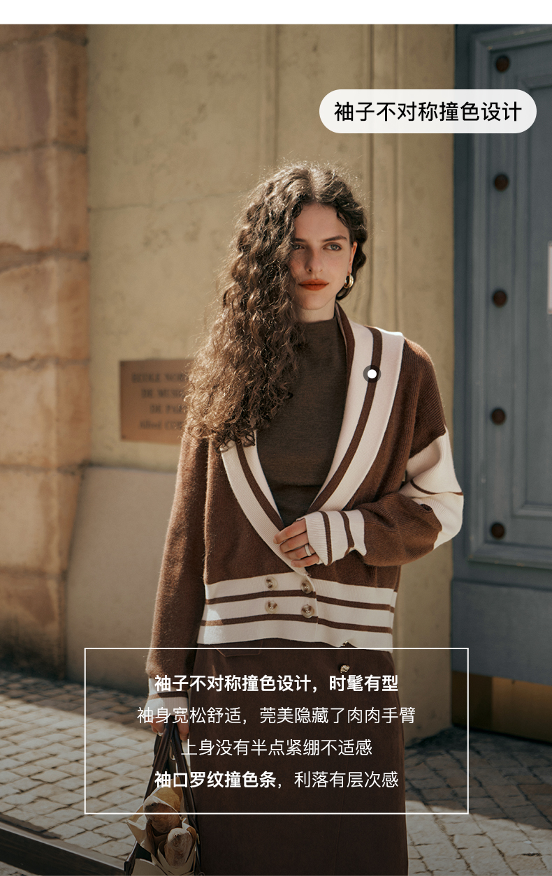 OLrain欧芮儿毛衣外套女初秋2023年新款显瘦气质设计感深V上衣