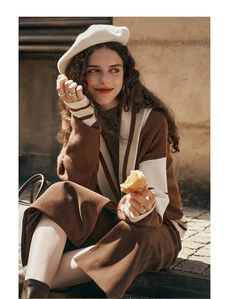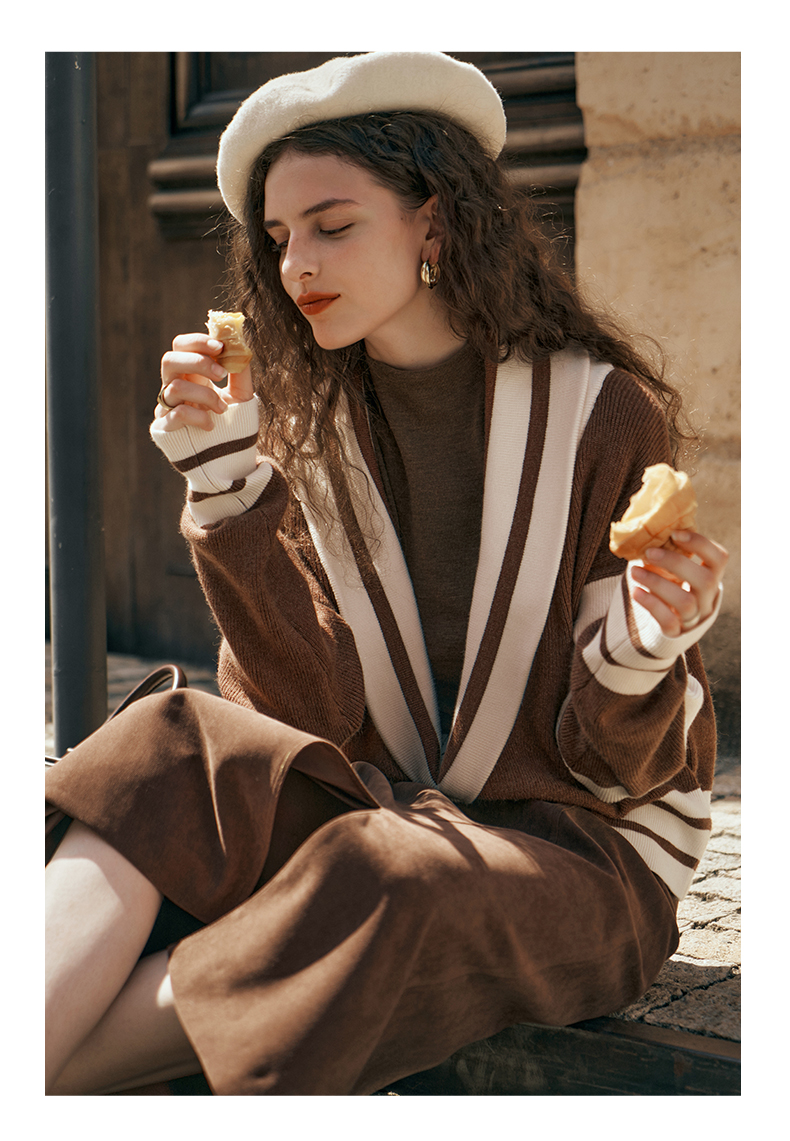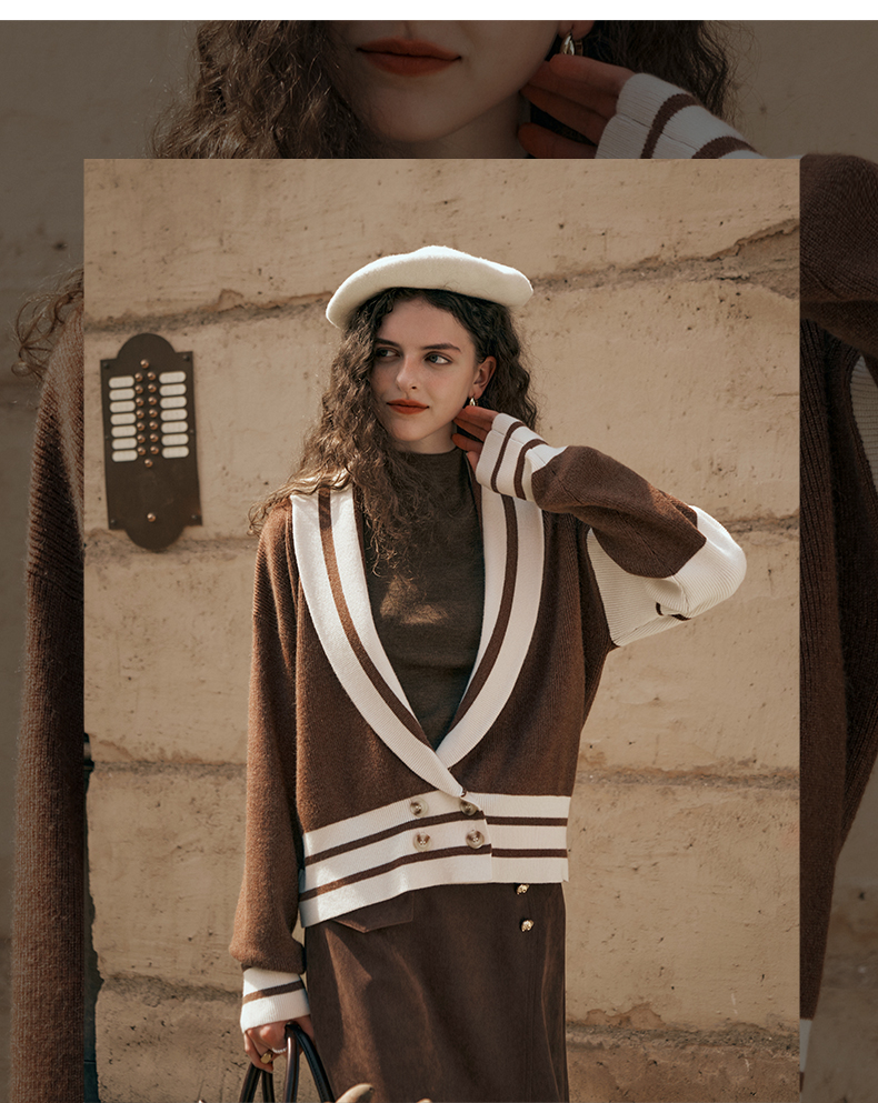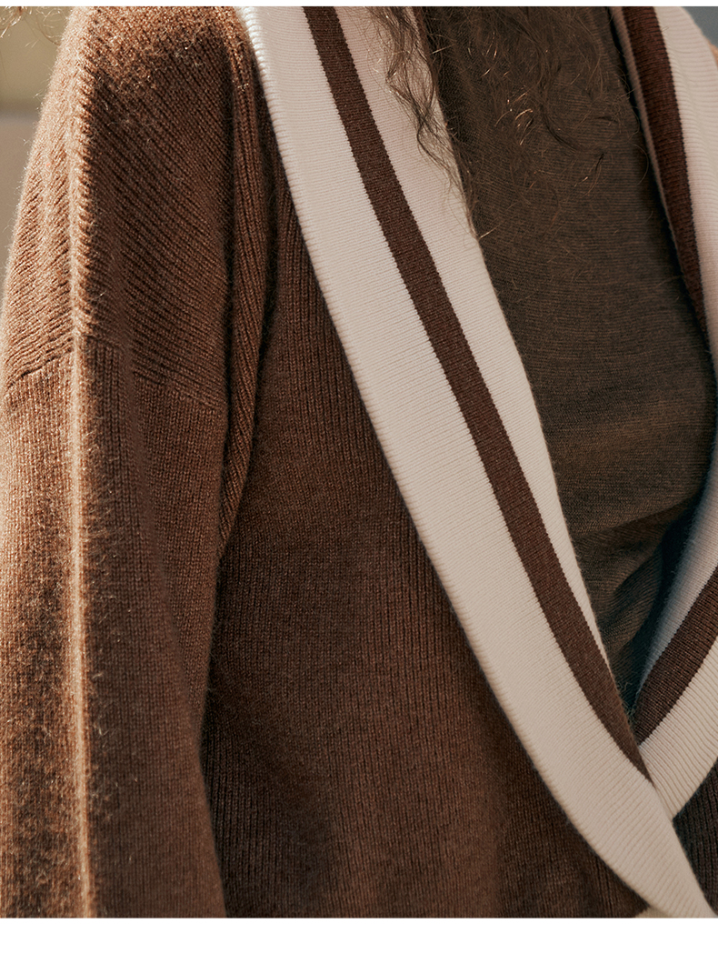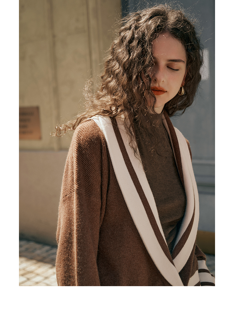 OLrain欧芮儿毛衣外套女初秋2023年新款显瘦气质设计感深V上衣