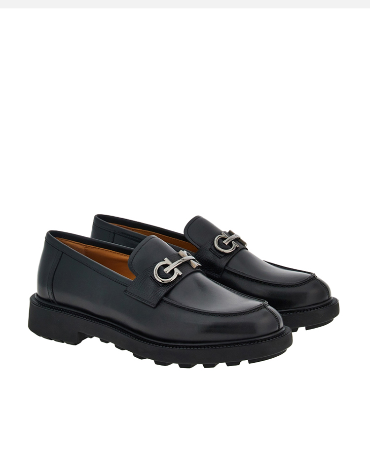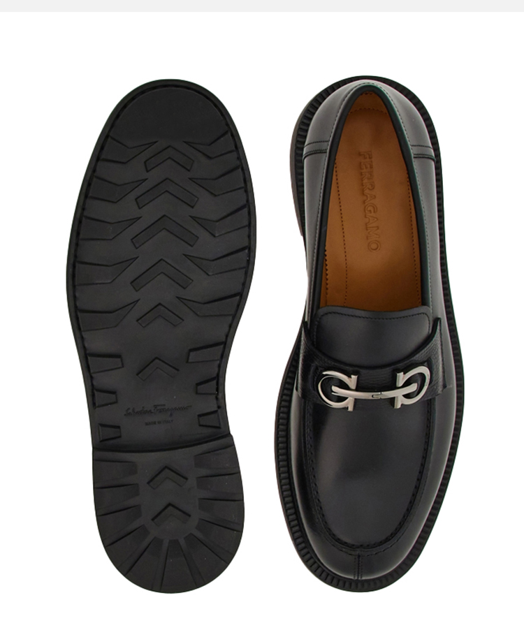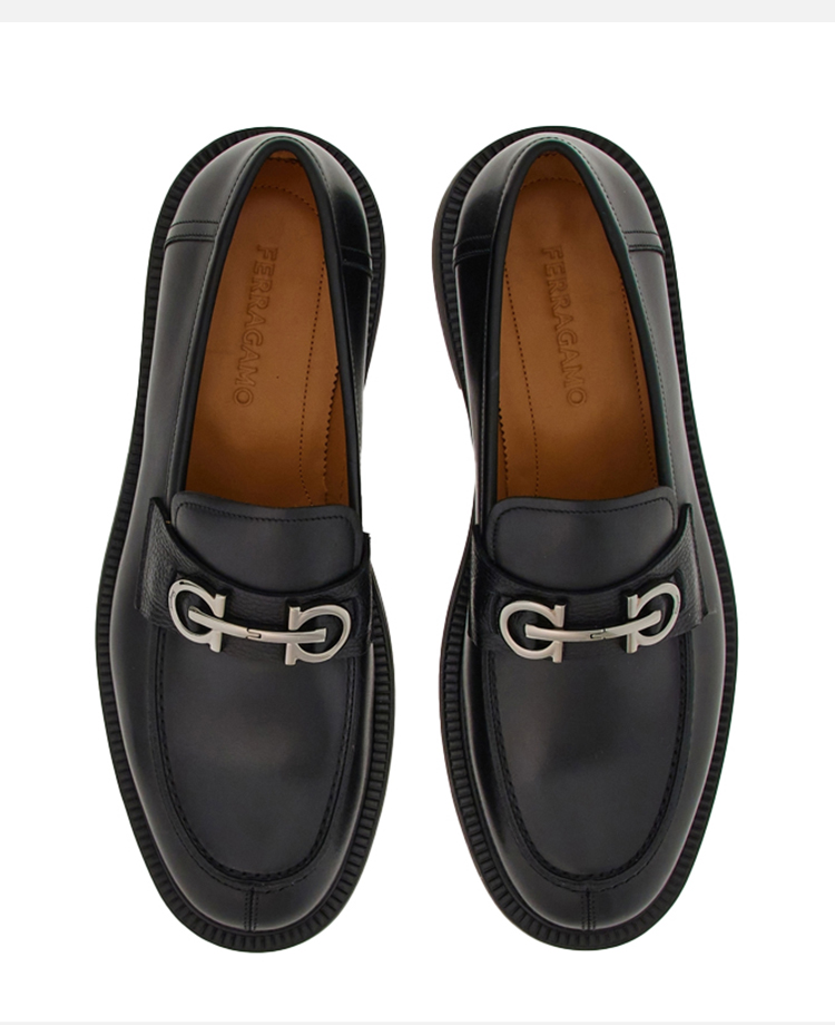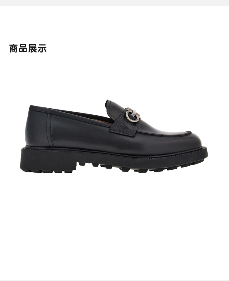 FERRAGAMO 菲拉格慕 男士Gancini扣饰莫卡辛鞋 黑色 762334