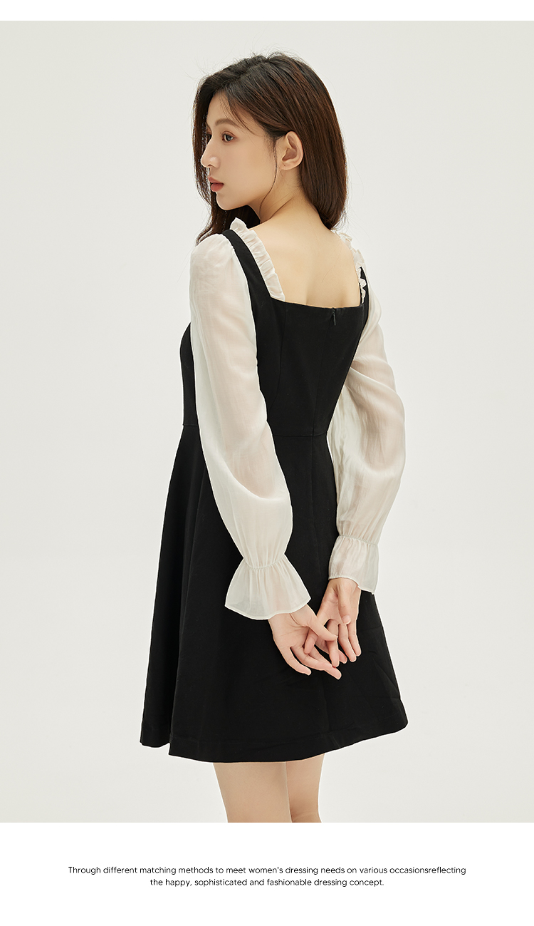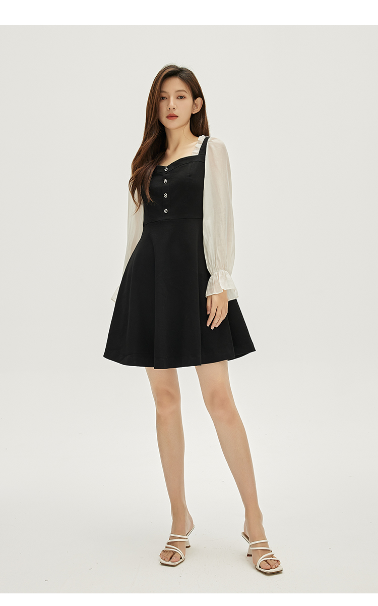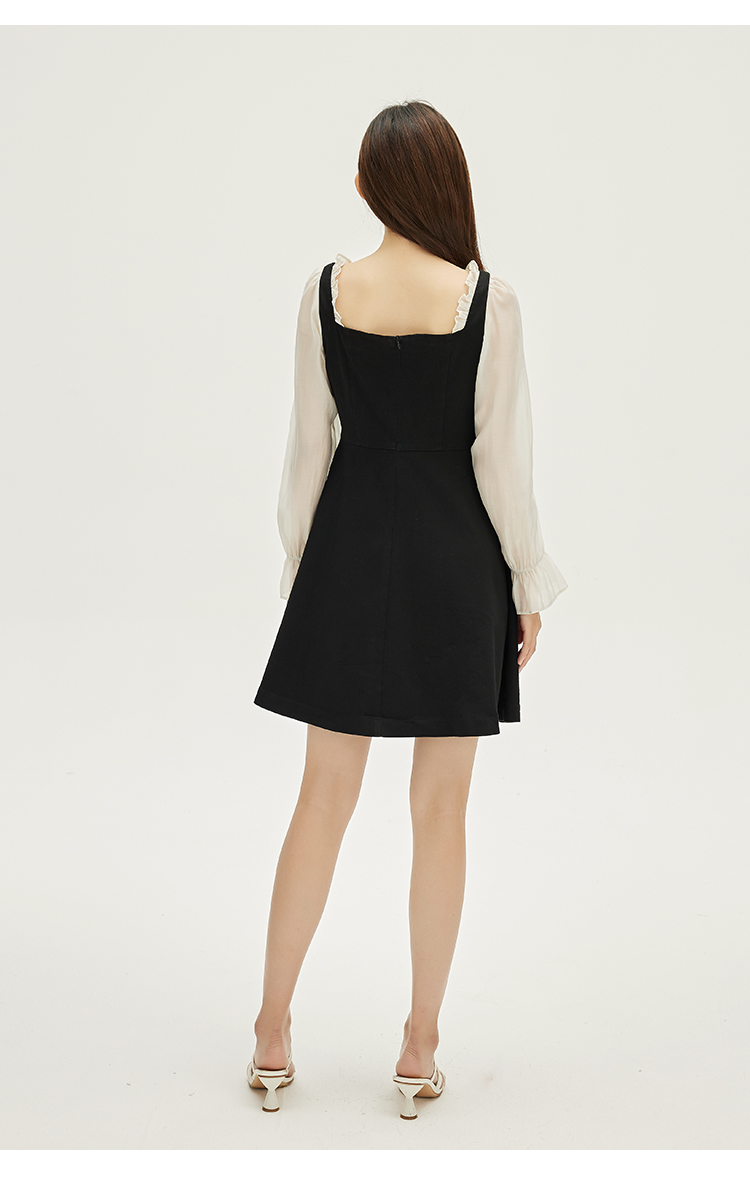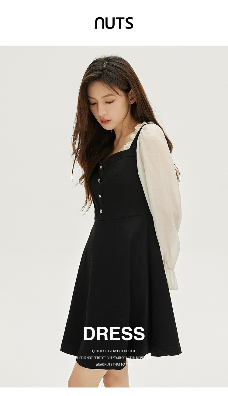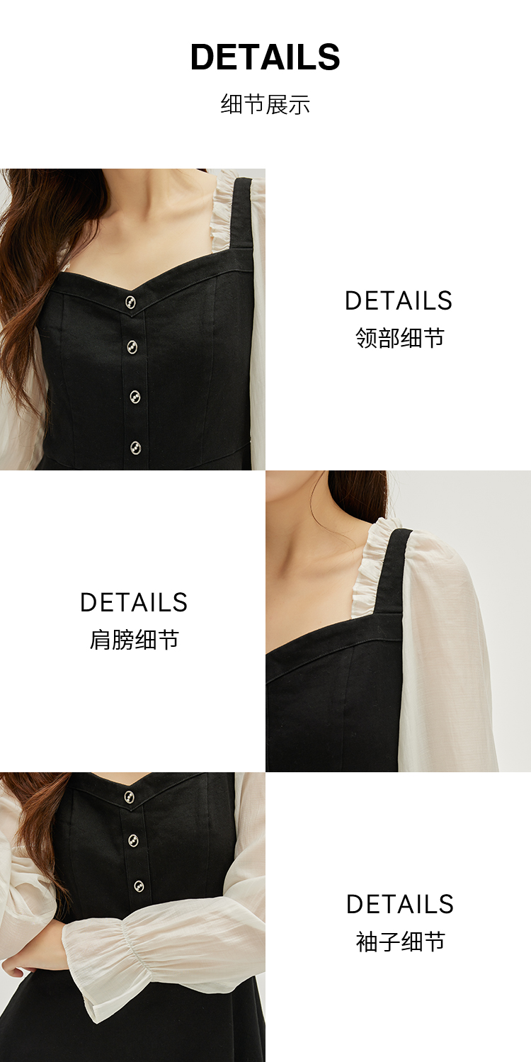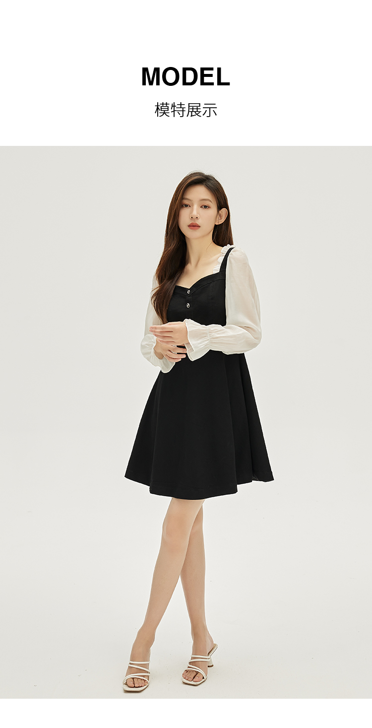 NUTS商场同款春秋季撞色拼接甜美气质高腰短款牛仔连衣裙331101097