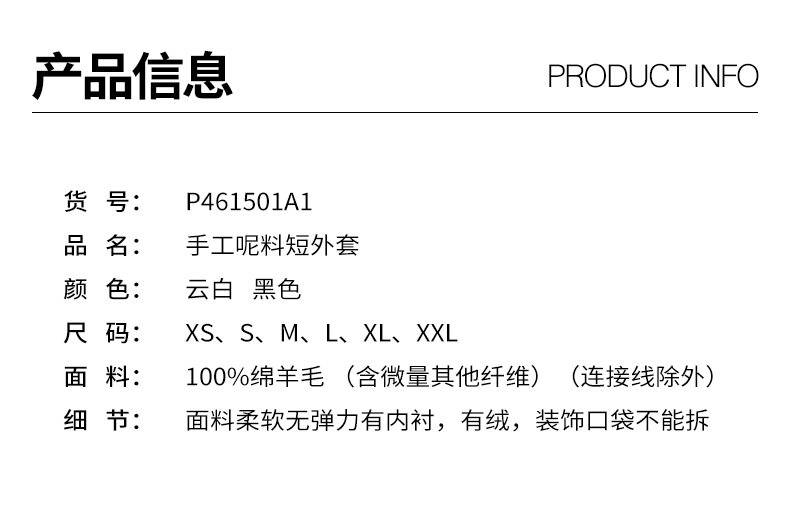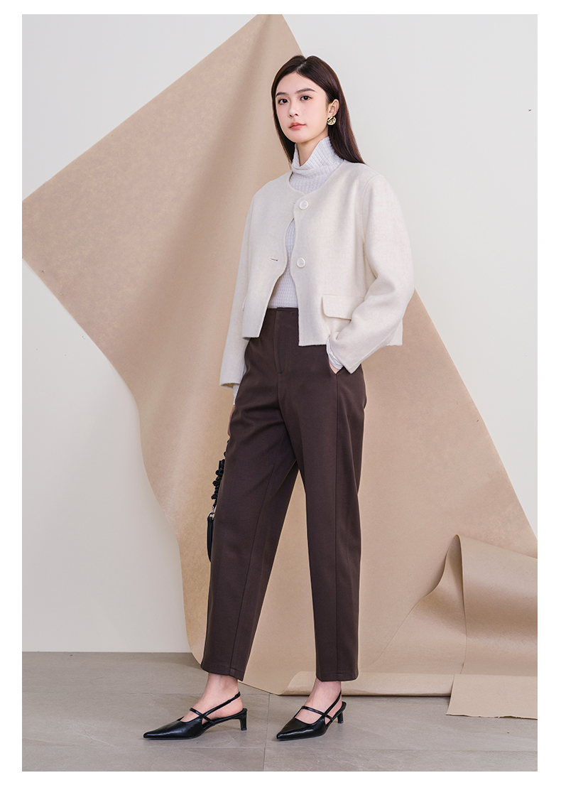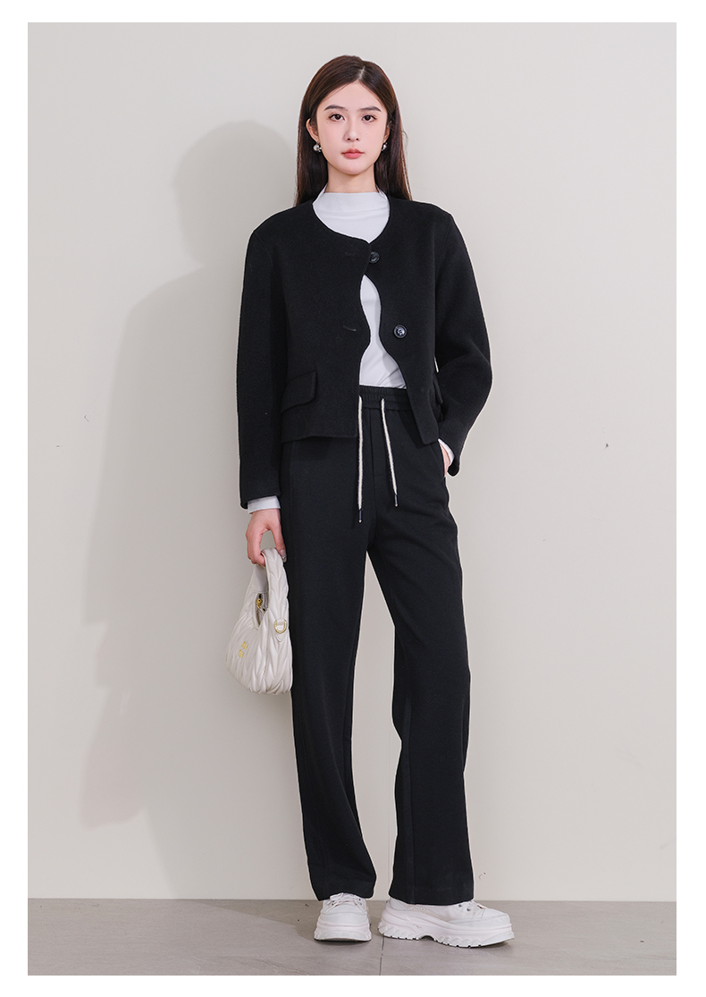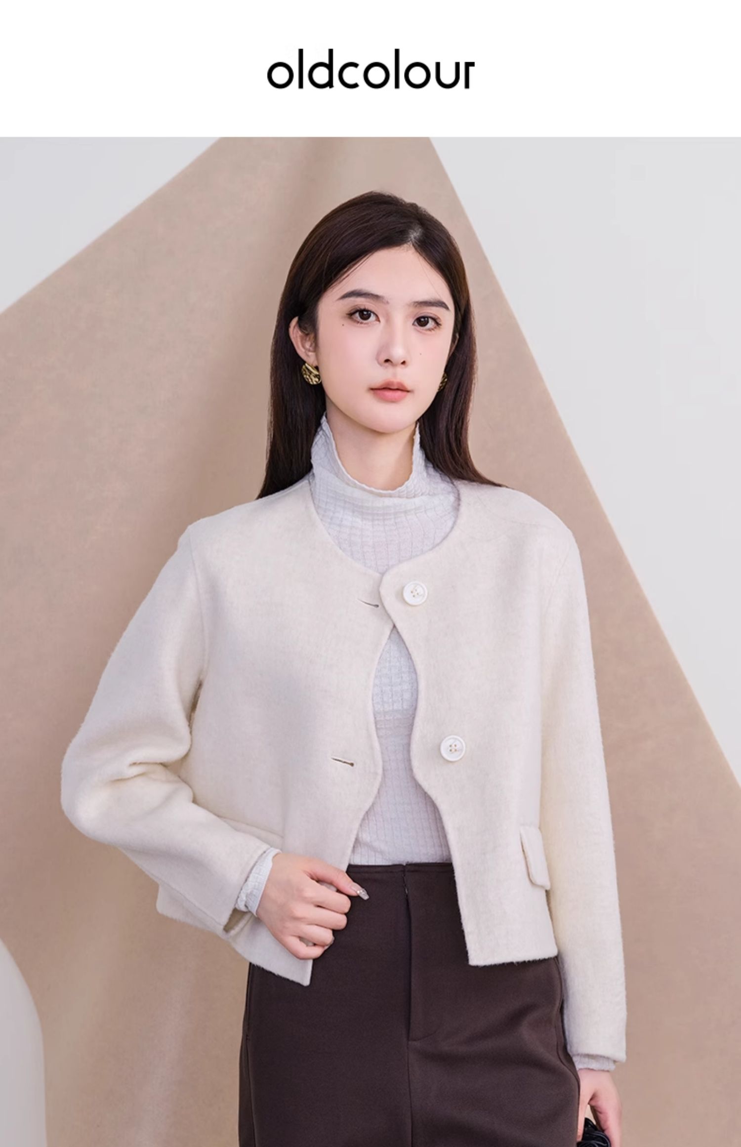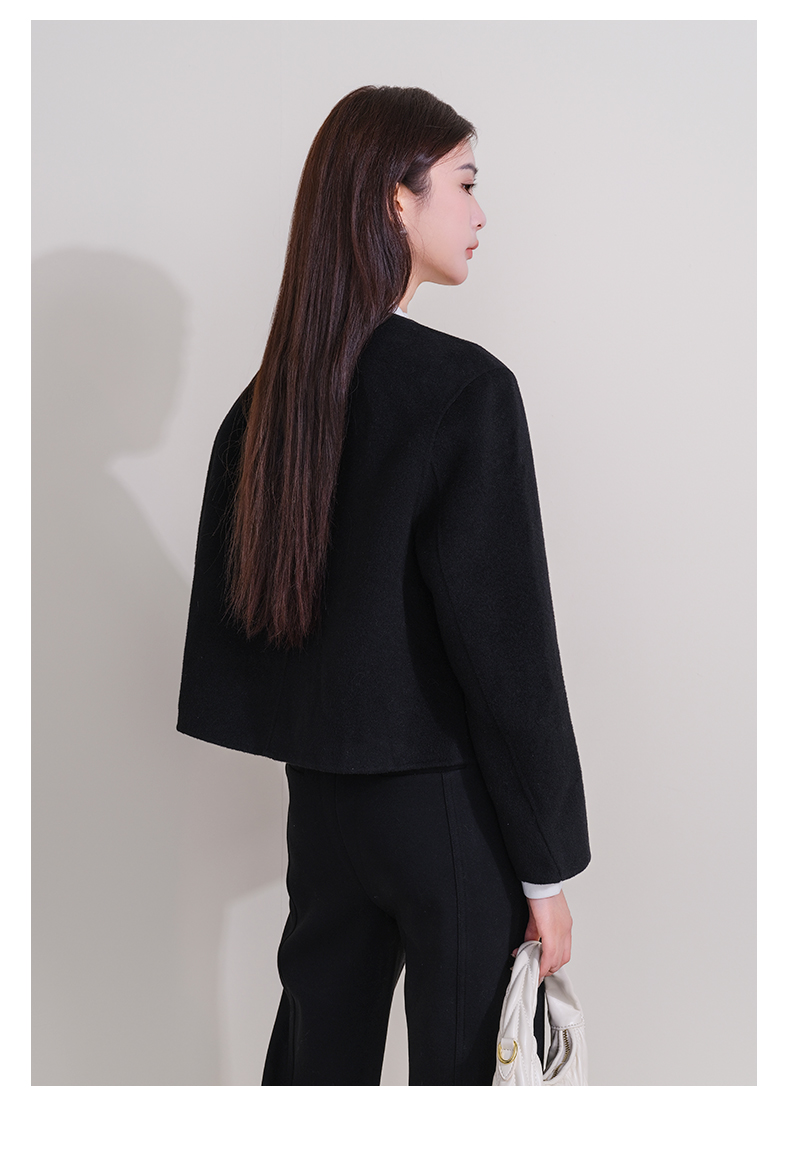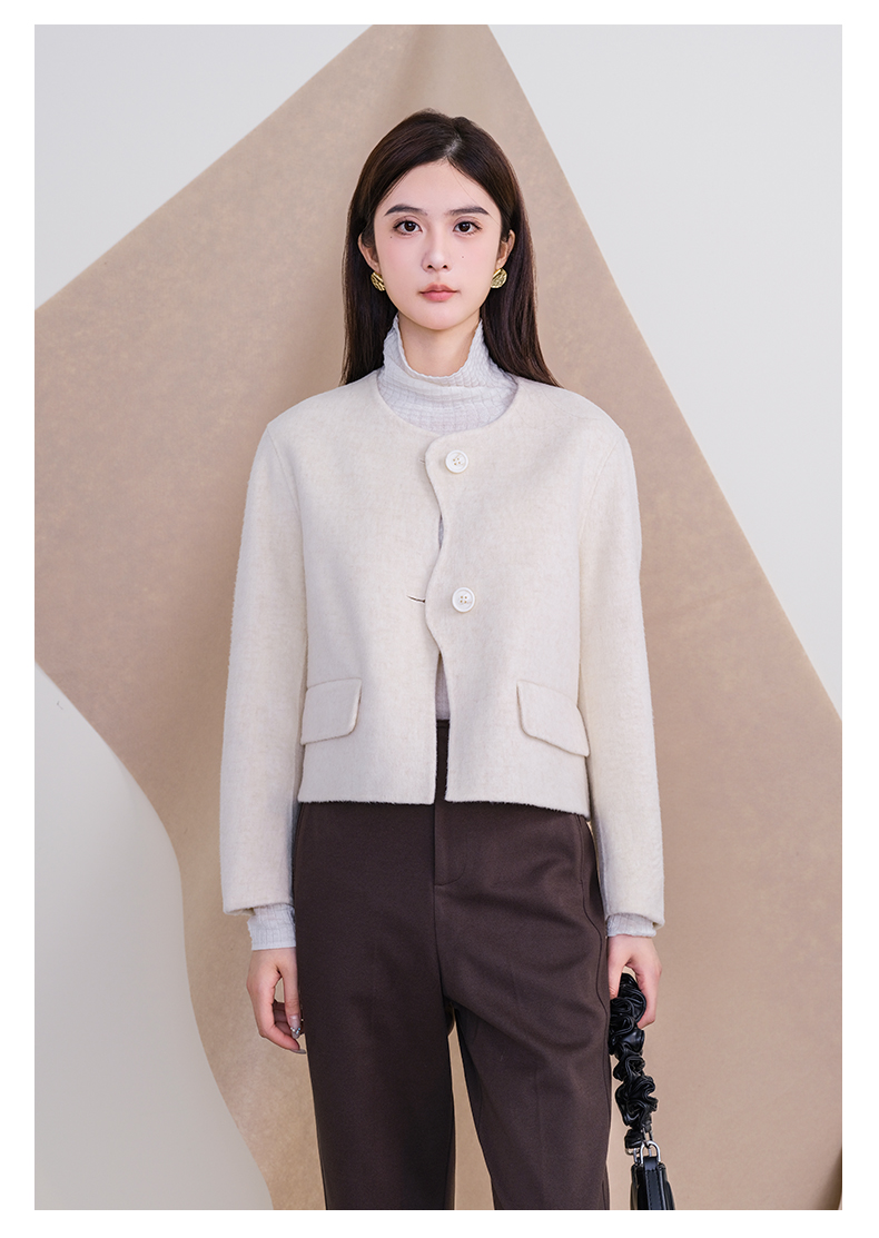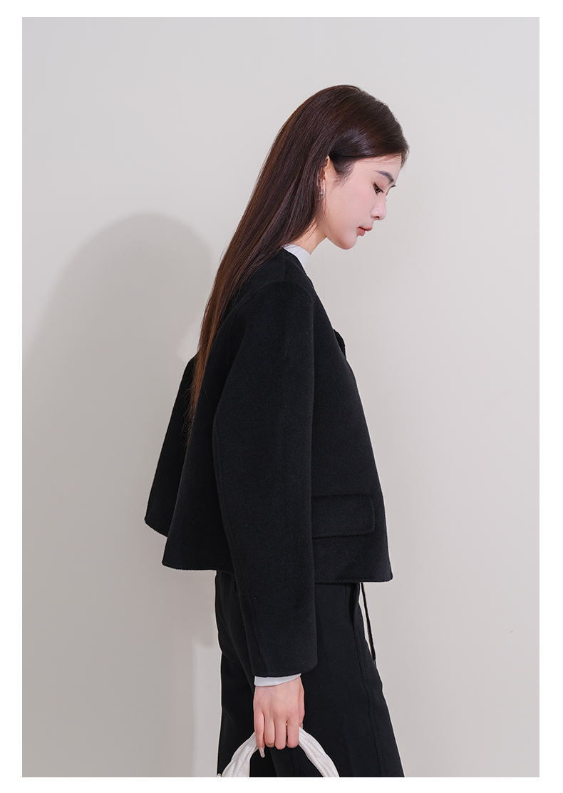 oldcolour欧珂冬新款时尚圆领长袖纯色手工呢料短外套女P461501A1