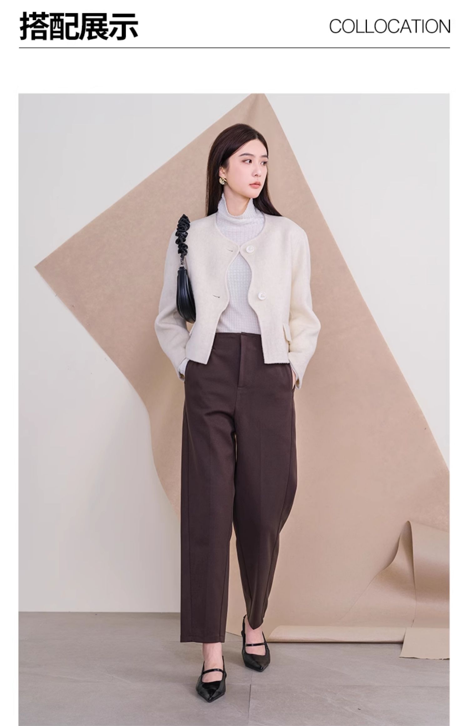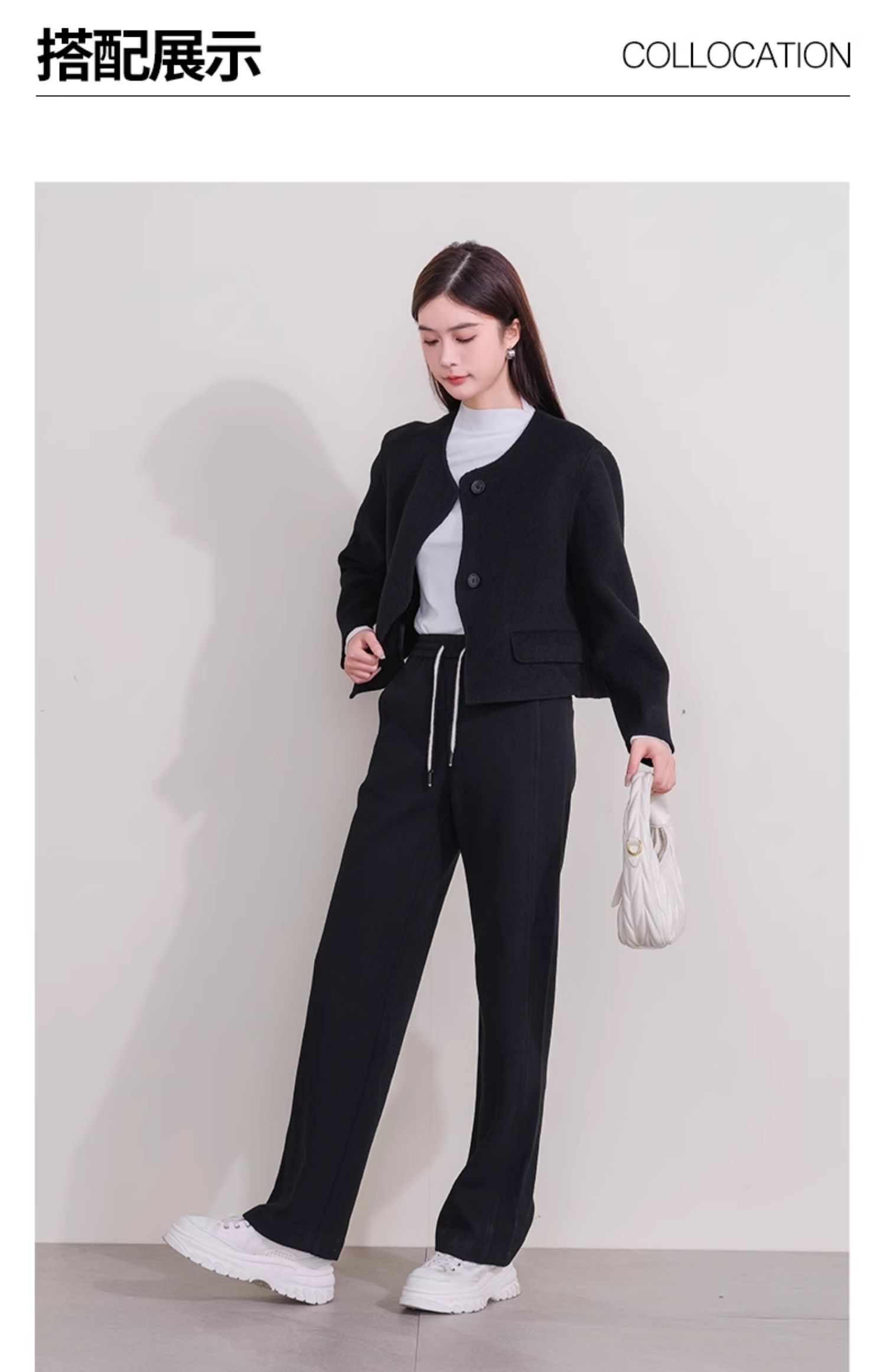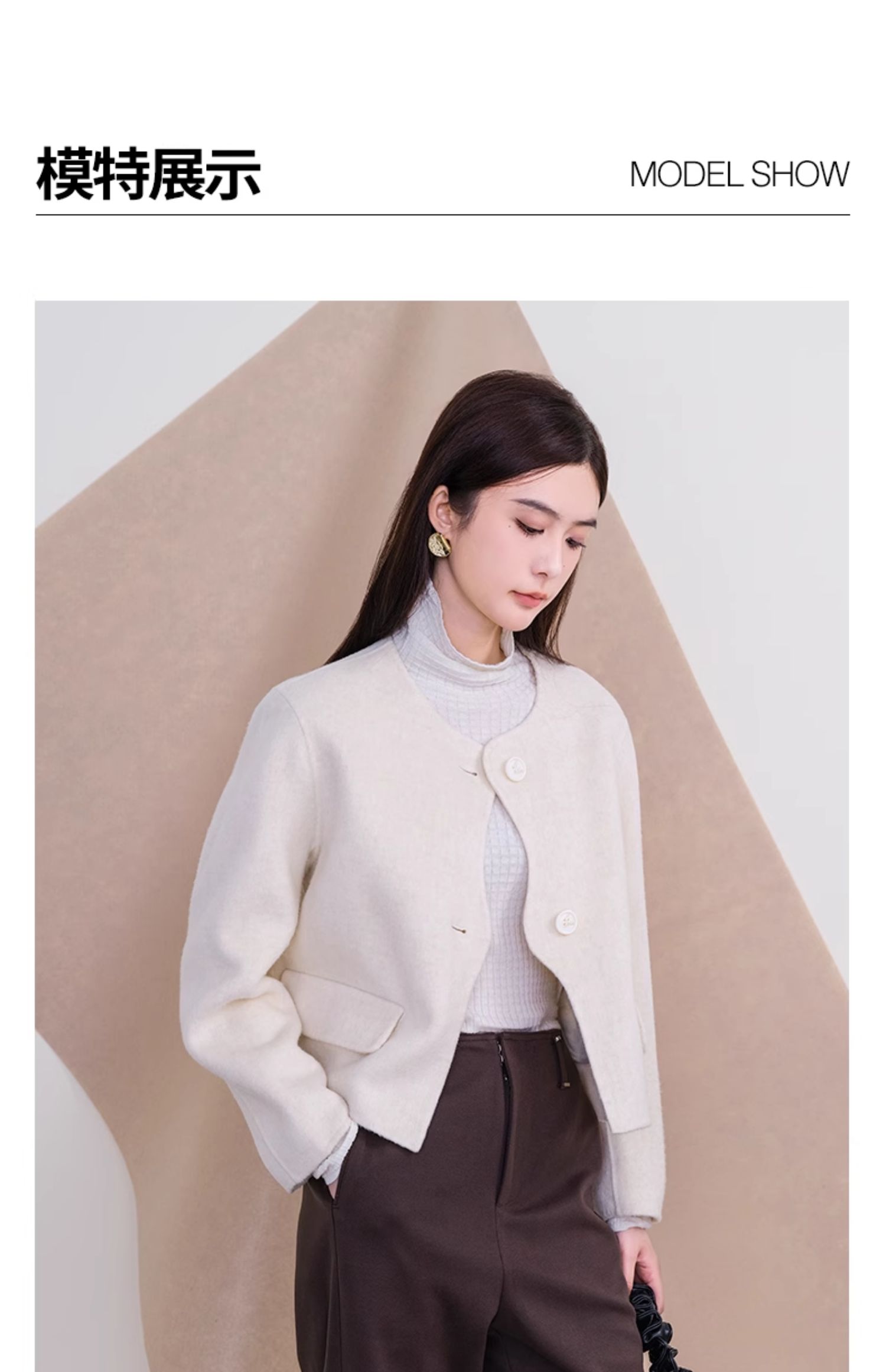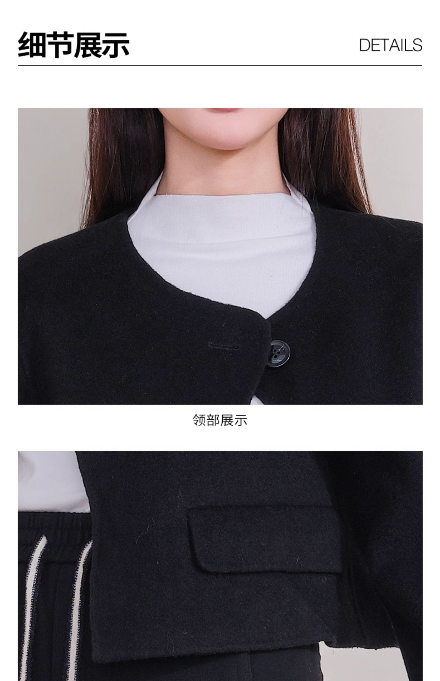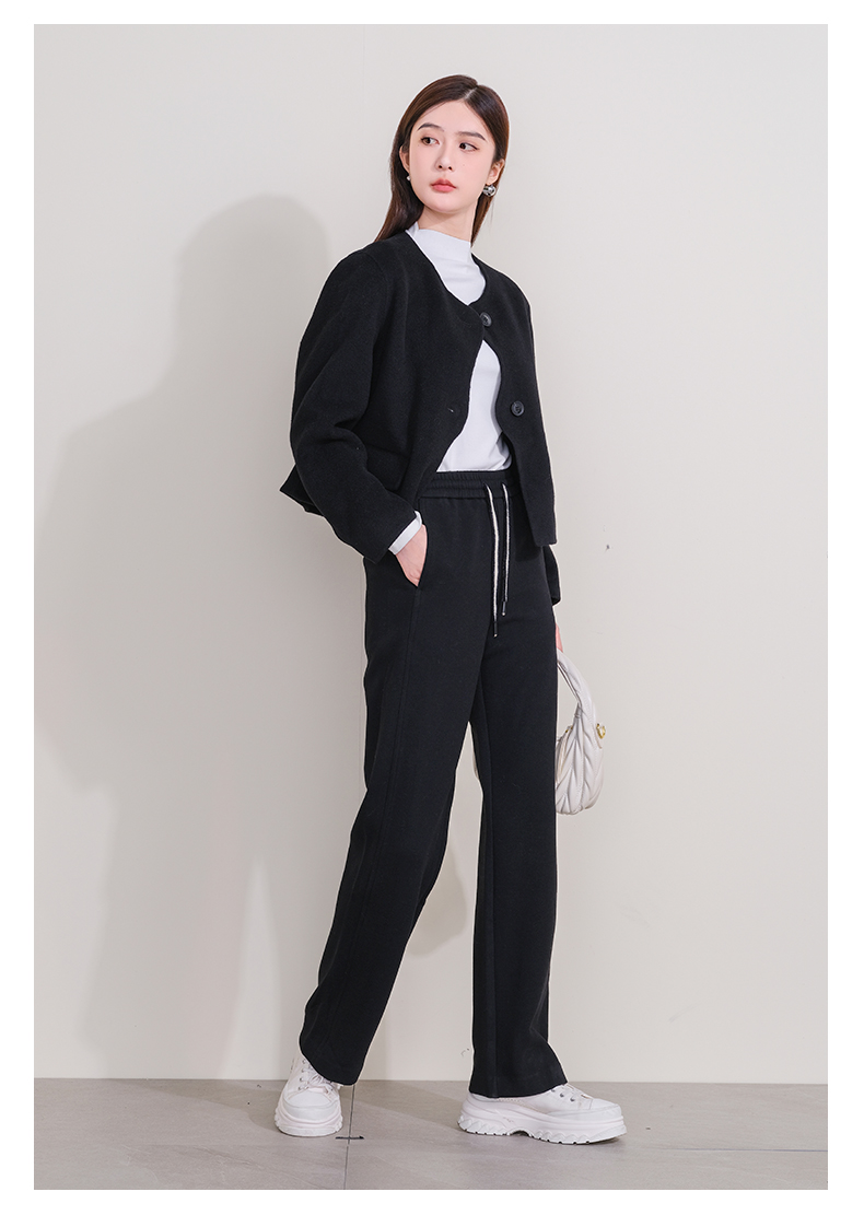 oldcolour欧珂冬新款时尚圆领长袖纯色手工呢料短外套女P461501A1