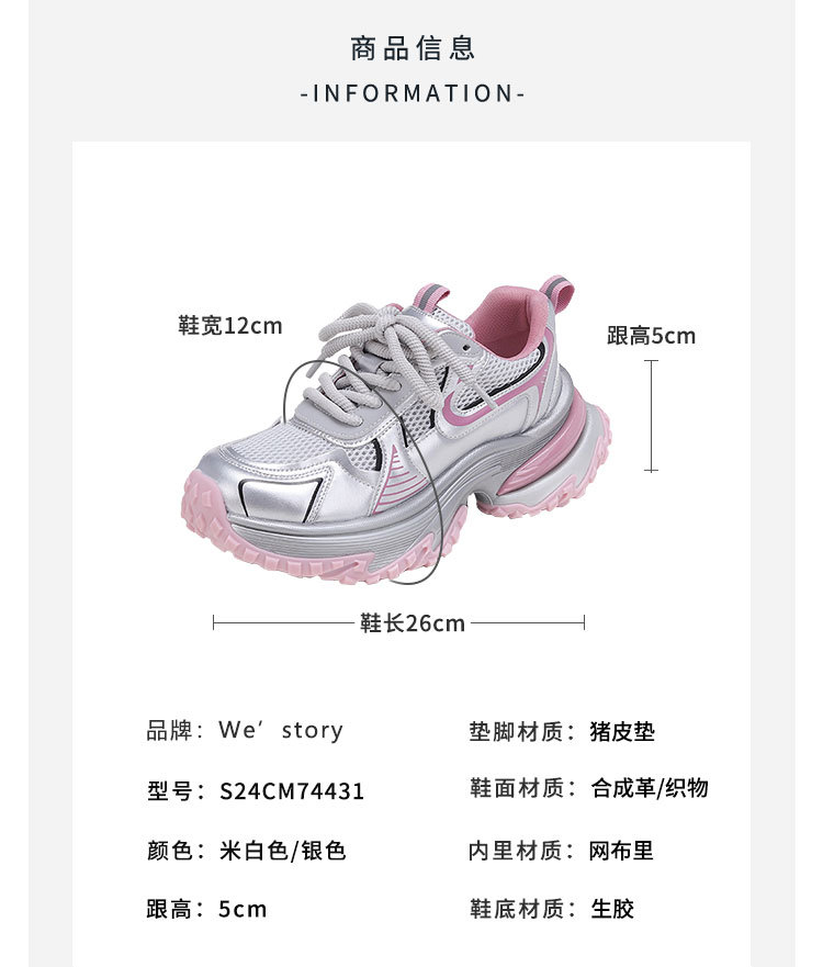 westory春秋新款休闲厚底轻便舒适圆头百搭老爹鞋板S24CM74431