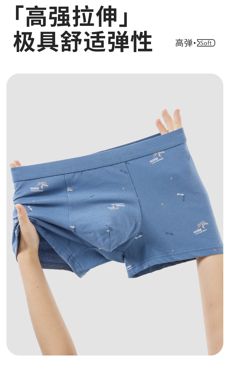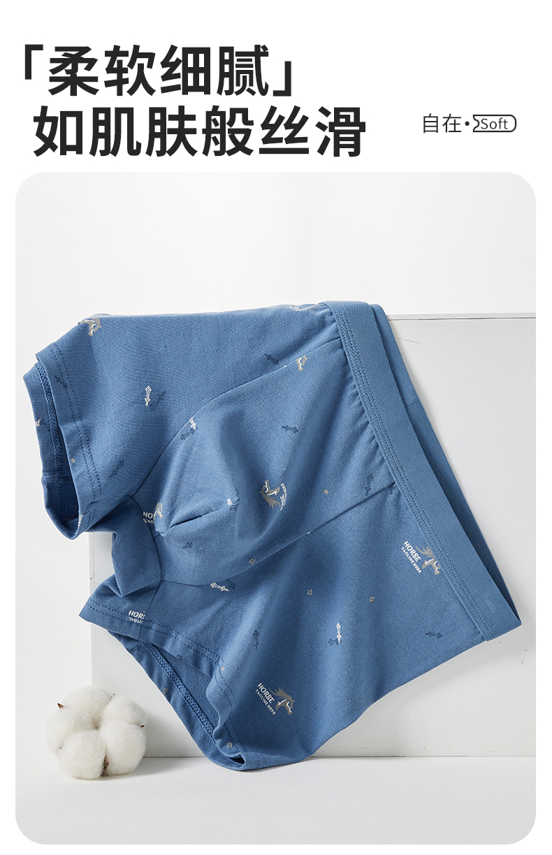 男士弹力棉精梳棉长绒棉印花包头平角内裤四角裤2519