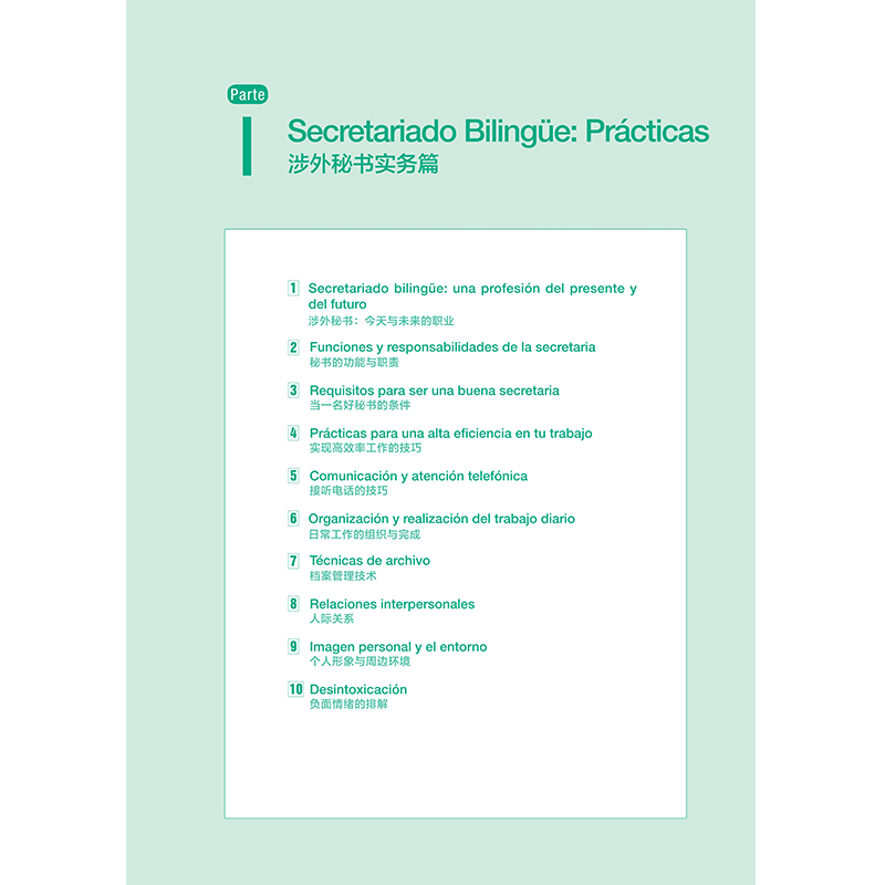 本书适用于西班牙语专业本科或高职学生,也适用于广大的西班牙语爱好者、准备或者已经从事与西班牙语相关的秘书类工作的人士。编者非常感谢在海外企业工作时的同事们,尤其是那几位外国秘书,她们勤勉的工作态度和专业的秘书实务能力令人印象深刻;还要感谢听过本课程的同学们的宝贵建议,是你们鼓舞着我克服重重困难,坚守初心,完善本教材;非常感谢哥伦比亚外教胡安·阿雷瓦洛·卡斯特罗(Juan Arévalo Castro)审读全书并提出宝贵意见。若书中有挂一漏万或不当之处,欢迎大家批评指正,编者将认真对待大家的意见,以便再版时完善。
