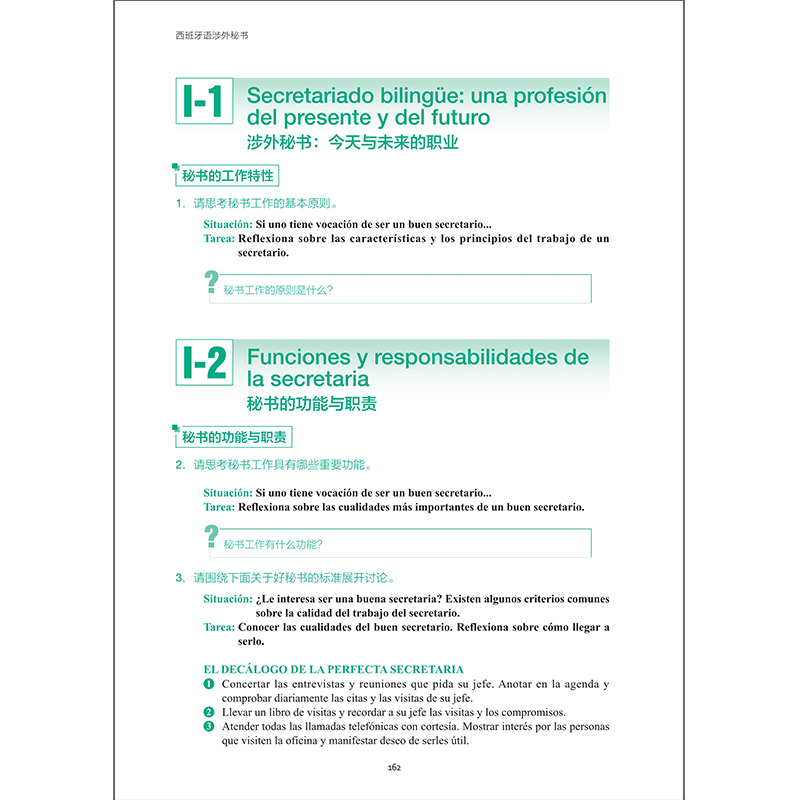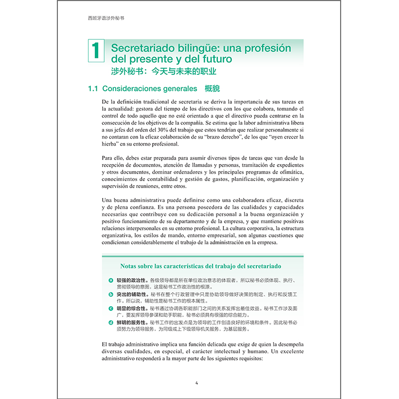 “西班牙语涉外秘书”(Secretariado Bilingüe Español-Chino)是编者在上海外国语大学工作期间给本科生开设多年并且目前在上海杉达学院继续开设的西班牙语专业应用型课程。本课程的特点是,教师在授课过程中,可以主动分享一些自己在海内外工作、学习、生活的经验体会,结合秘书知识和待人、接物、处事方面的实例,组织学生讨论,各抒己见,或者组织秘书实务情景演示,体会比较,使这门课程更生动、更有质感。