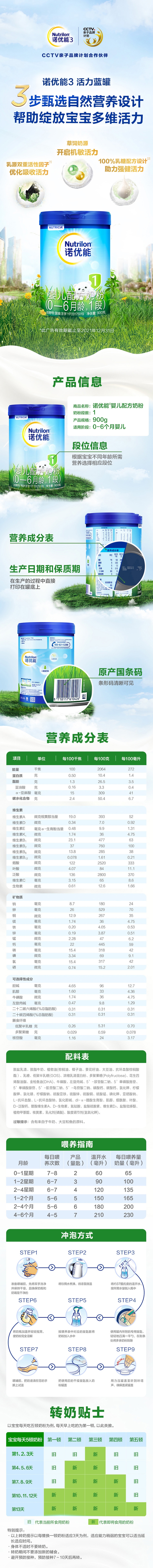 诺优能婴儿配方奶粉(0-6月龄,1段)900G铁罐装