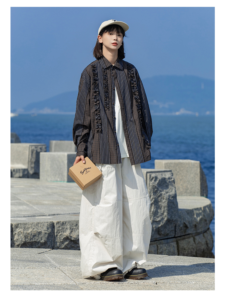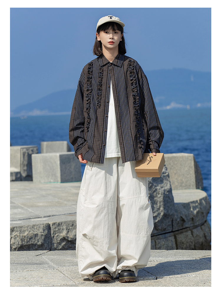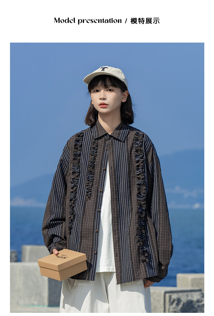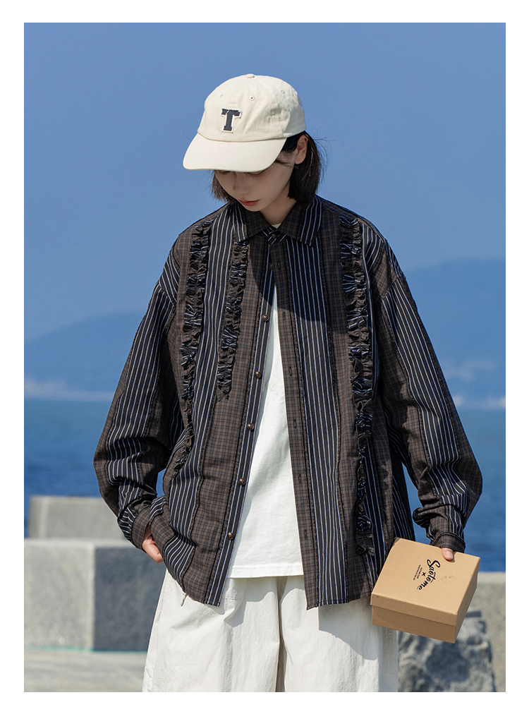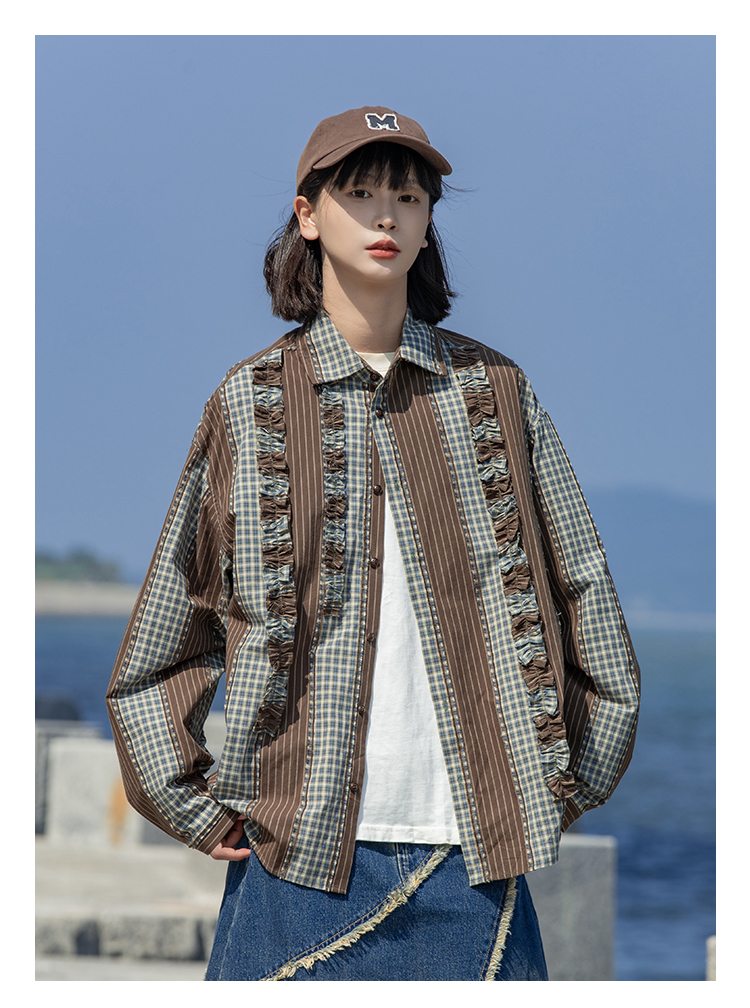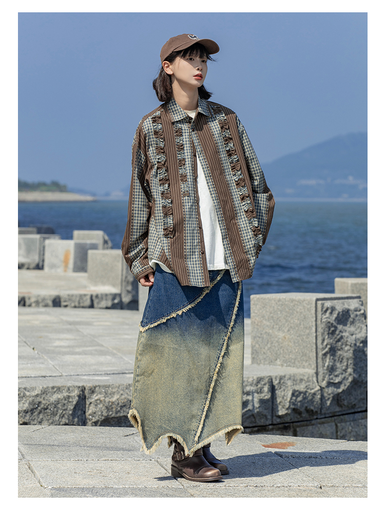 早乙女惠子saotome/STMCS243157/不规则条格木耳边长袖衬衫