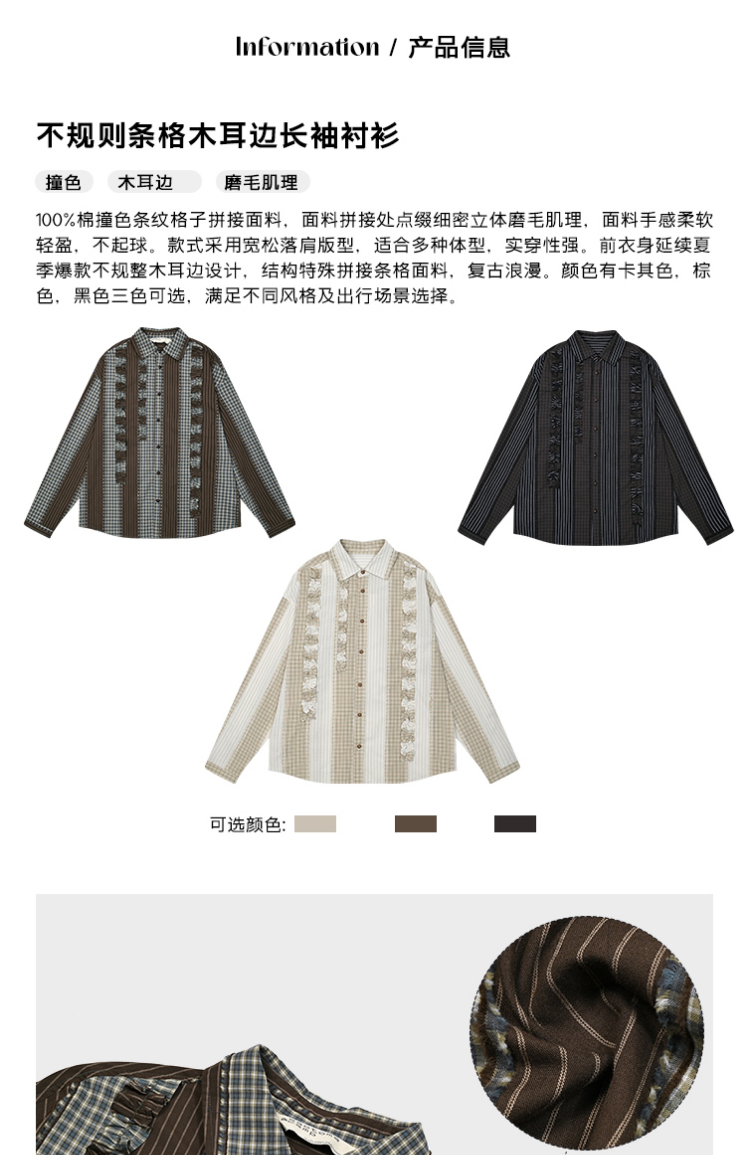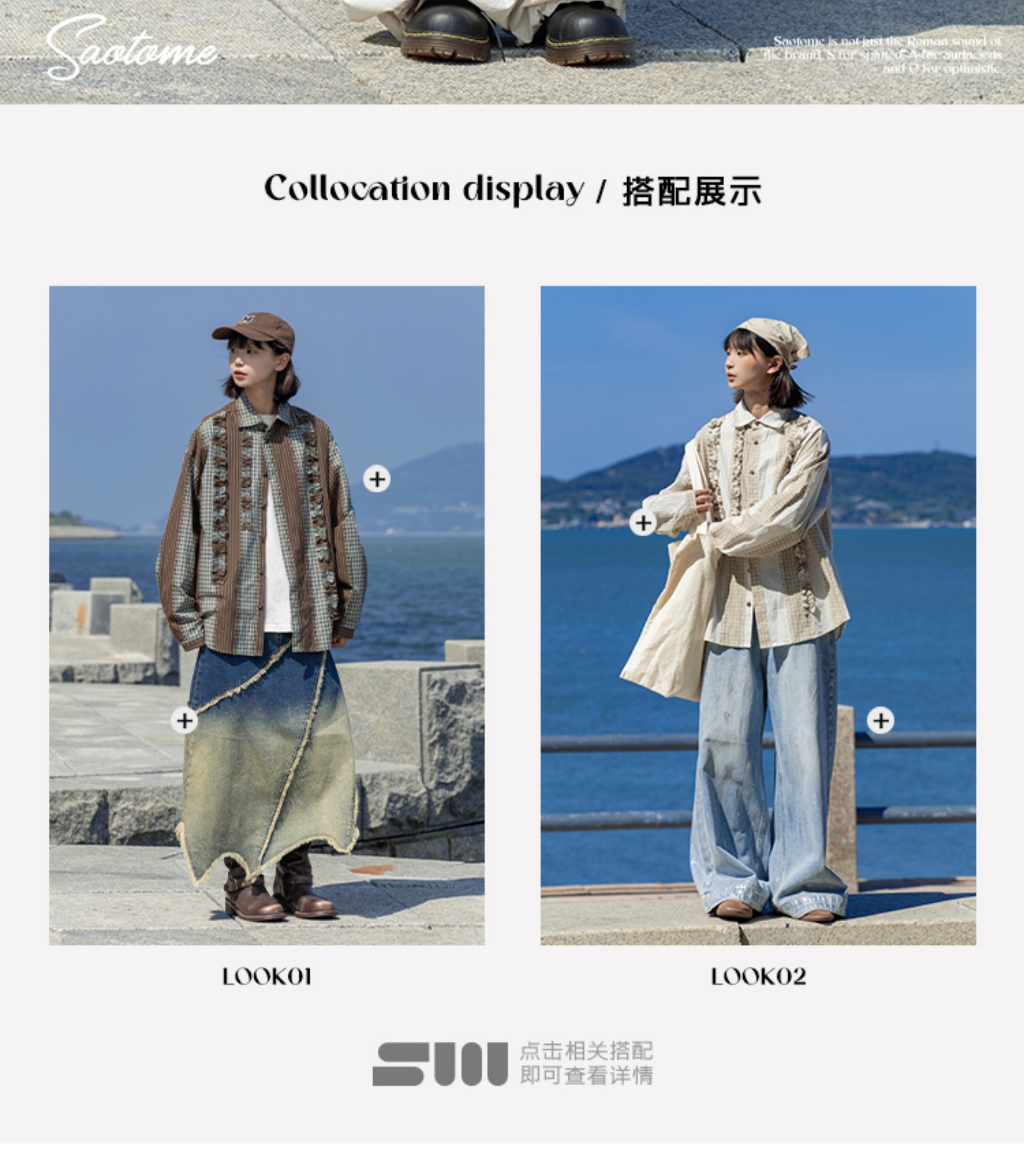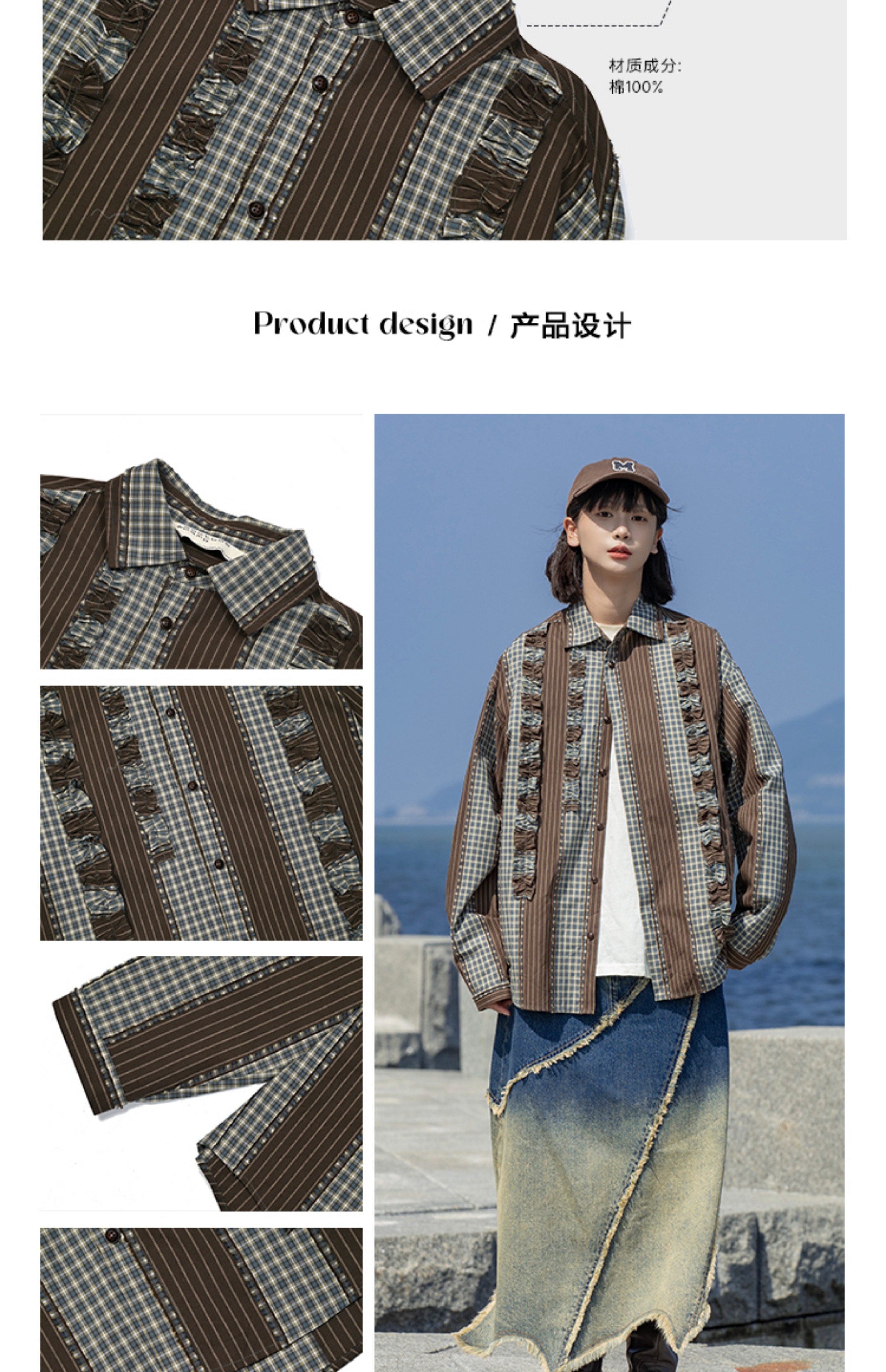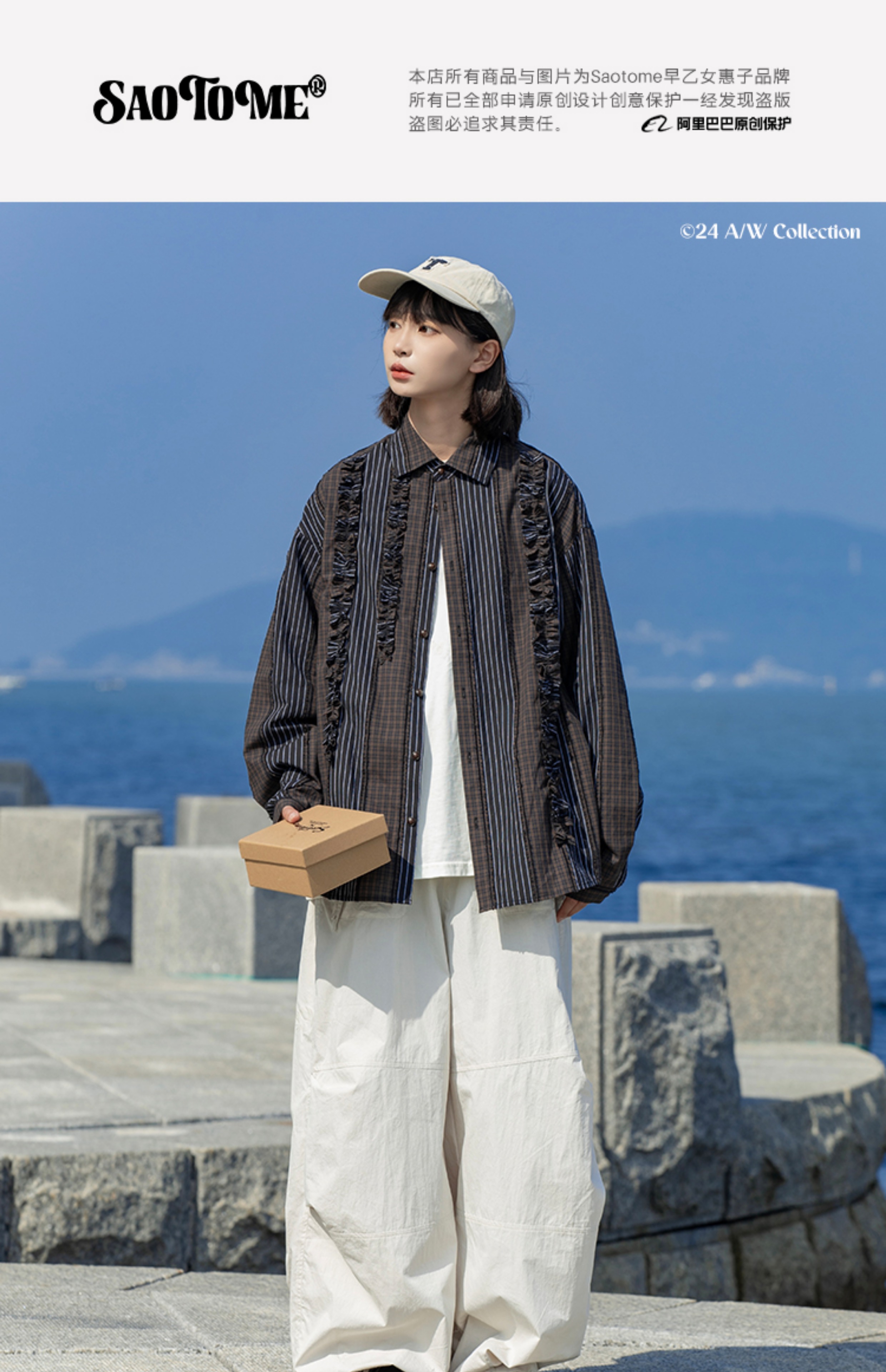 早乙女惠子saotome/STMCS243157/不规则条格木耳边长袖衬衫