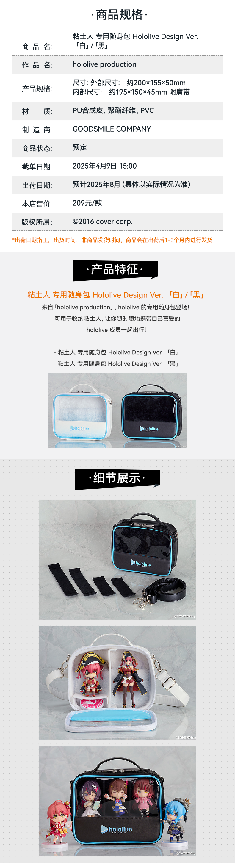 【GSC补款】粘土人 专用随身包 Hololive Design Ver. 「白」/「黑」