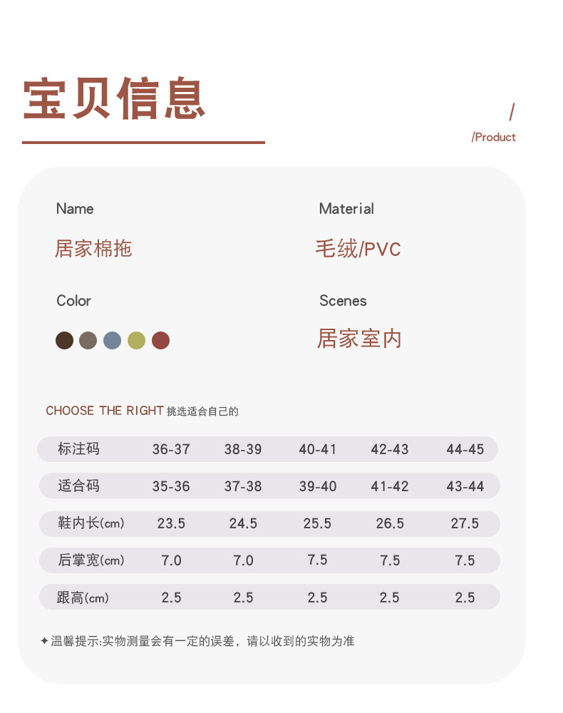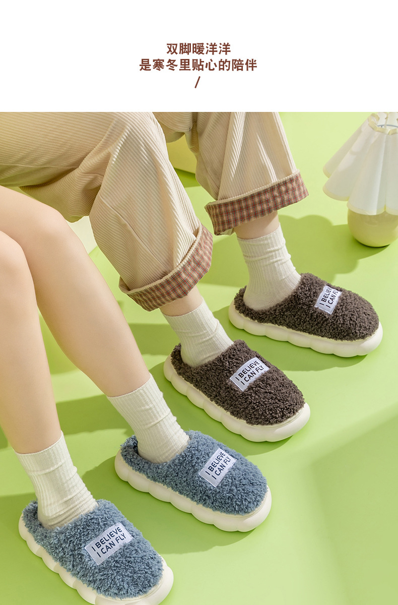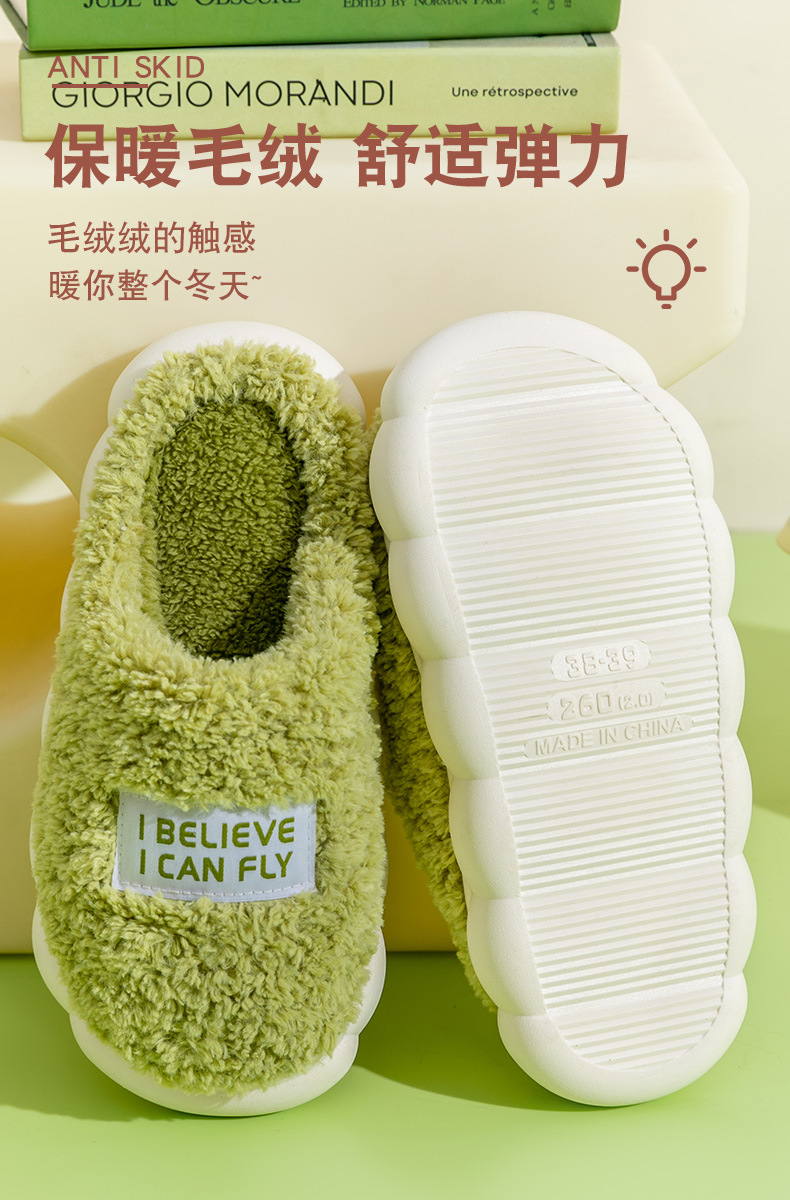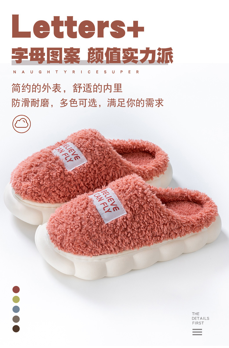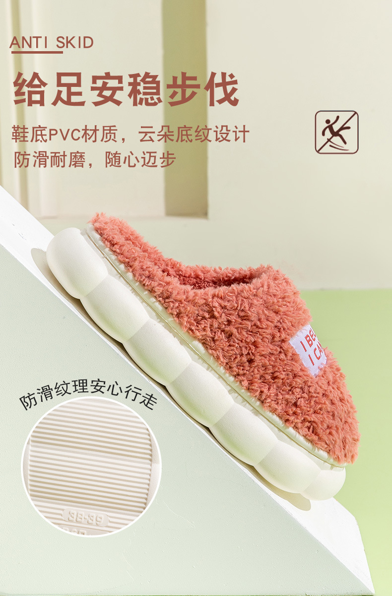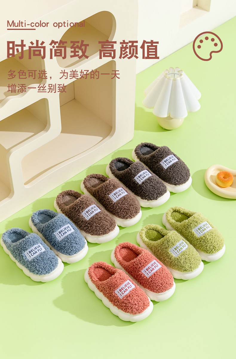 「五色可选!厚底静音款」居家棉拖鞋女秋冬季家居家用厚底静音防滑保暖冬天情侣毛绒拖鞋男