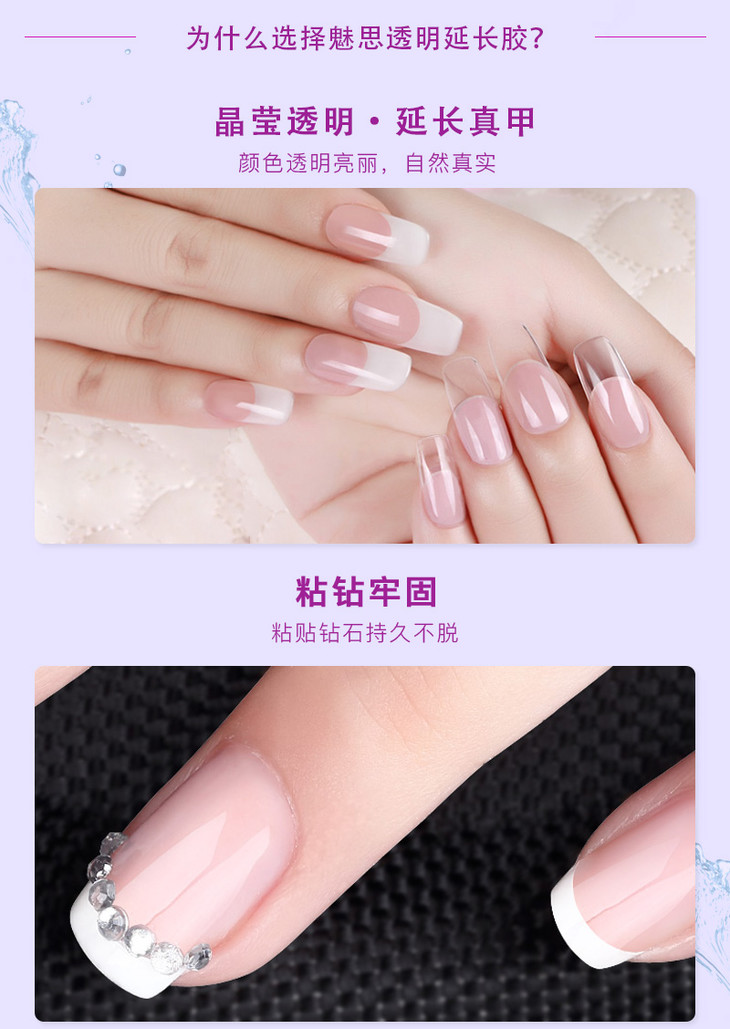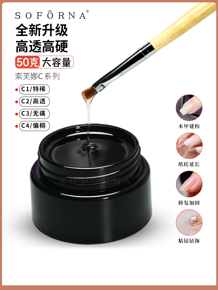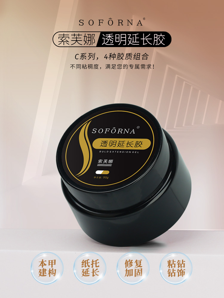 索芙娜(魅思)透明延长胶50克.1瓶装 .4瓶装.10瓶.(10瓶赠一支光疗笔)即日起发黑色包装.产品不变(偏稠2012-2021年一直卖)