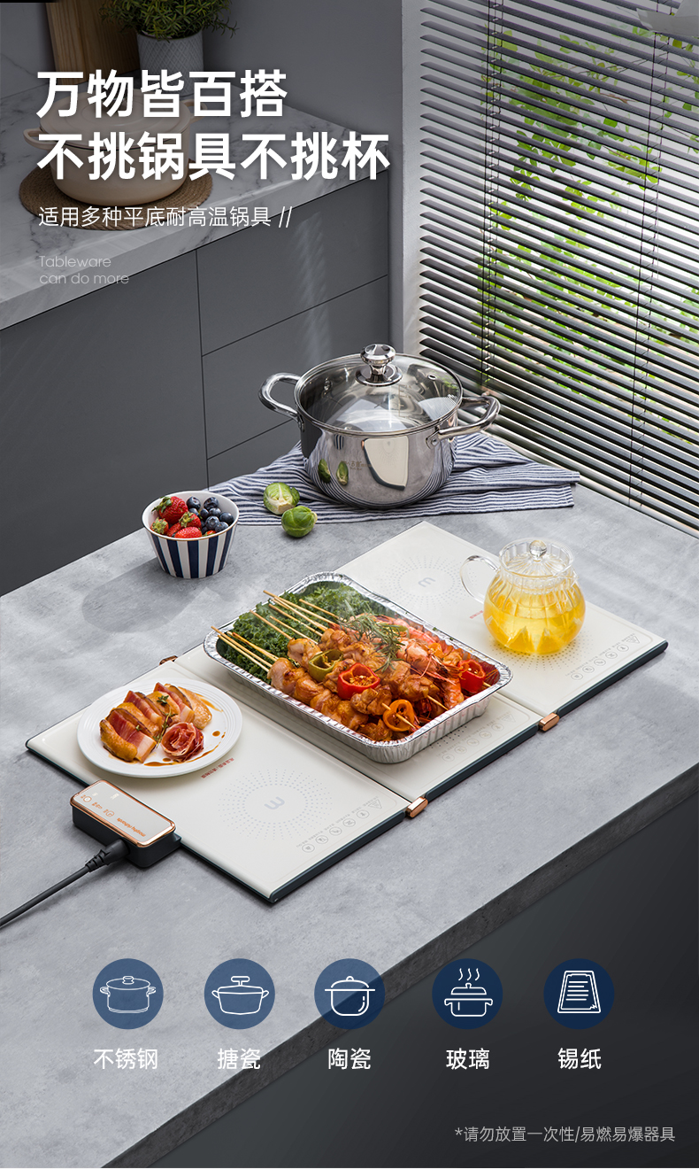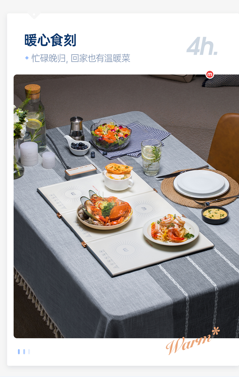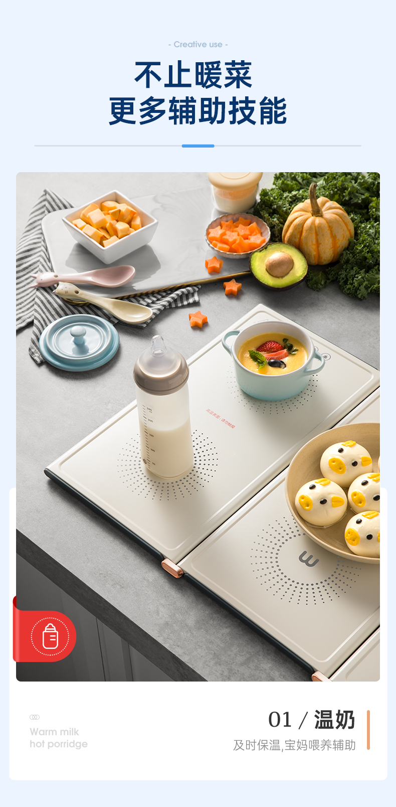 摩飞暖菜板可折叠饭菜板热菜板保温板家用桌面多功能餐桌暖菜垫MR8300 椰奶白 暖菜板