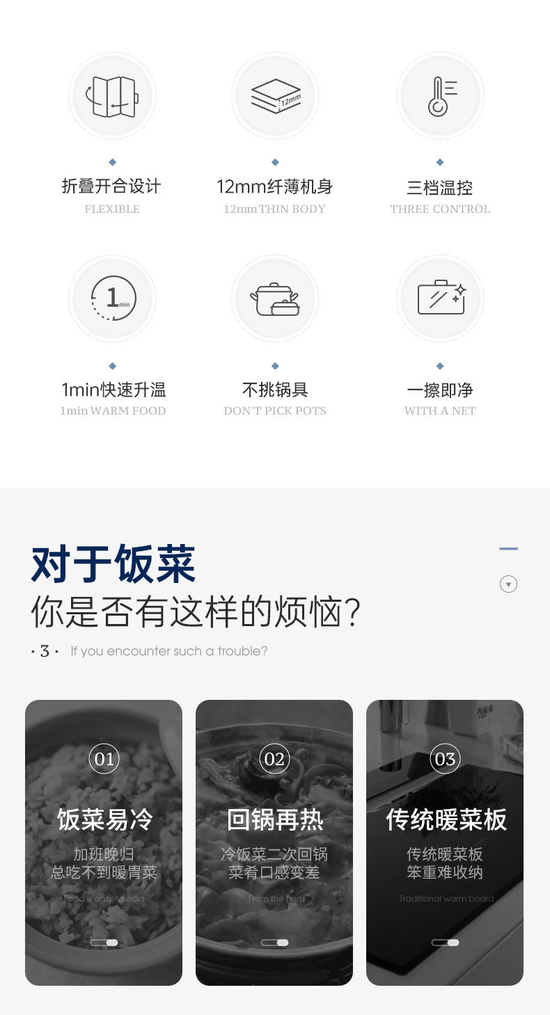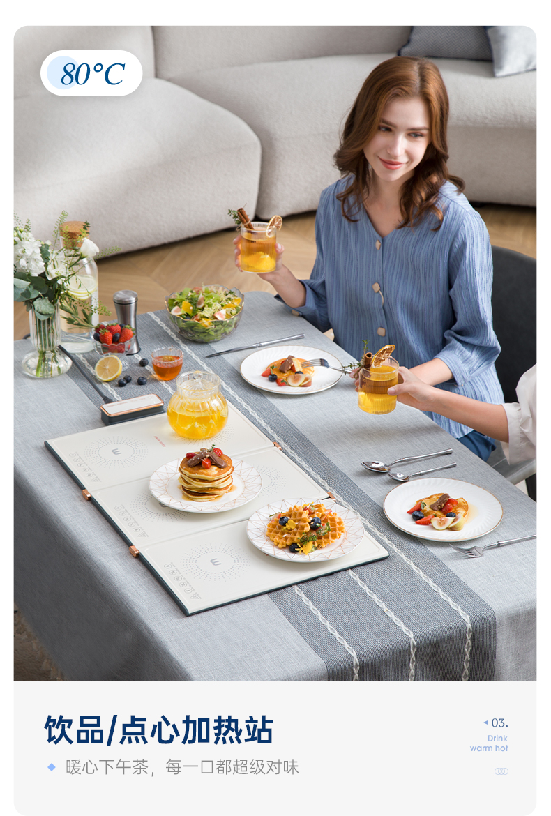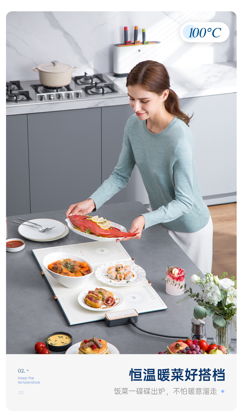 摩飞暖菜板可折叠饭菜板热菜板保温板家用桌面多功能餐桌暖菜垫MR8300 椰奶白 暖菜板