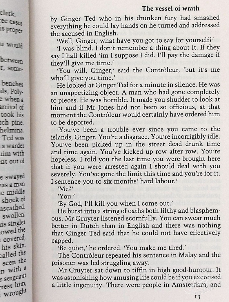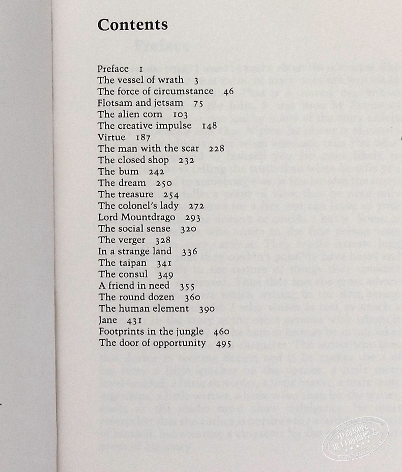 The stories in this collection move from Malaya to America and England, and include some of Maugham's most famous tales; 'Flotsam and Jetsam', the story of an old woman trapped for years in a loveless marriage in the remote rubber plantations; 'The Man with the Scar', and notably the opening story 'The Vessel of Wrath', a tale of the unexpected love that grows between a devout missionary nurse and a drunken reprobate. In this second volume of his collected stories, Maugham illustrates his characteristic wry perception of human foibles and his genius for evoking compelling drama from an acute sense of time and place. (20010730)