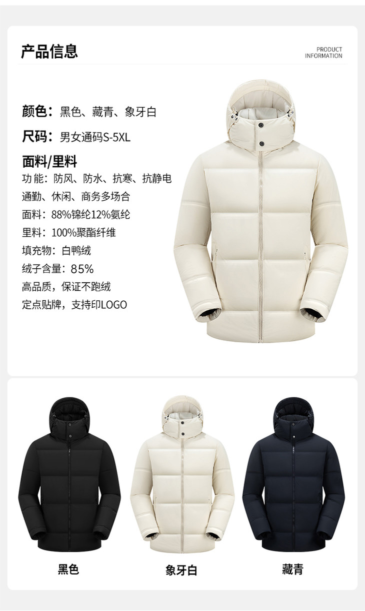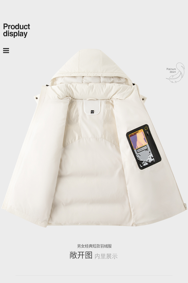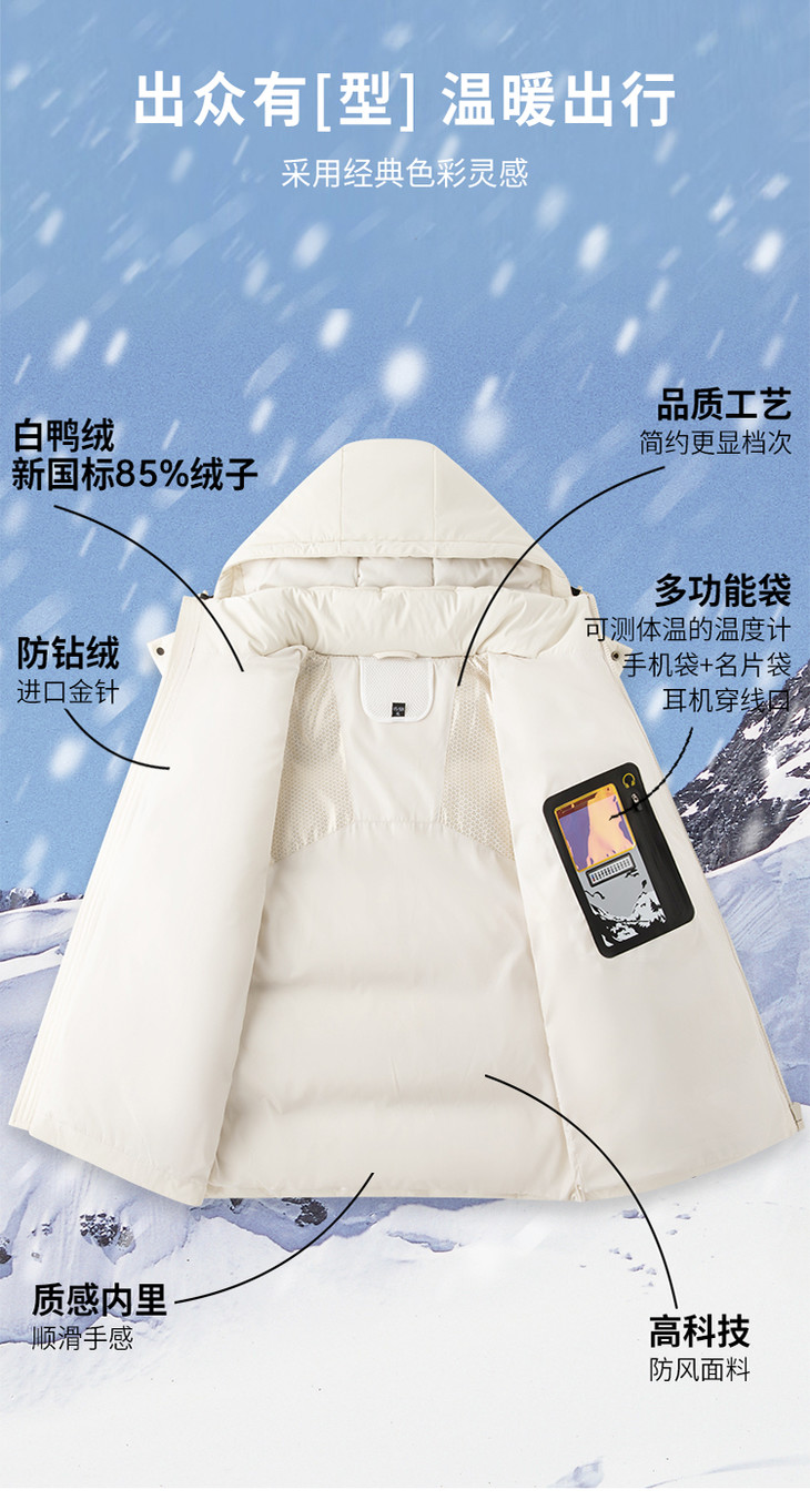 【实付满399送保温杯】【加厚保暖通勤羽绒服】男女同款羽绒服外套连帽白鸭绒棉服YT504