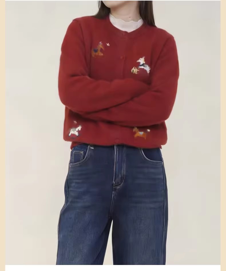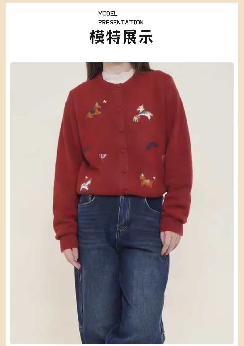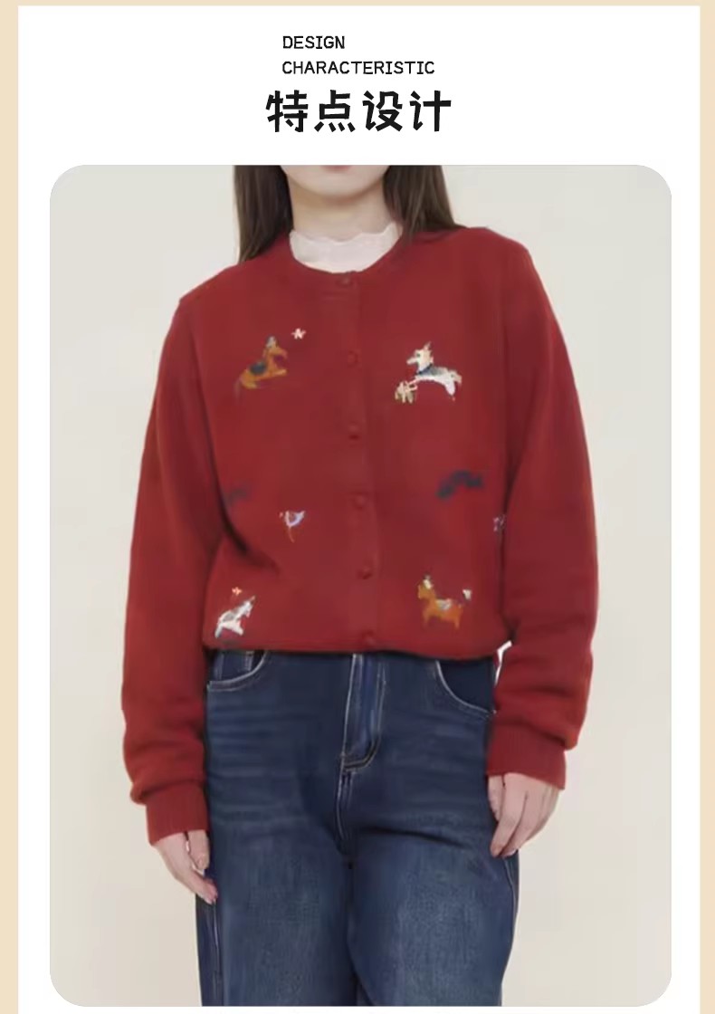 【门店同款】ENJOY冬季“午马”刺绣小马开衫针织 168897683
