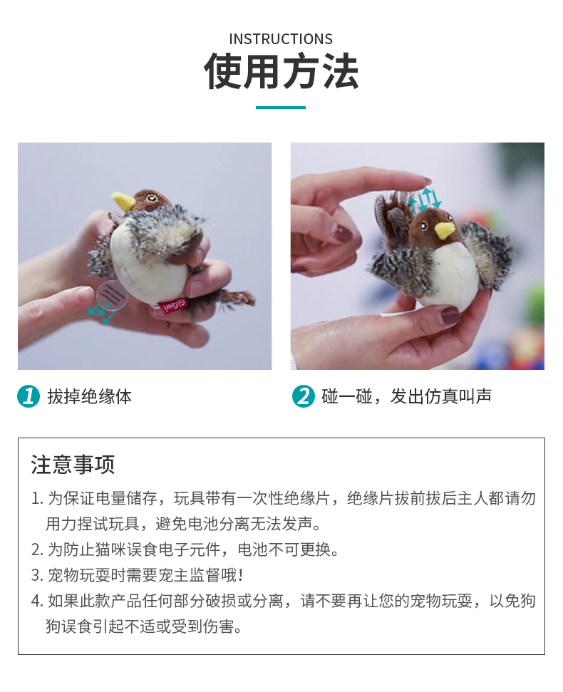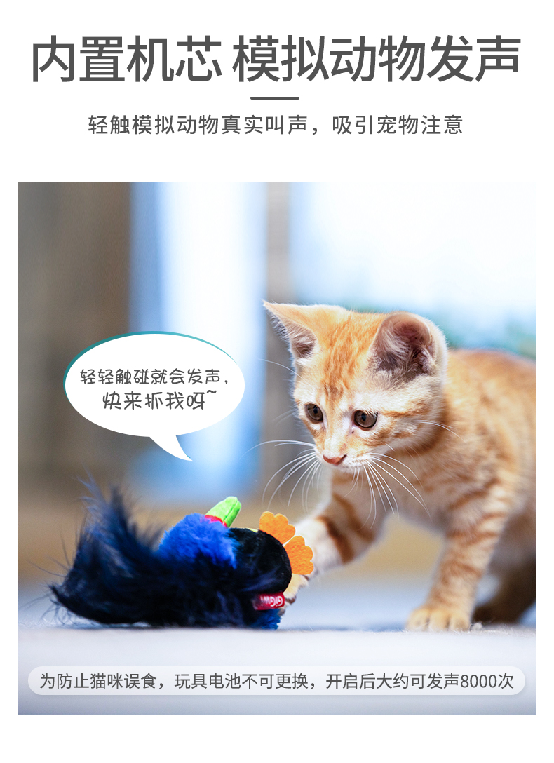 GiGwi贵为猫玩具猫咪解闷自嗨小鸟老鼠发声仿真会叫宠物逗猫棒