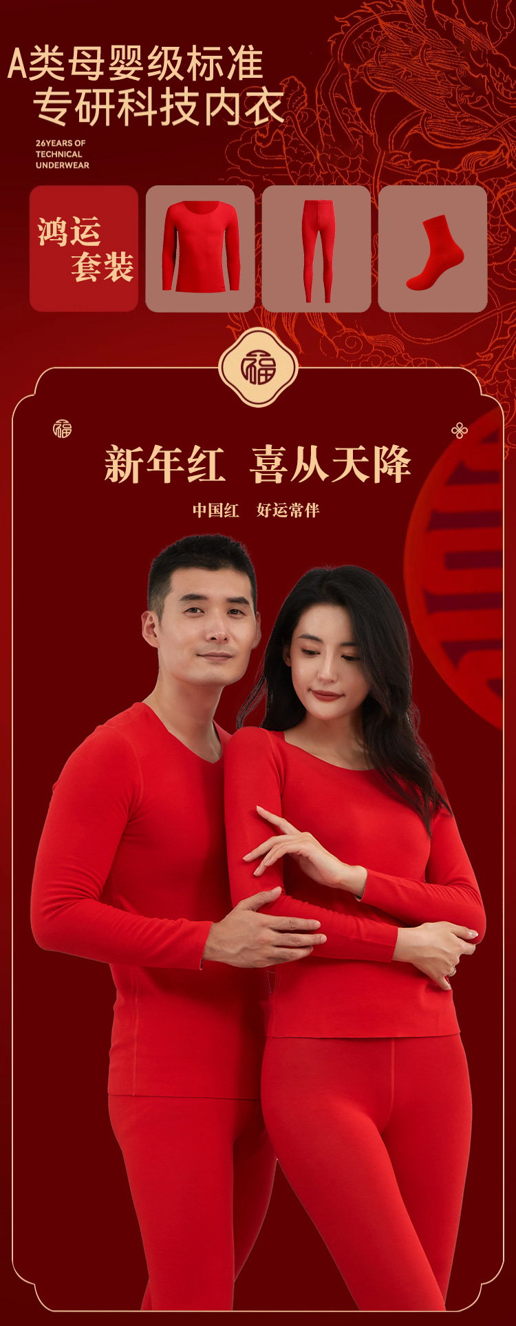 【中国红羊绒蚕丝套装 加赠3双红色天竹纤维袜】 A类母婴级 7A+3A抑菌 本命年婚嫁必备