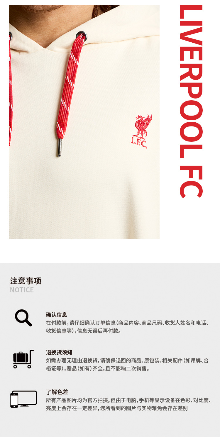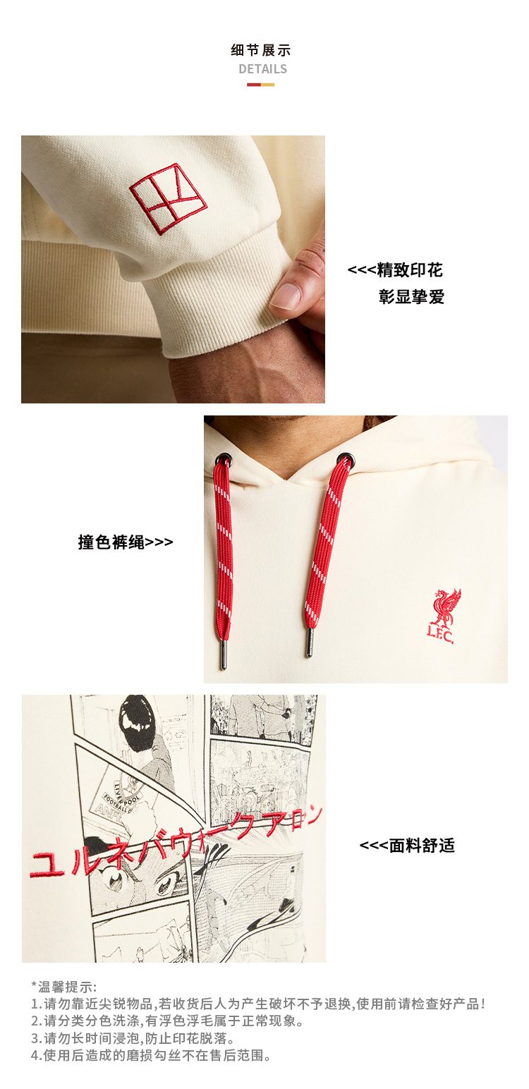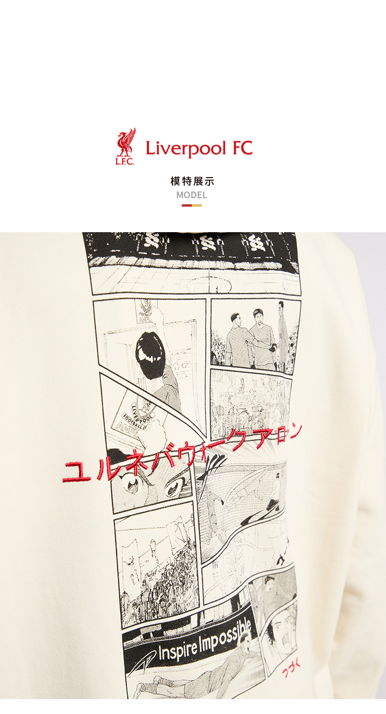 【官网同款】利物浦俱乐部 | 讲谈社联名卫衣连帽米白色休闲保暖潮流
