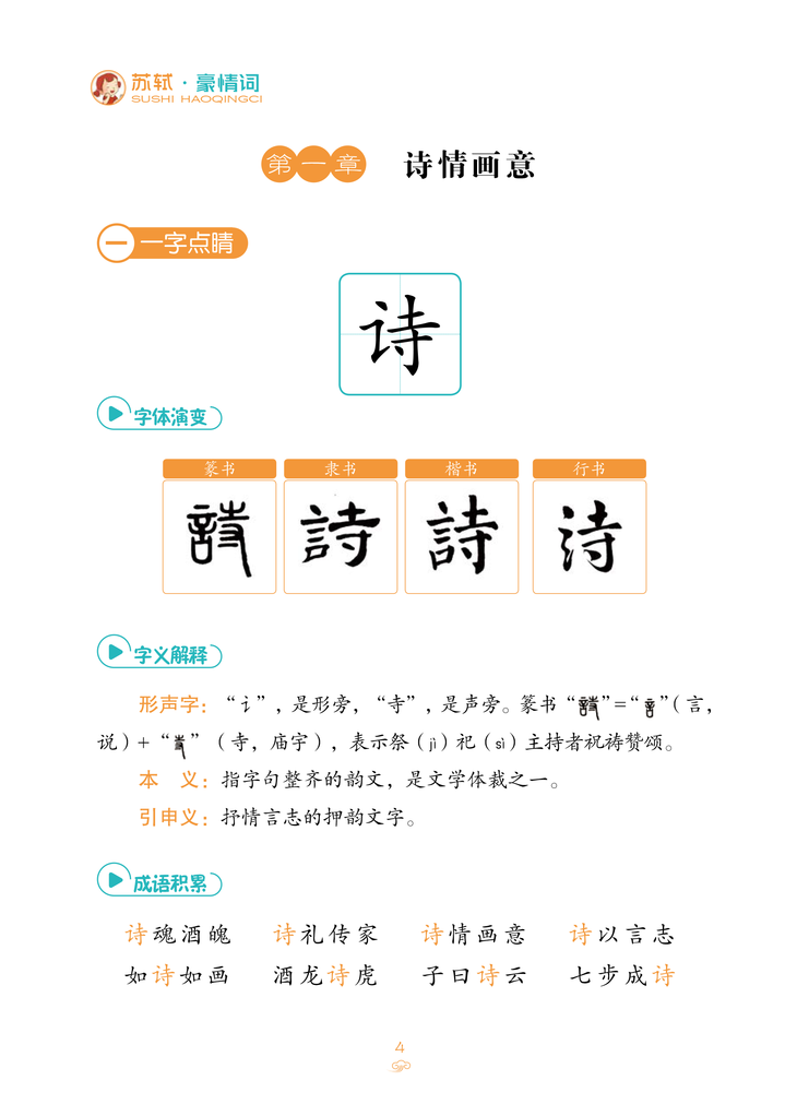 一个汉字,就是一部微型的文化史,仔细阅读“一字点睛”中的字,我们会发现这个单元的“文眼”;仔细观察“字体演变”中的字,我们会了解中国汉字的演变过程。