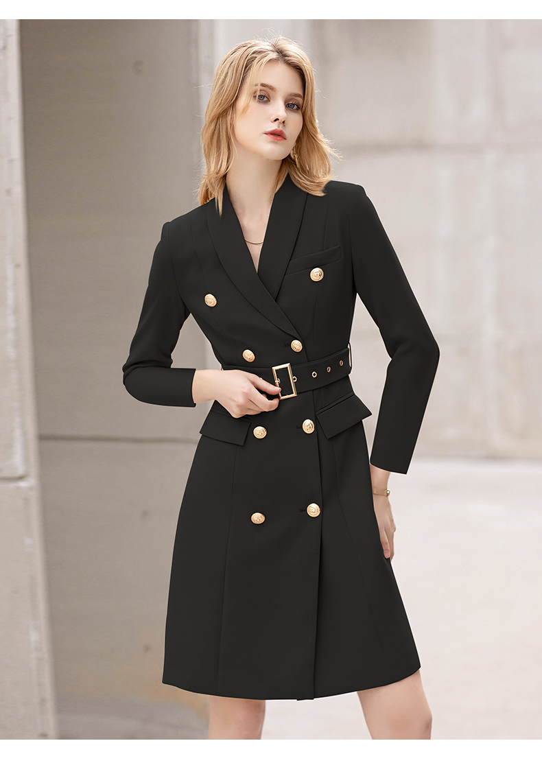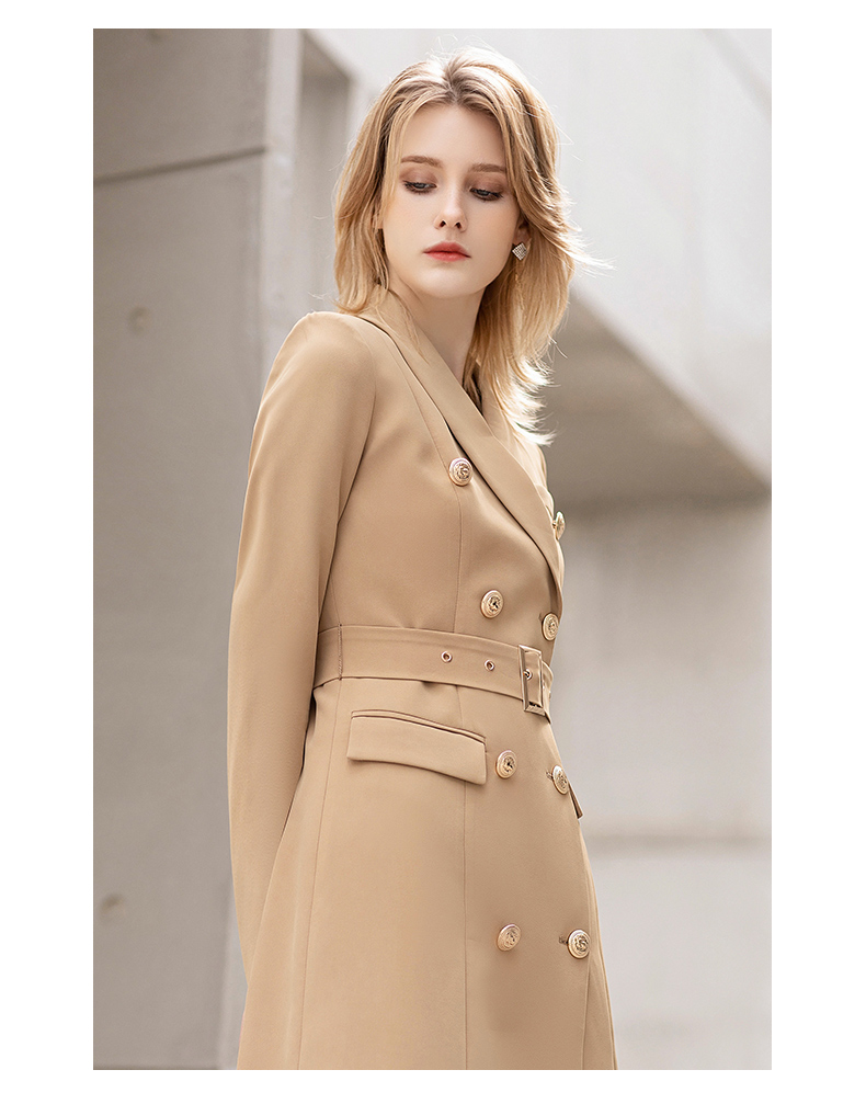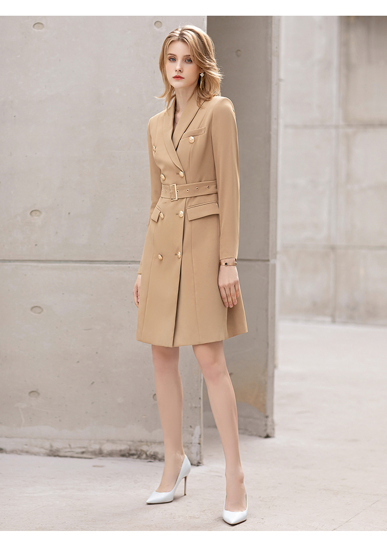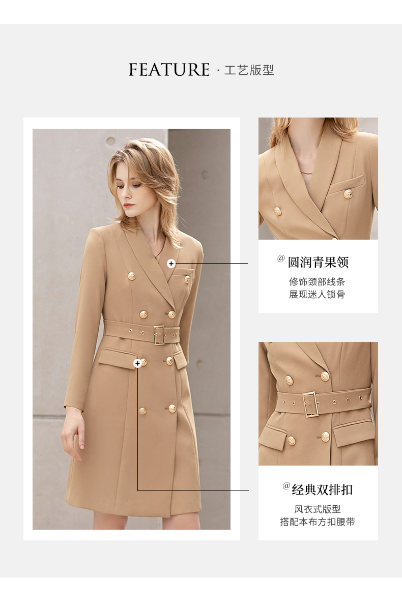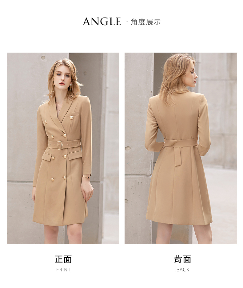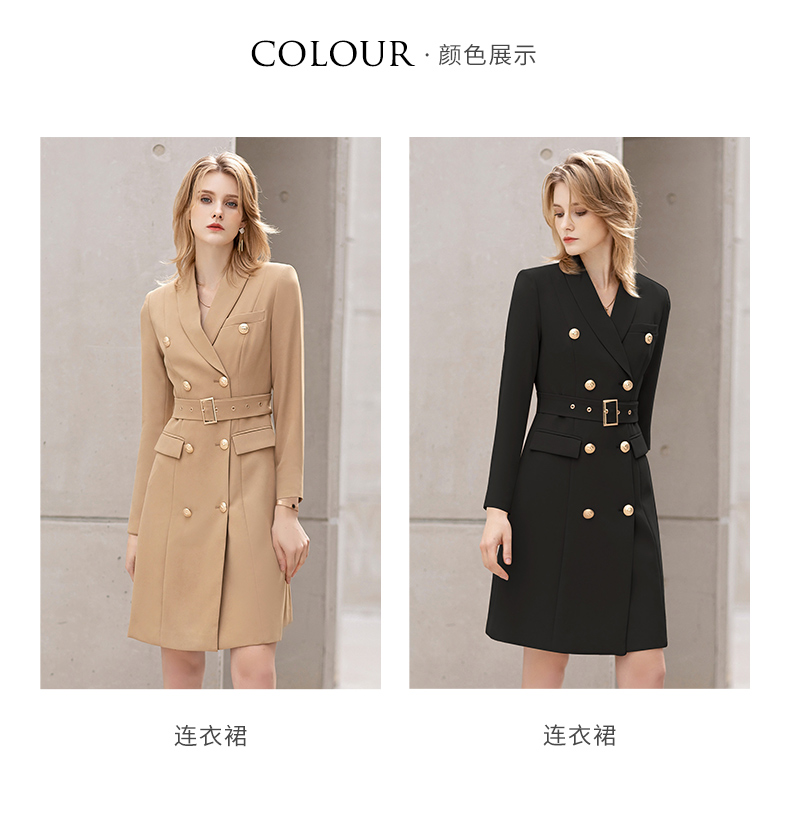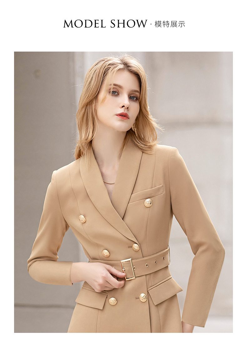 IWY/卡其色长袖职业套装西装连衣裙设计感主持正装气质商务职业装套裙