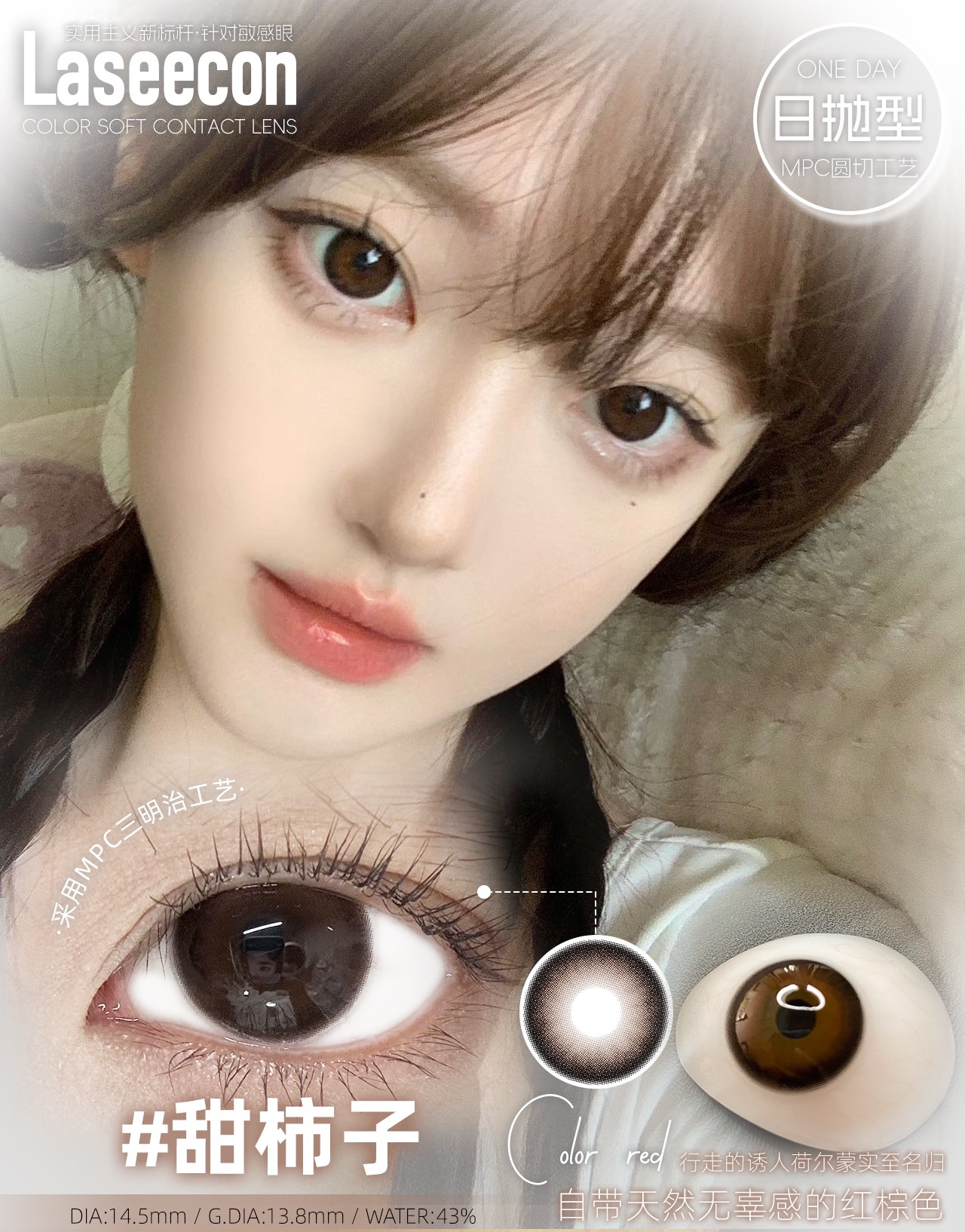laseecon日抛 甜柿子 14.5mm 一盒10片 日抛无售后!!!红棕色