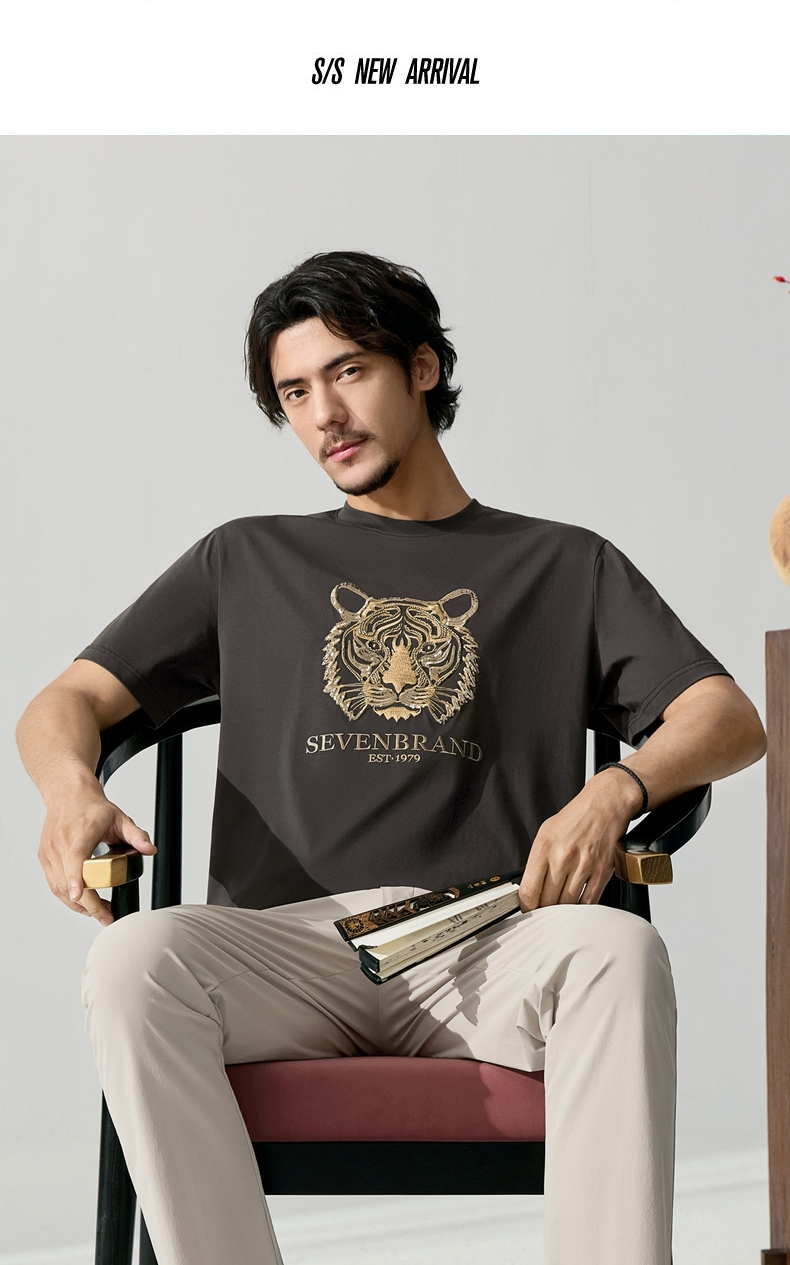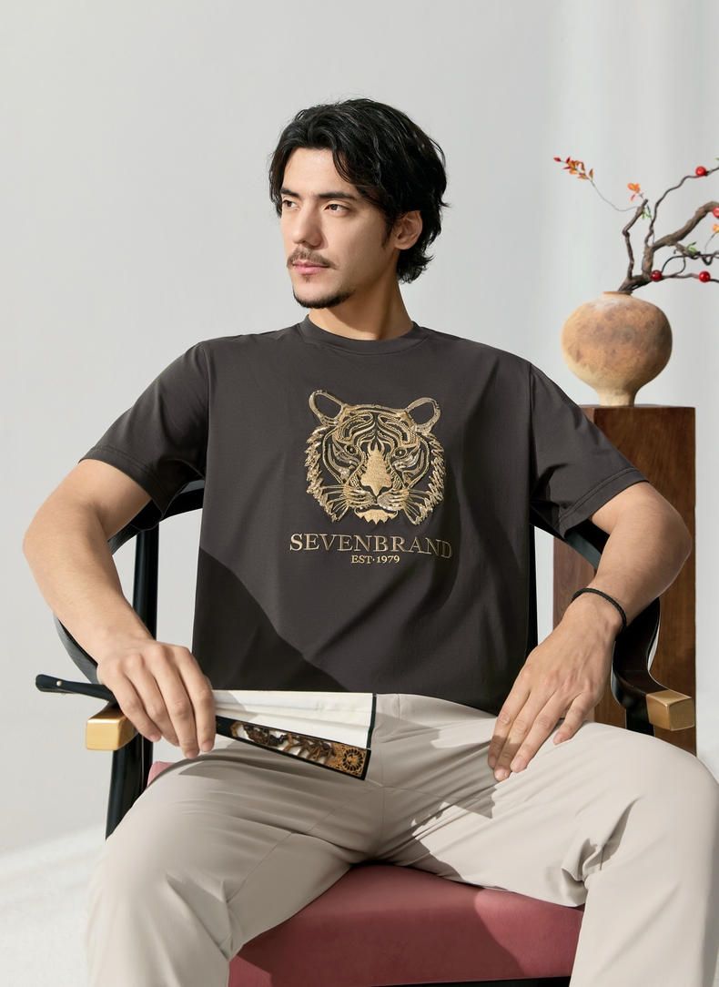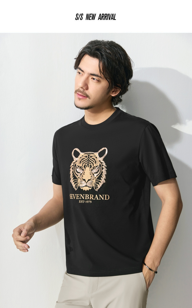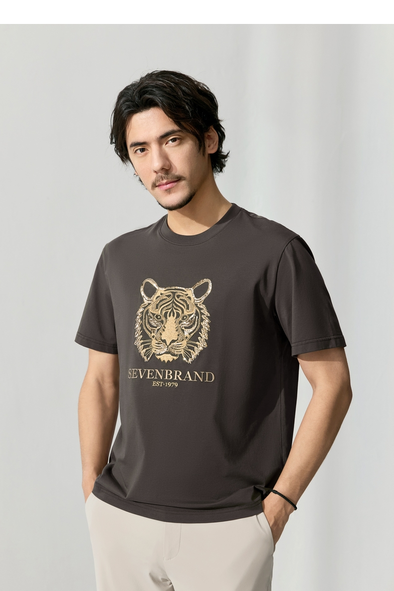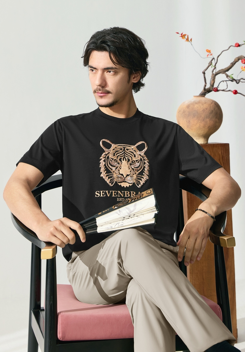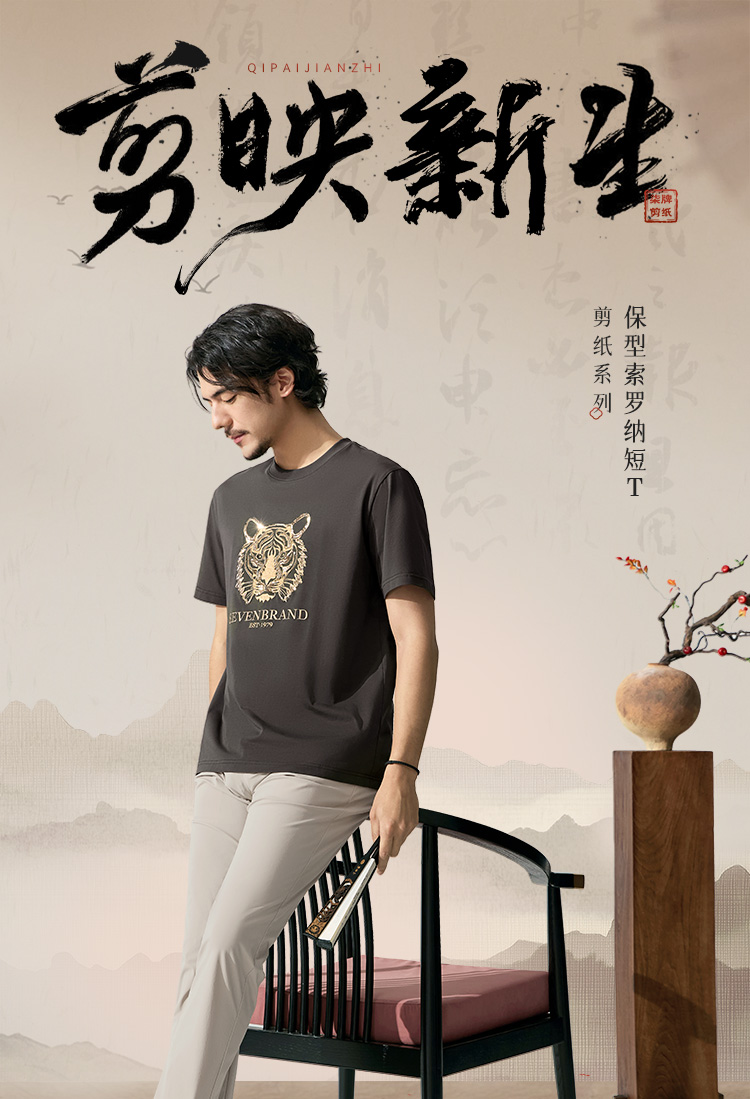 【十二生肖剪纸虎】柒牌短袖T恤男夏季新款时尚休闲老虎圆领体恤128T72060