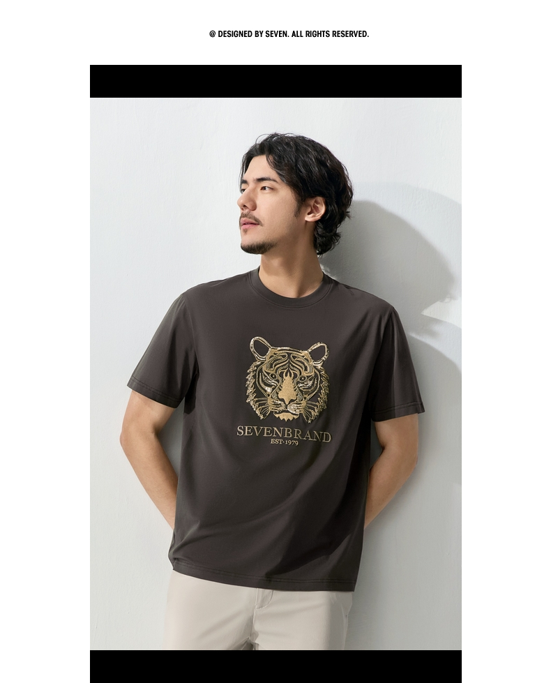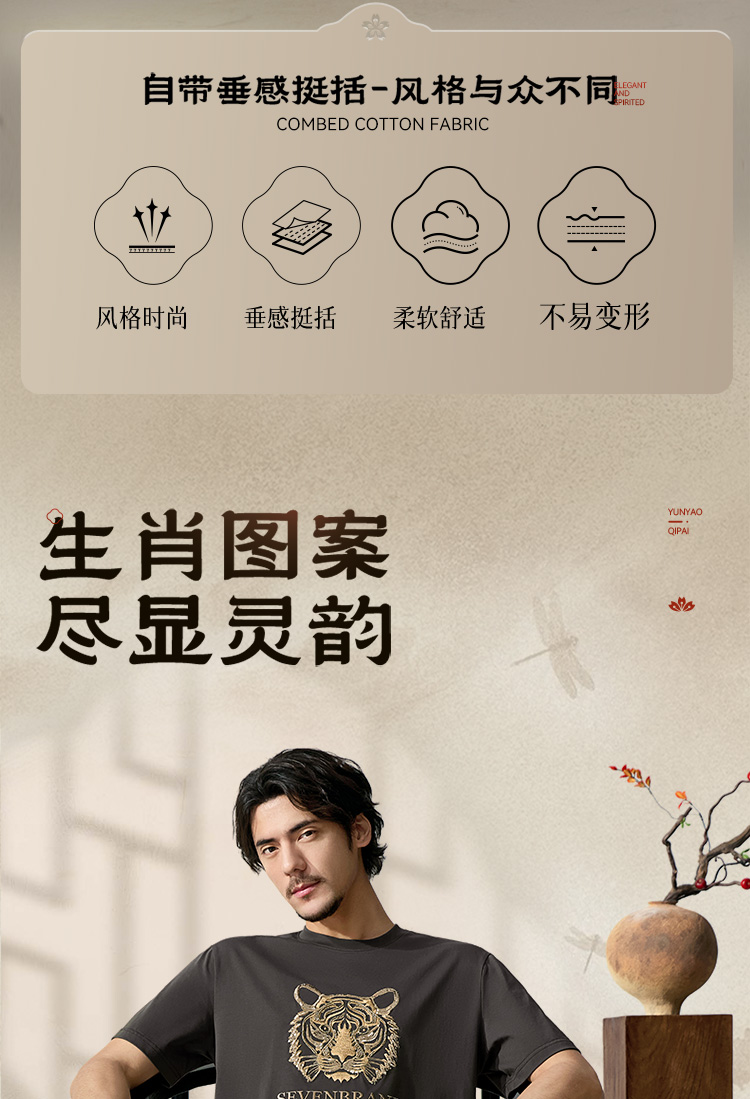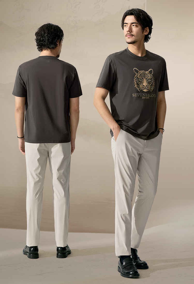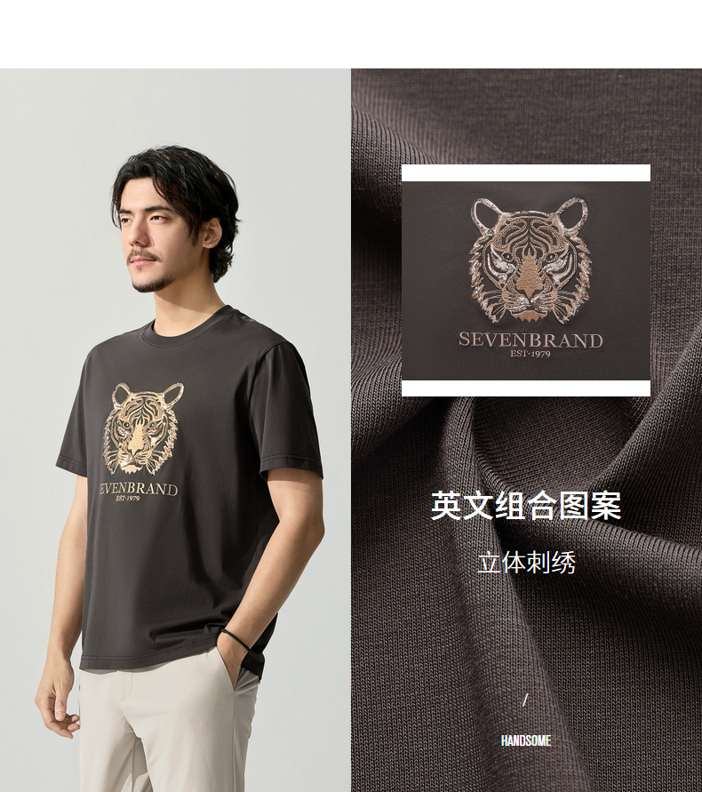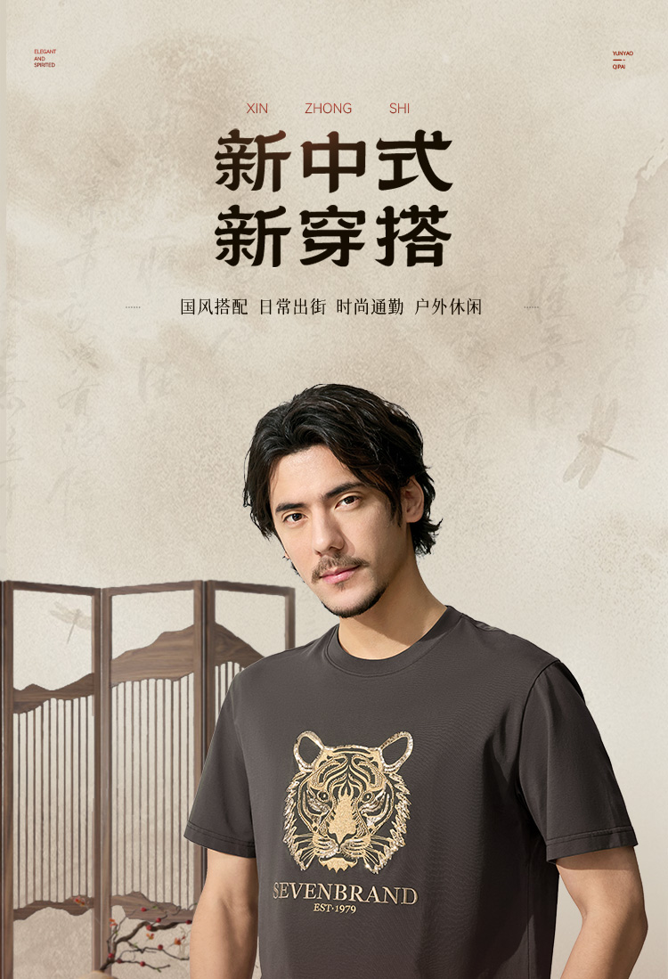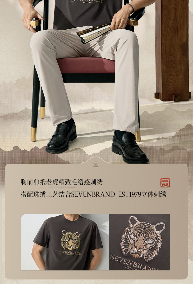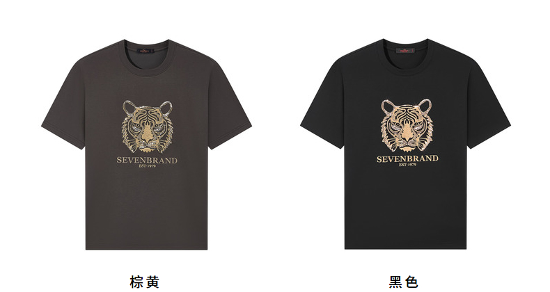 【十二生肖剪纸虎】柒牌短袖T恤男夏季新款时尚休闲老虎圆领体恤128T72060