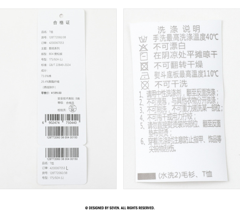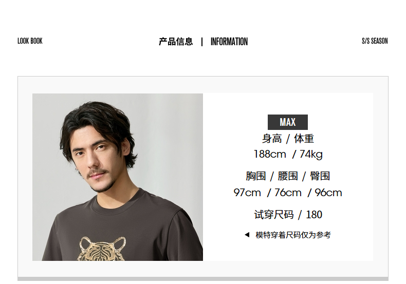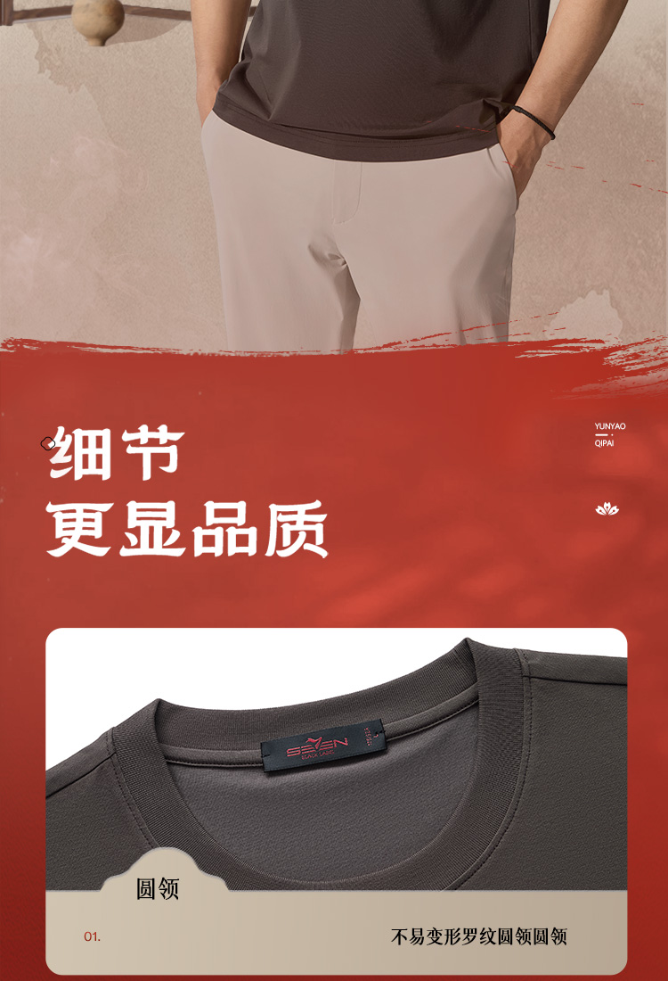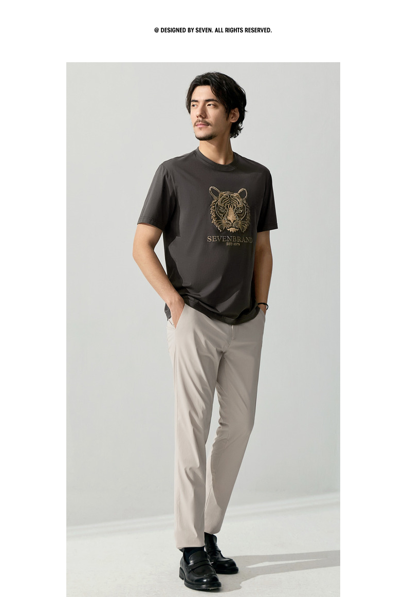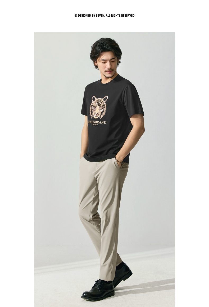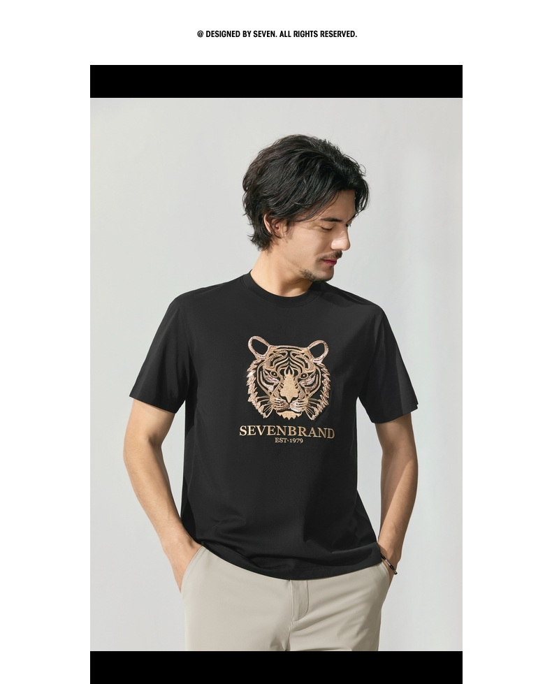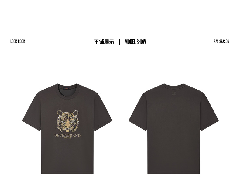 【十二生肖剪纸虎】柒牌短袖T恤男夏季新款时尚休闲老虎圆领体恤128T72060
