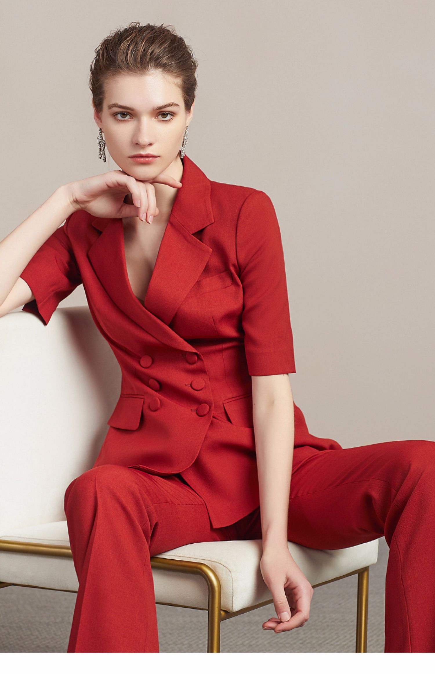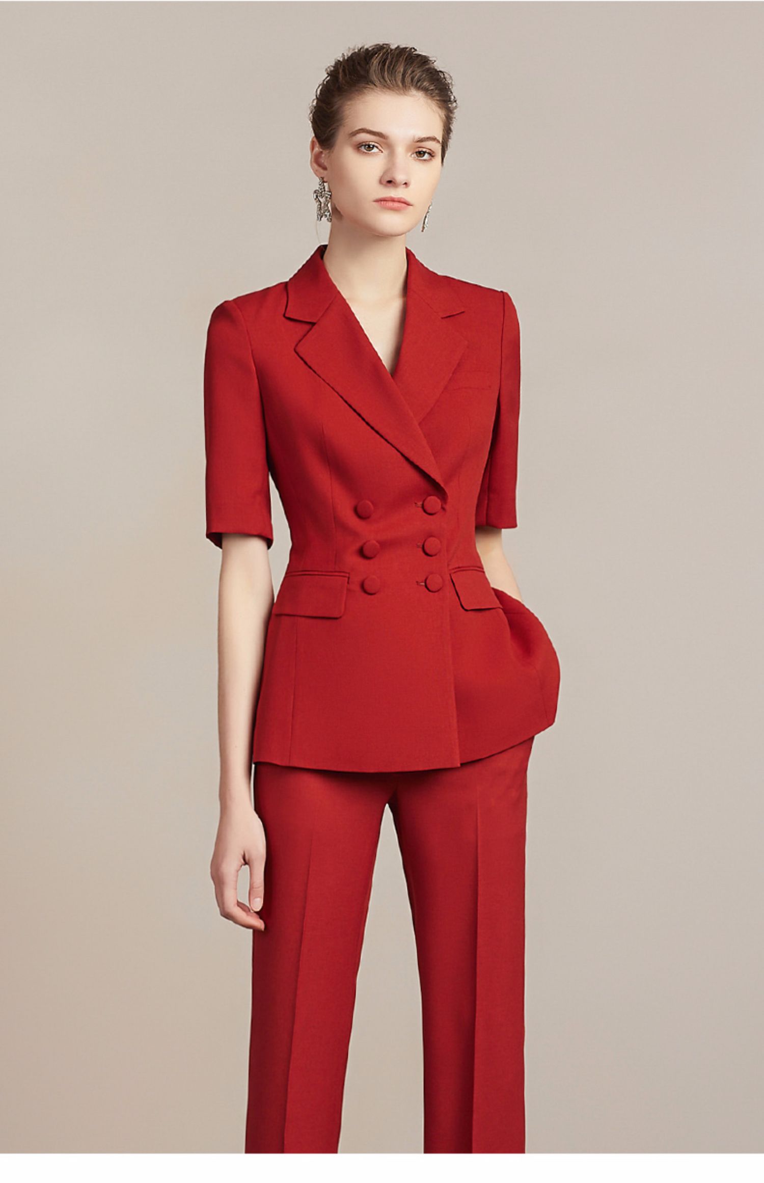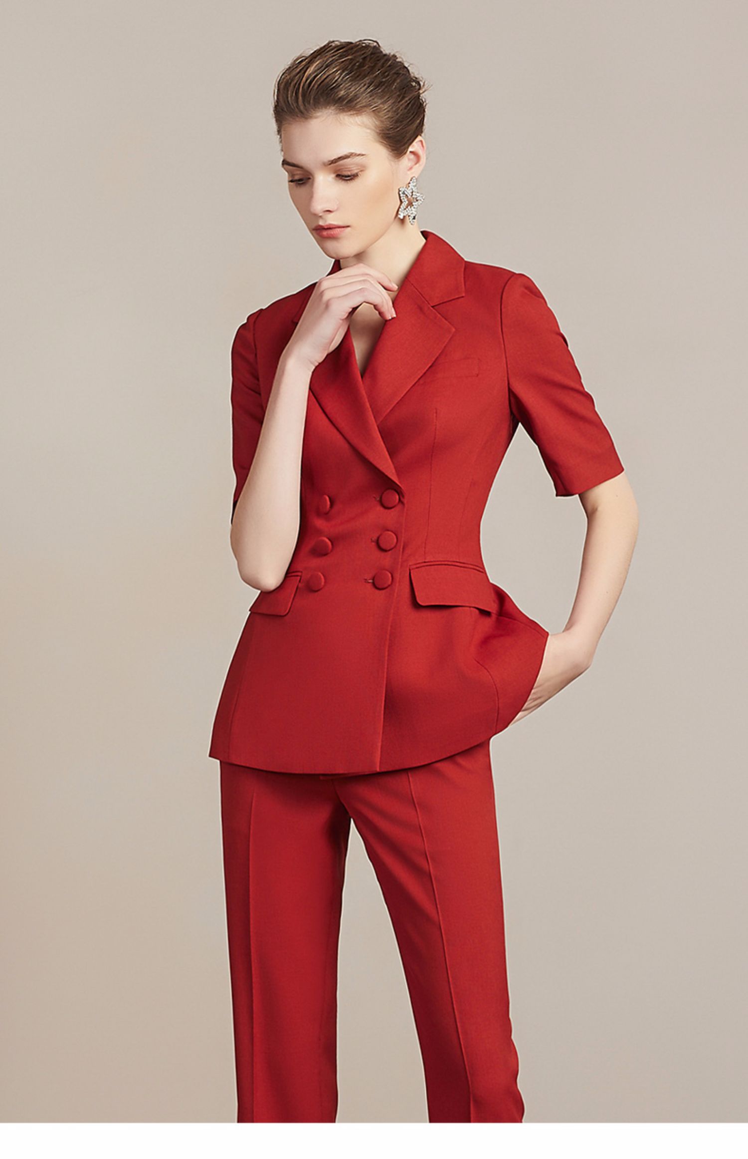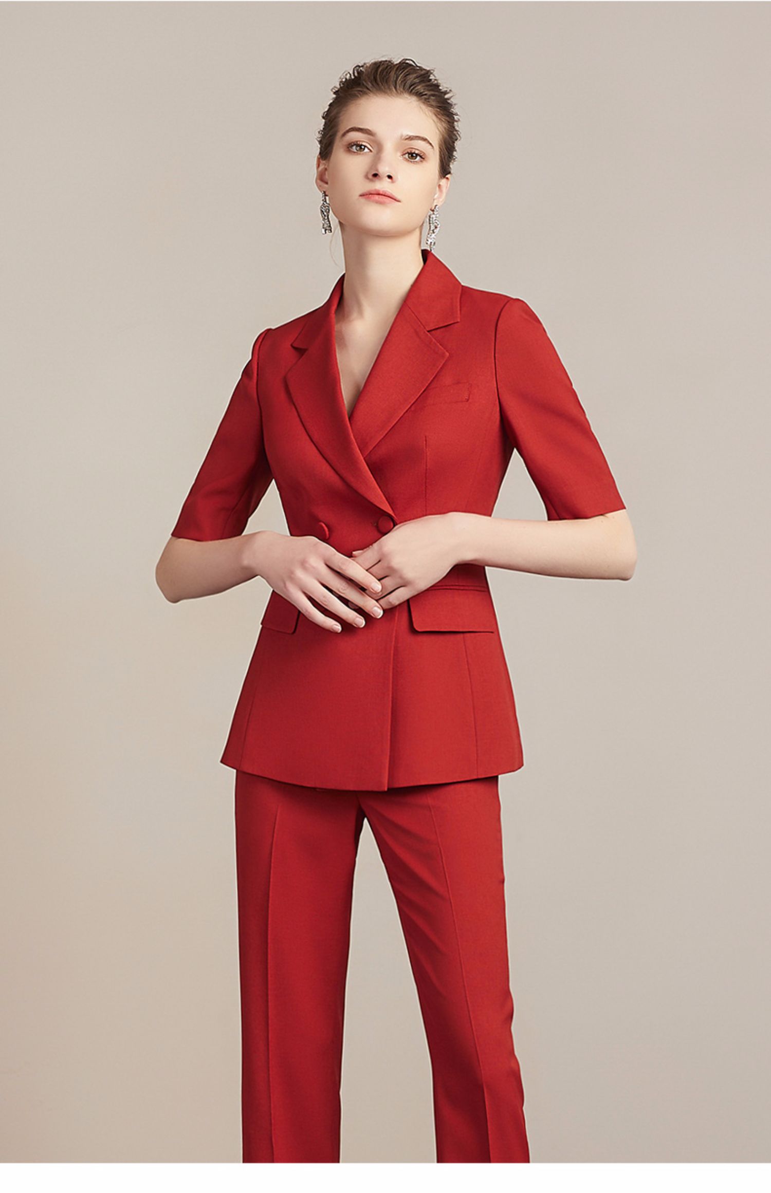 IWY/新品红色短袖西装裤子套装212099C1+P6