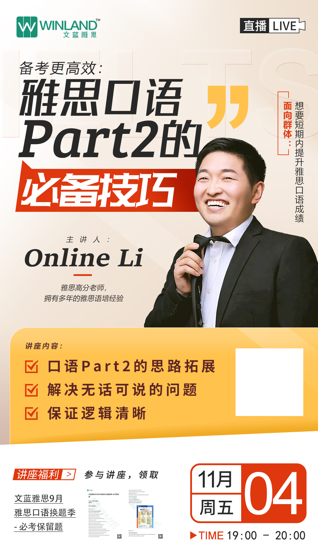 请预留正确联系方式和信息,老师会根据预留的信息24小时内联系您确认报名,发送直播链接~