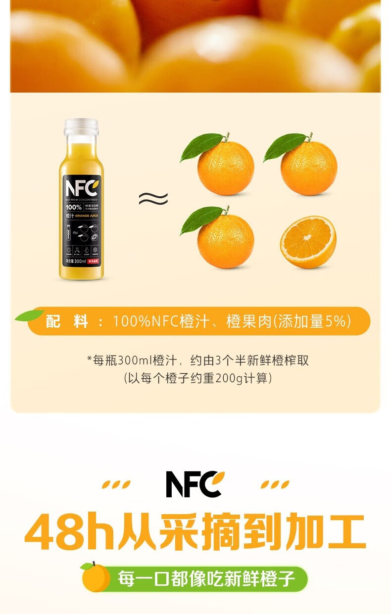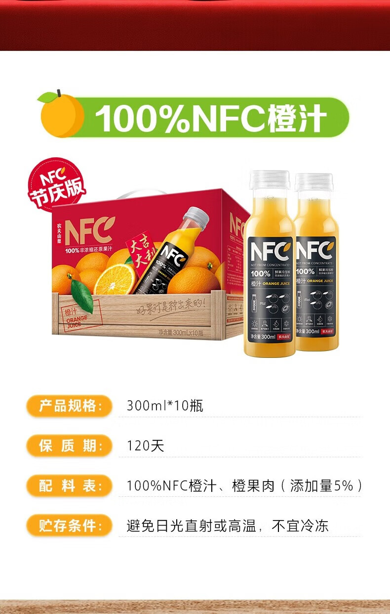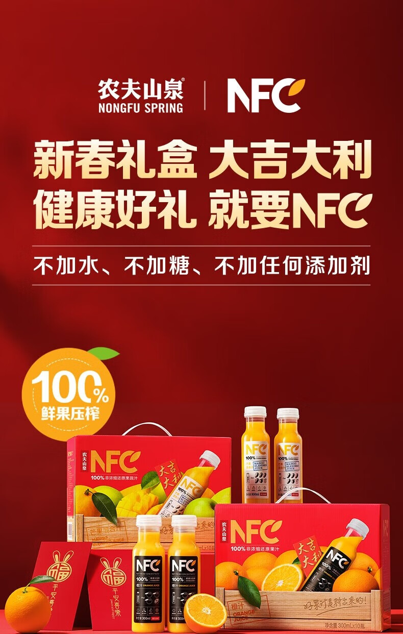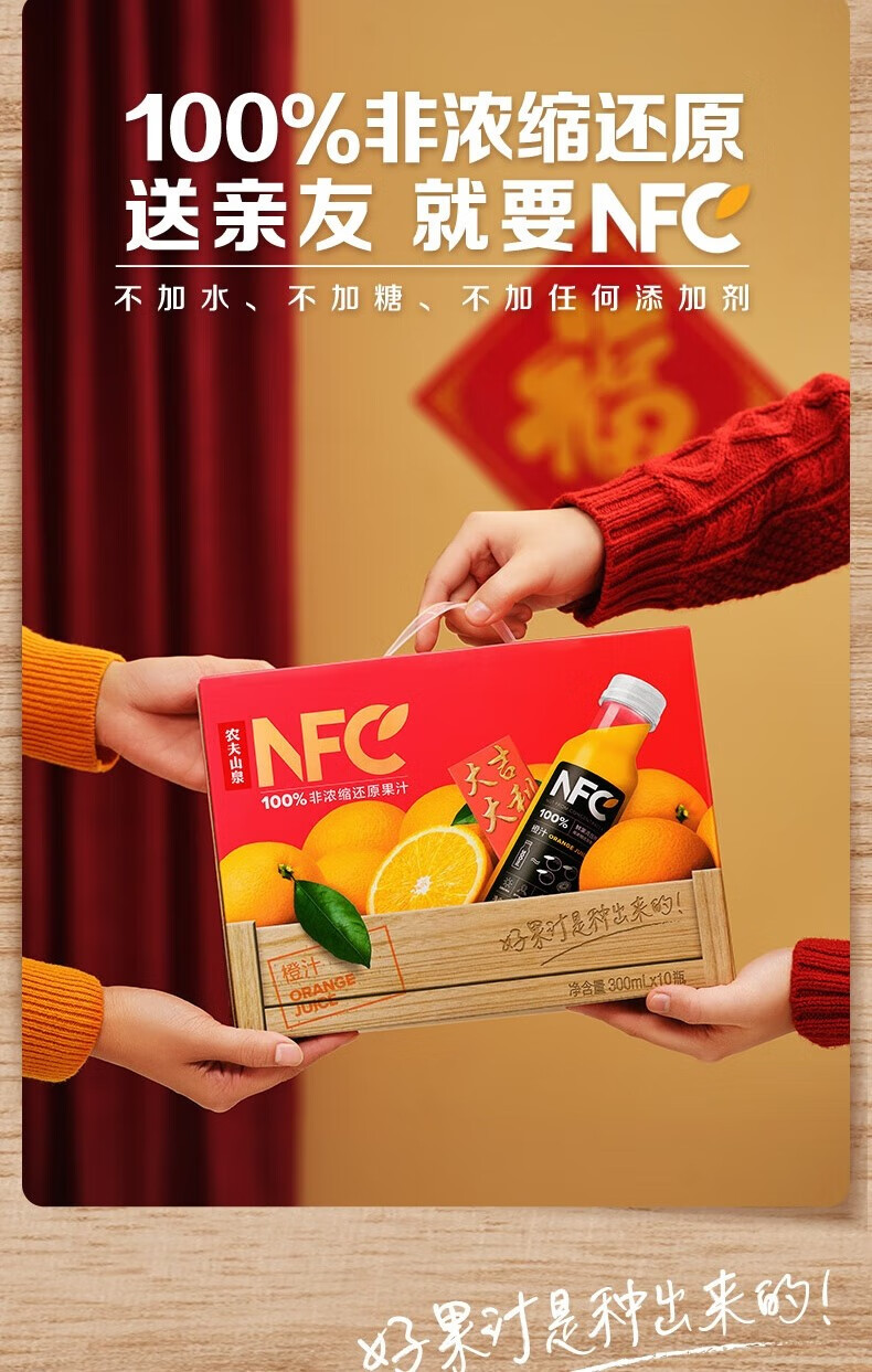 【热销爆款】农夫山泉100%NFC果汁礼盒装汁300ml*10瓶橙汁芒果汁番石榴汁不添加