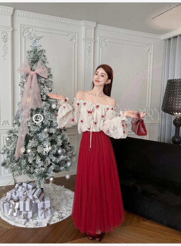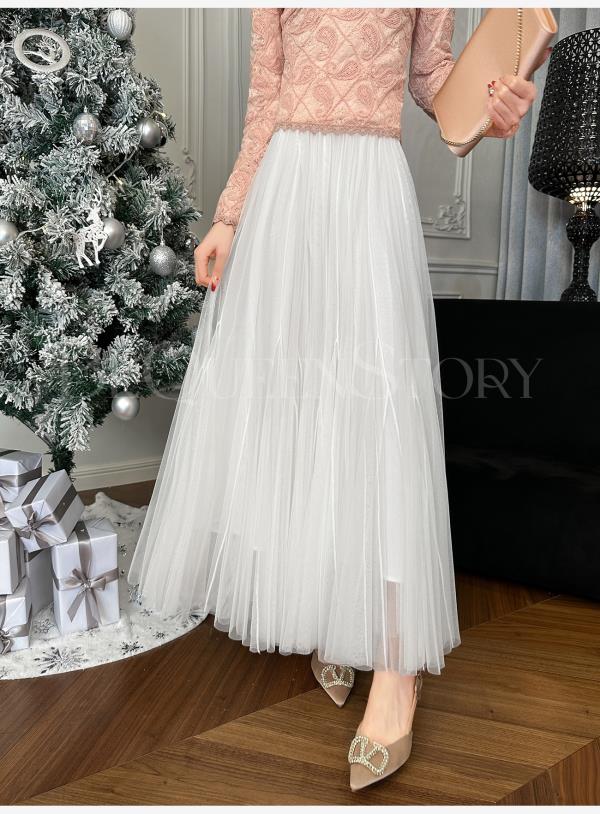 【孤品样衣,不退不换】【红毯玫瑰】重工松弛慵懒仙女网纱A字大用量松紧腰千片半裙