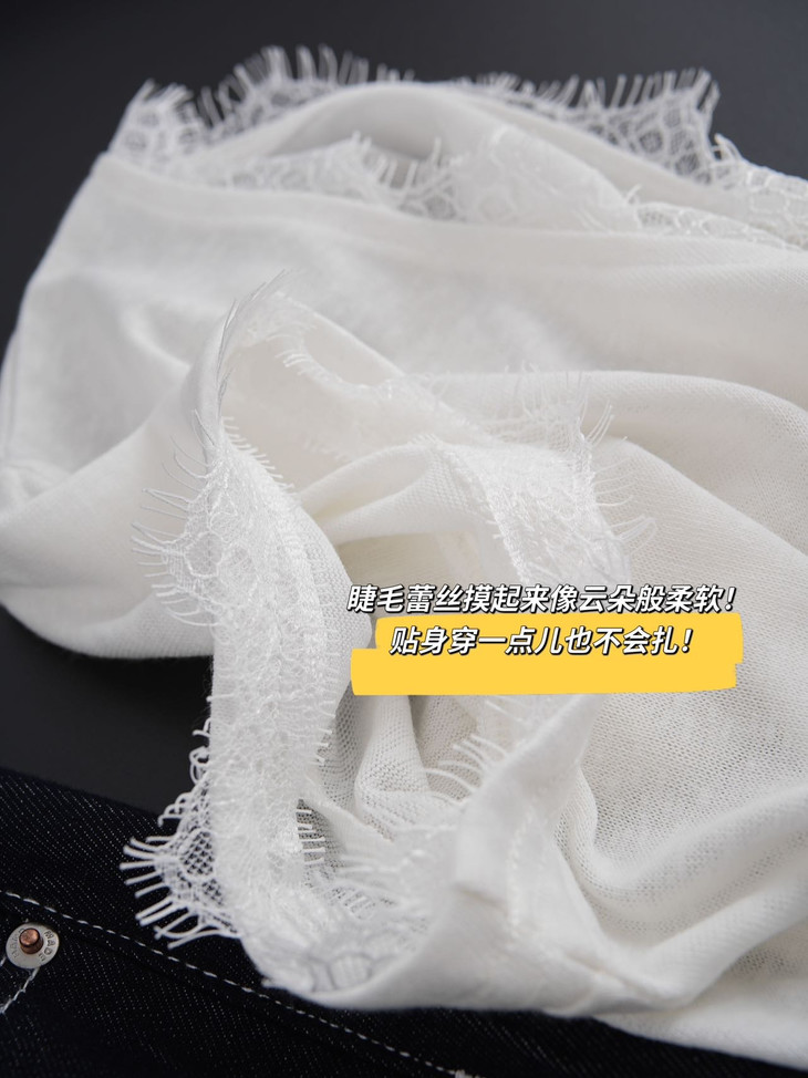 优质睫毛蕾丝摸起来像云朵般柔软! 基底网眼采用高支数纱线,贴身穿完全不会有刺痒感! 「睫毛」部分经过特殊软化处理,垂坠感十足却不僵硬! 抬手弯腰时会温柔贴合身体曲线,连敏感肌都能放心穿。 穿在身上时,那些灵动的睫毛须边会随动作轻轻晃动,像蝴蝶停在肌肤上振翅~🦋 比普通蕾丝多了层「动态美感」 不经意就能把性感值拉到满分💯 大美女江疏影同款⤵️⤵️⤵️
