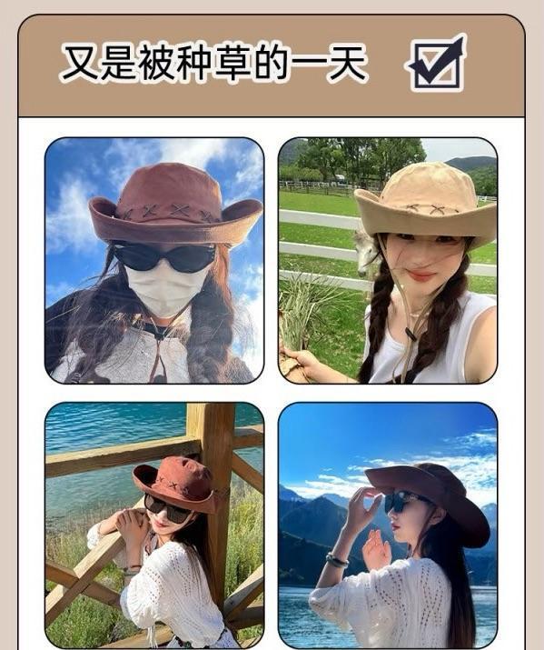 ☀️☀️☀️户外穿搭小心机!登山帽安排上! 🎸最近入手了这款大檐登山帽,真的太适合夏天出门啦! 🎺设计很百搭,不管是穿T恤还是连衣裙都超有感觉。帽檐宽宽的,遮阳效果也很不错,户外活动戴着特别安心。🤎 💖交叉款的设计很特别,戴上瞬间气质up!不管是去旅游还是日常出街,都能轻松驾驭,真的可以闭眼入。