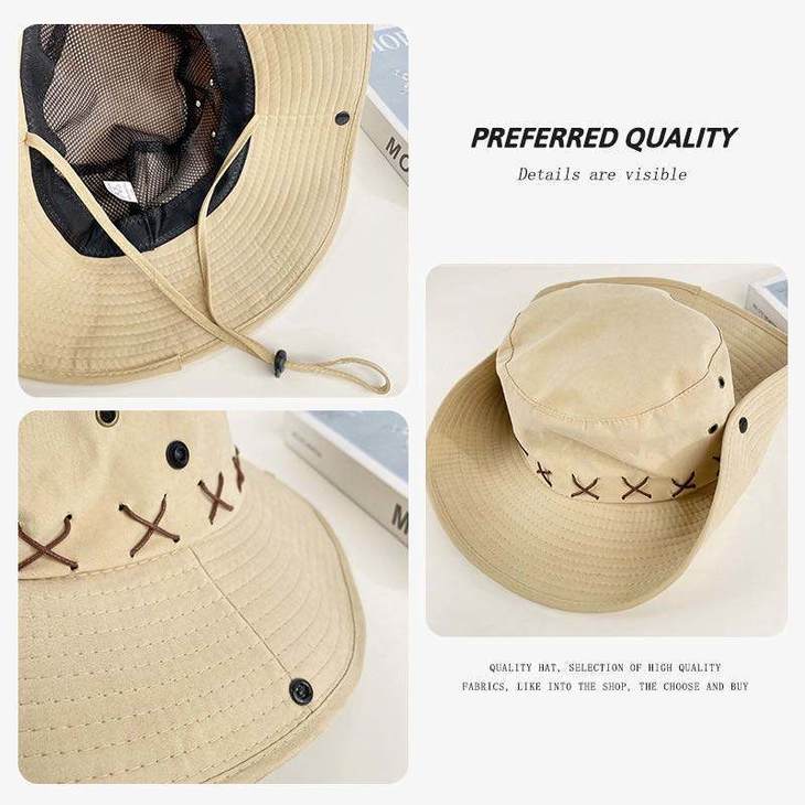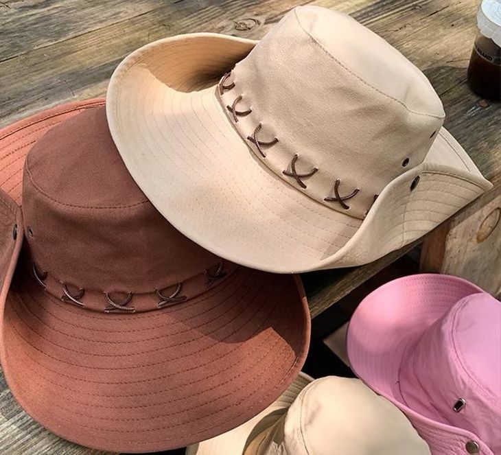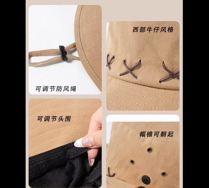 谁懂啊!这顶帽子真的把实用性和氛围感焊死了🤠 • 日常渔夫帽模式:把帽檐轻轻放下,就是一顶温柔又遮脸的大檐渔夫帽,防晒面积拉满,素颜出门也能一键藏住小情绪,搭配T恤、连衣裙都超韩系~ • 户外牛仔帽模式:掀起两侧帽檐扣上暗扣,秒变酷飒西部牛仔帽!帽型立体不塌,露营、徒步、逛展都能hold住,防风绳一系,大风天也不怕被吹跑🌬️ 内里网眼设计超透气,夏天戴也不闷汗,交叉缝线细节又精致又有复古感,颜值和实用性双在线! 不管是日常通勤还是户外撒野,这一顶就够了💯