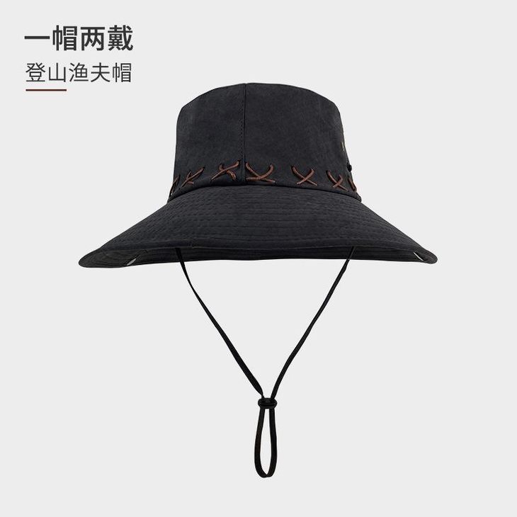 🖤 经典黑 酷妹必入的黑色登山渔夫帽!百搭到封神🖤 交叉X缝线细节拉满,秒变美式复古辣妹 大帽檐遮脸又显脸小,素颜出门也能直接出片📸 一帽两戴的设计,日常/户外切换无压力 透气不闷汗,夏天防晒又耍帅,闭眼冲就对了!