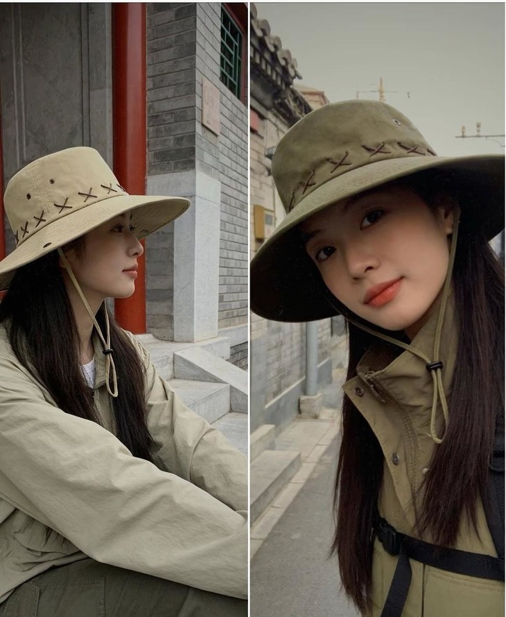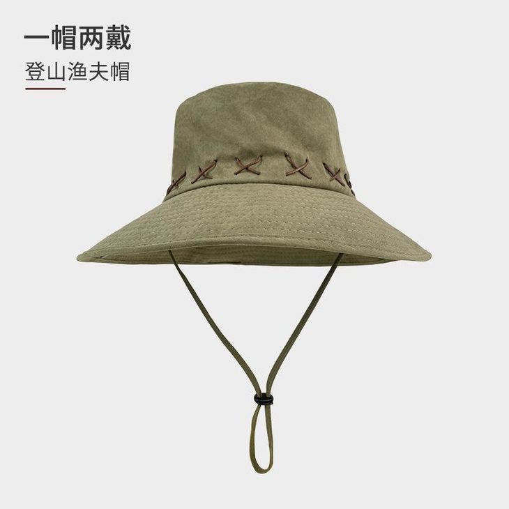 🌿 橄榄绿 一帽两戴的登山渔夫帽!橄榄绿真的太有户外感了🌿 交叉缝线设计自带西部牛仔氛围感,大帽檐遮阳力拉满💯 可翻折帽檐+可调节防风绳,露营/徒步/日常都能hold住 透气面料夏天戴也不闷,搭工装裤、连衣裙都超绝✨