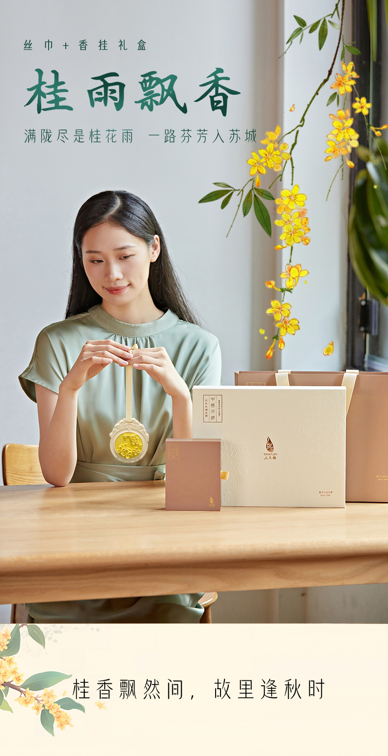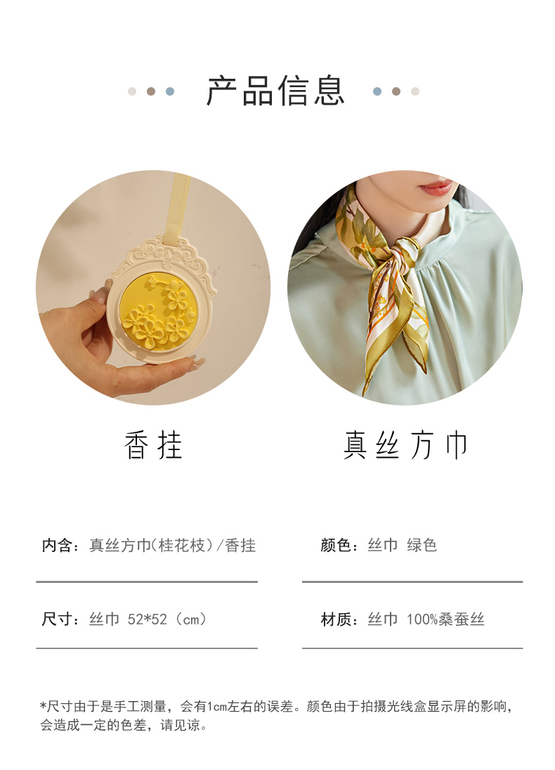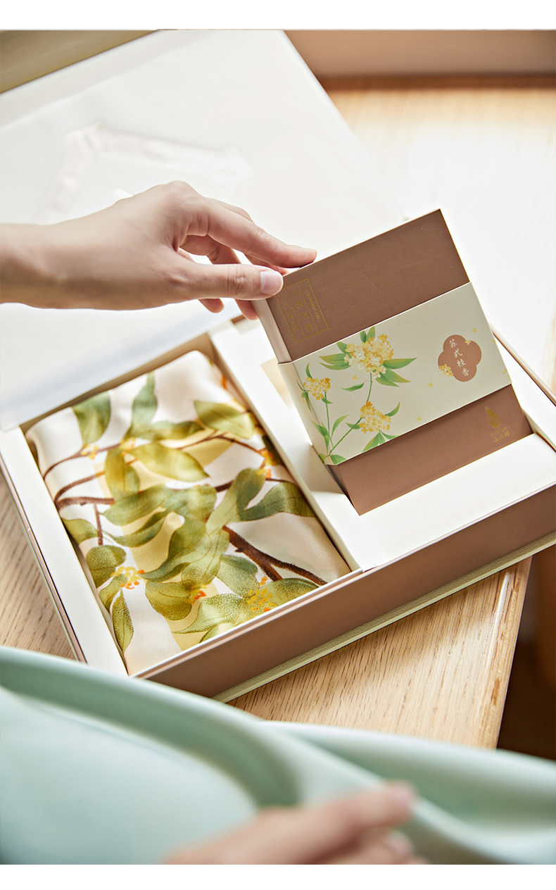 SAINTJOY/上久楷礼盒 桂雨飘香 香挂 真丝方巾桂花枝FJS23039