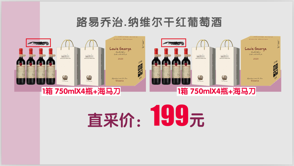 路易乔治干红葡萄酒,750ml/瓶*4、手提袋*2、海马刀*1赠路易乔治干红葡萄酒,750ml/瓶*4、手提袋*2、海马刀*1